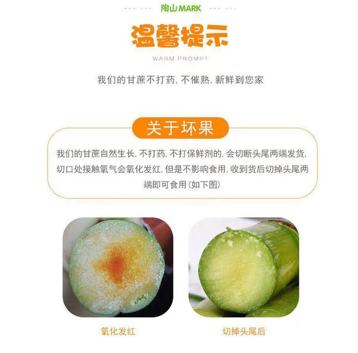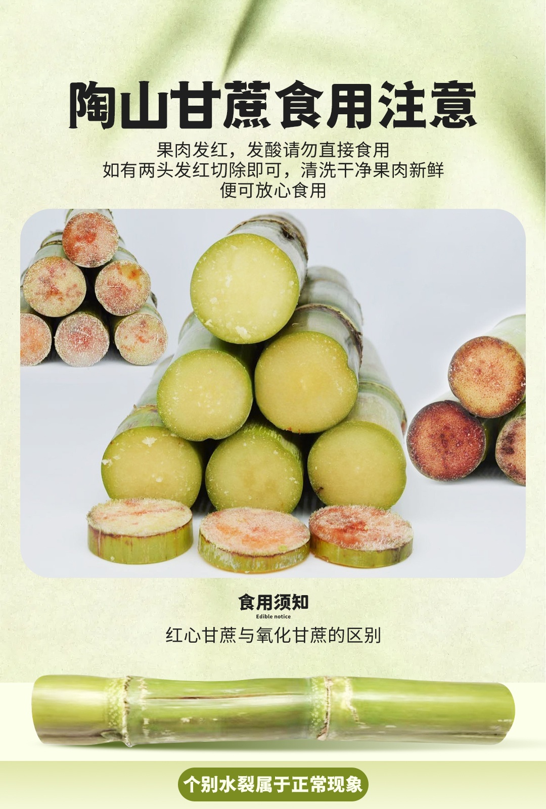 【温馨提示】甘蔗保质期短,及时签收、冷藏保鲜。氧化发红请勿直接食用,切除1-2公分果肉新鲜无异味可放心食用!