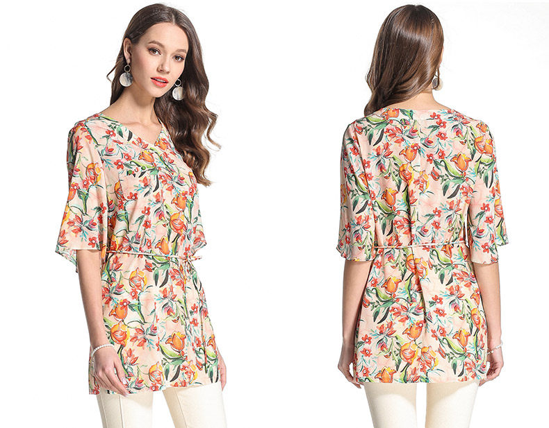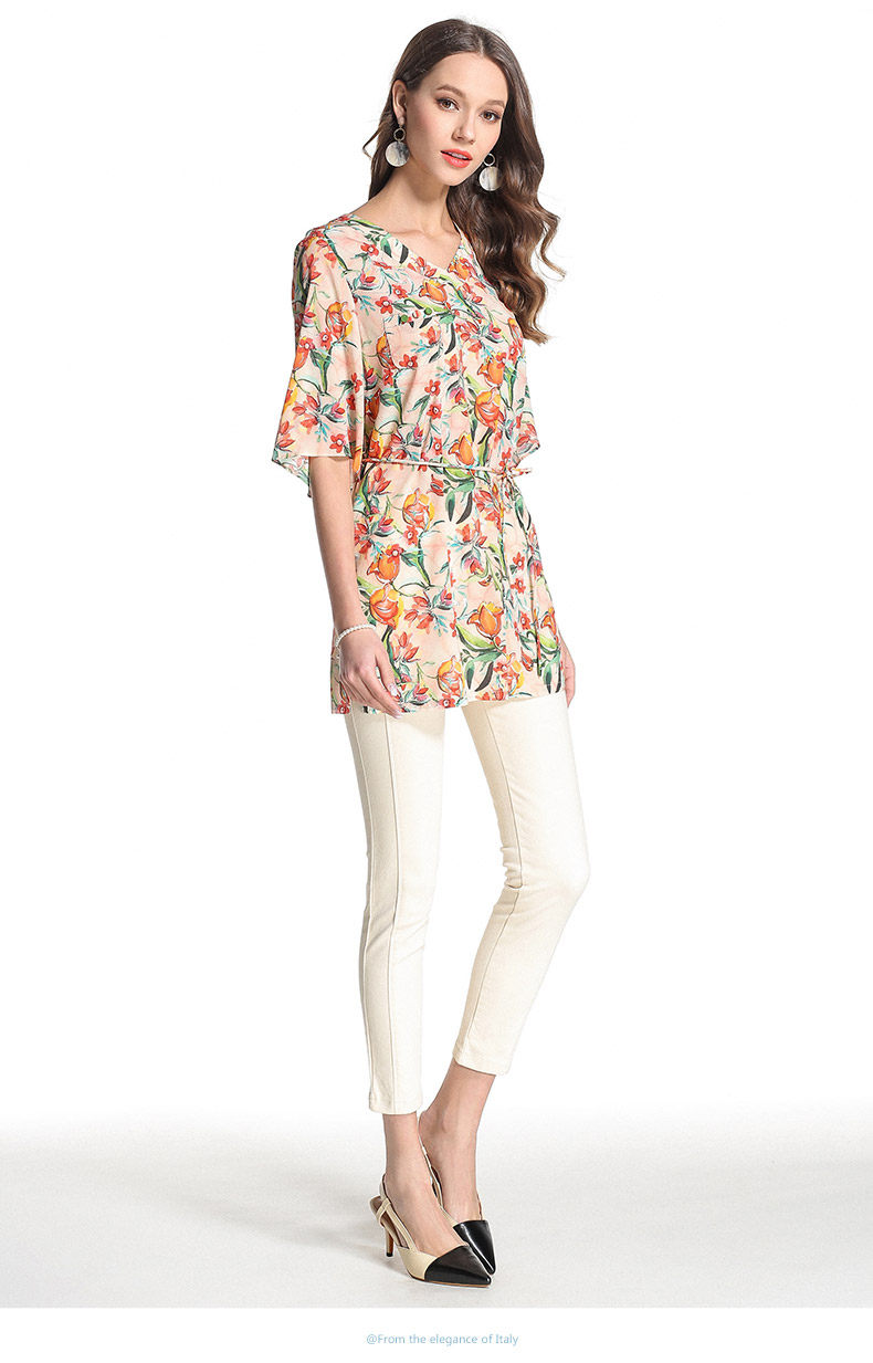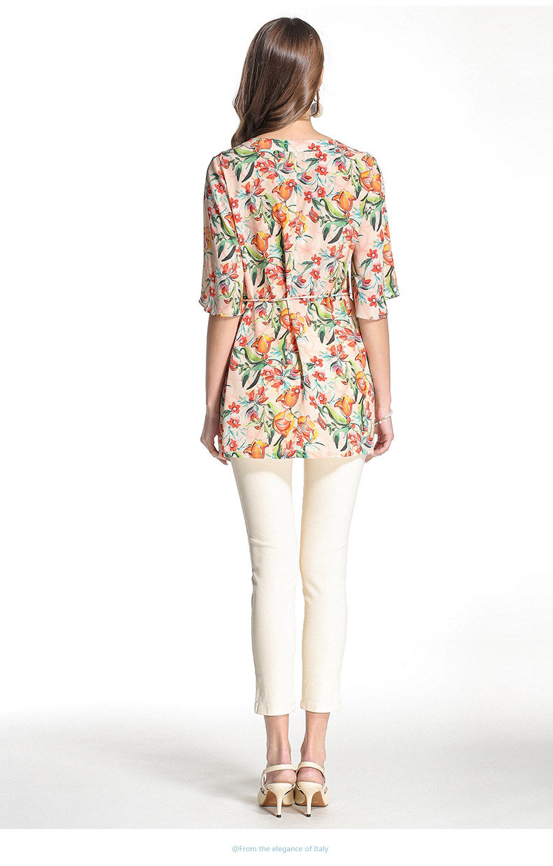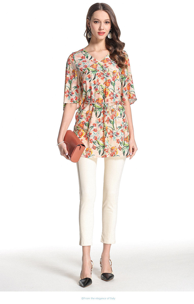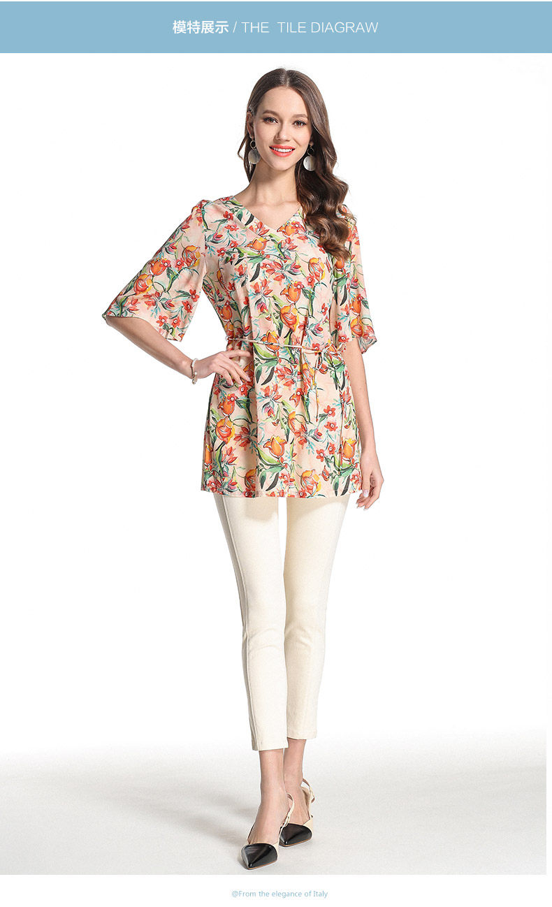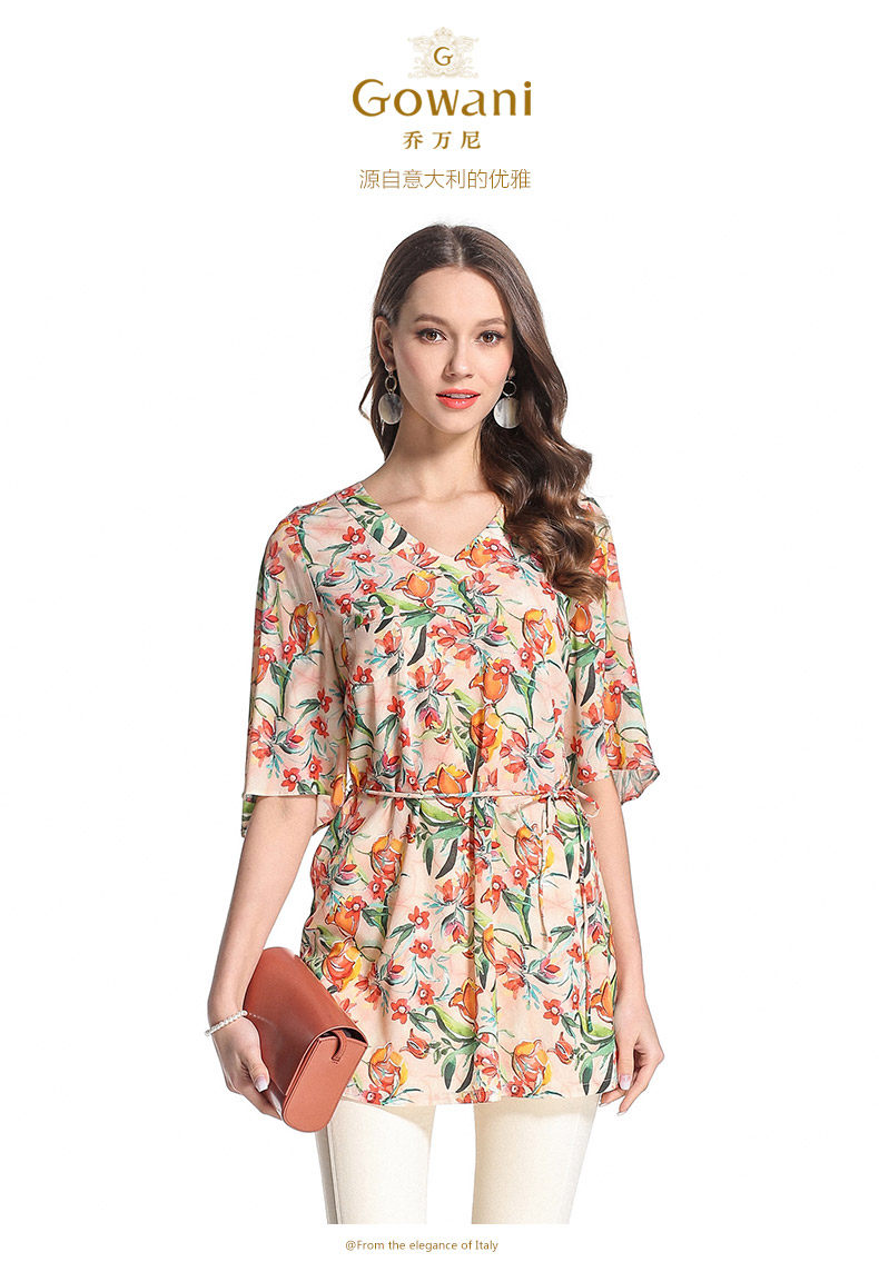 乔万尼夏季衬衣桑蚕丝印花收腰真丝上衣EB2C807
