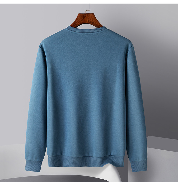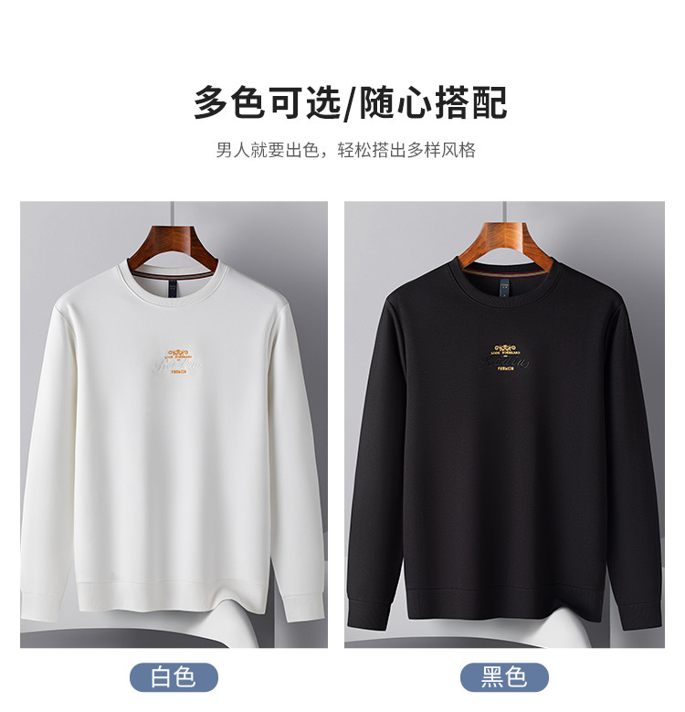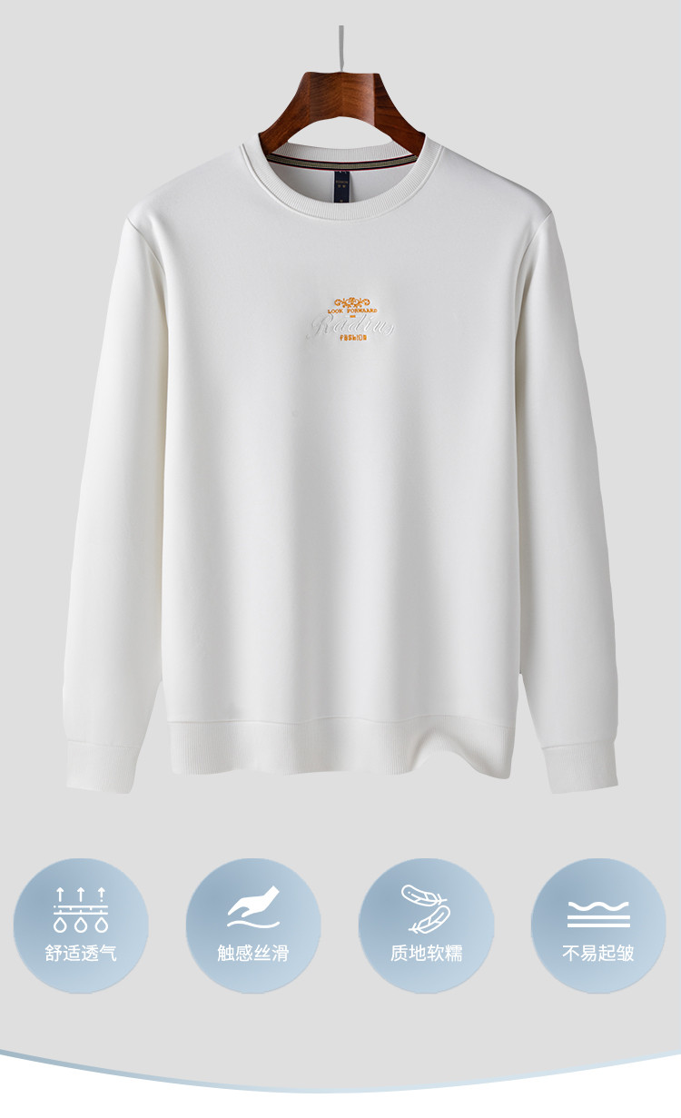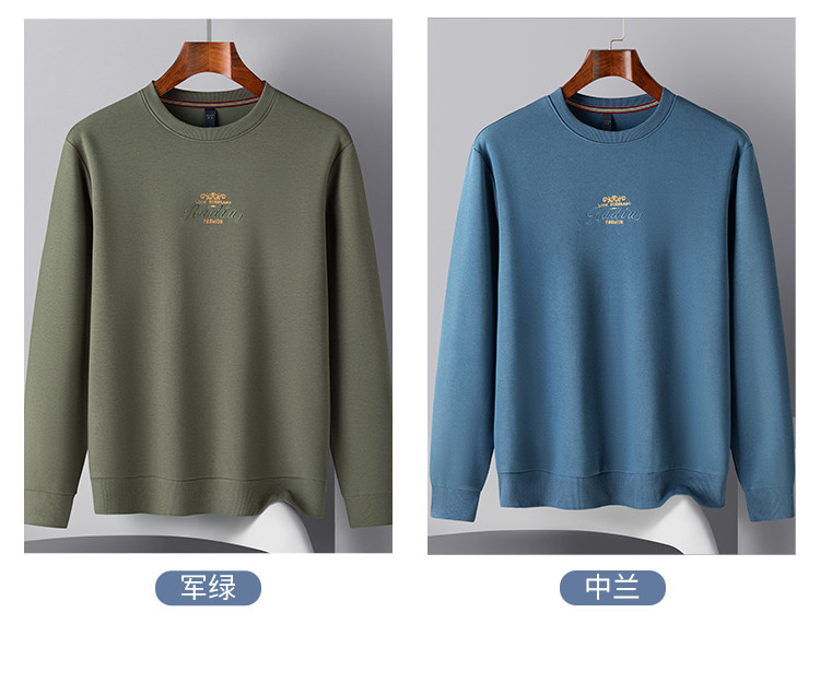 14LP37270【桑蚕丝混纺】罗蒙春秋胸花绣花卫衣男士舒适休闲百搭卫衣男圆领长袖T恤上衣男