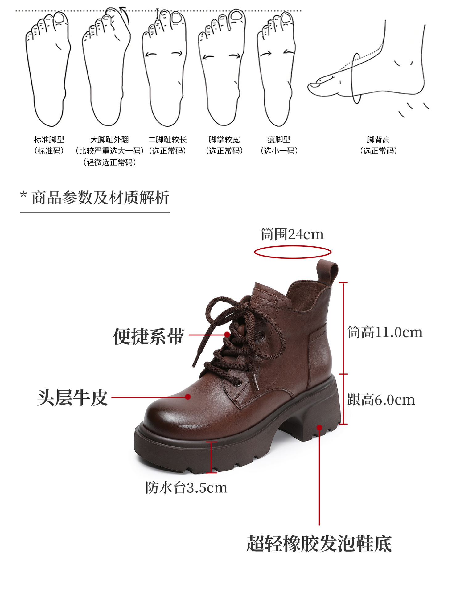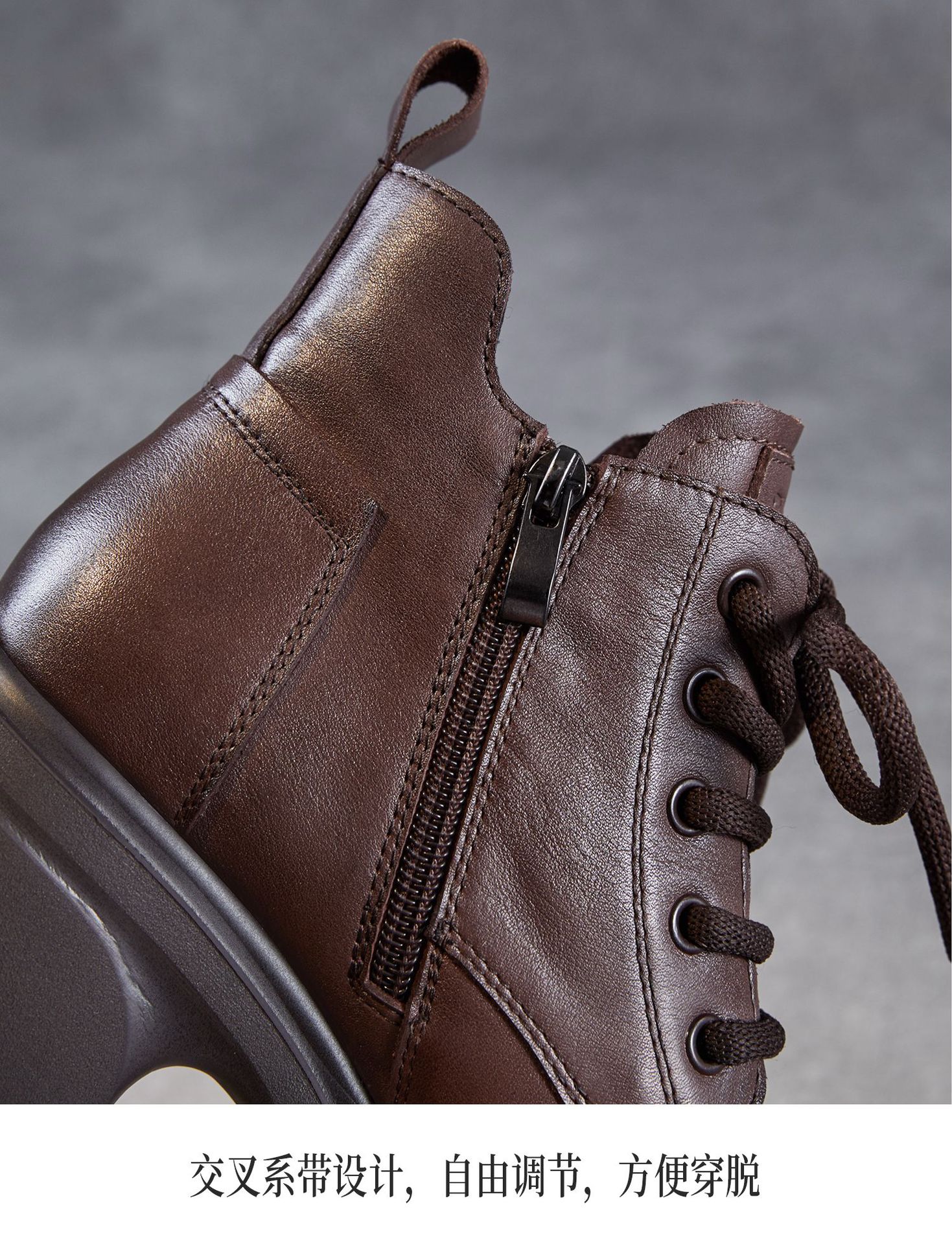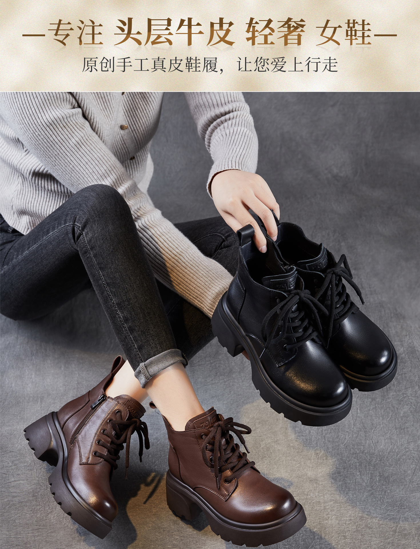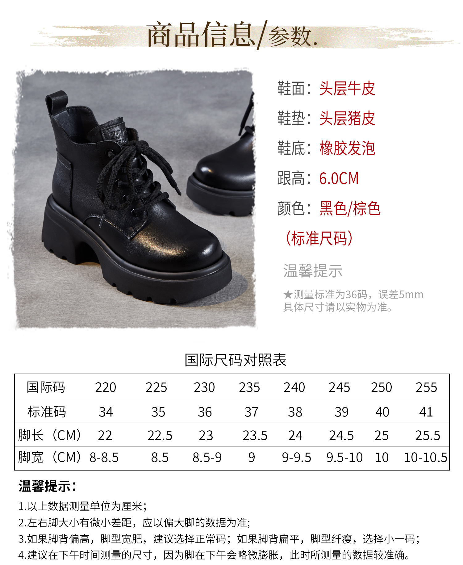 真皮厚底马丁靴,英伦风系带短靴加绒秋冬小个子女靴 ZM258711