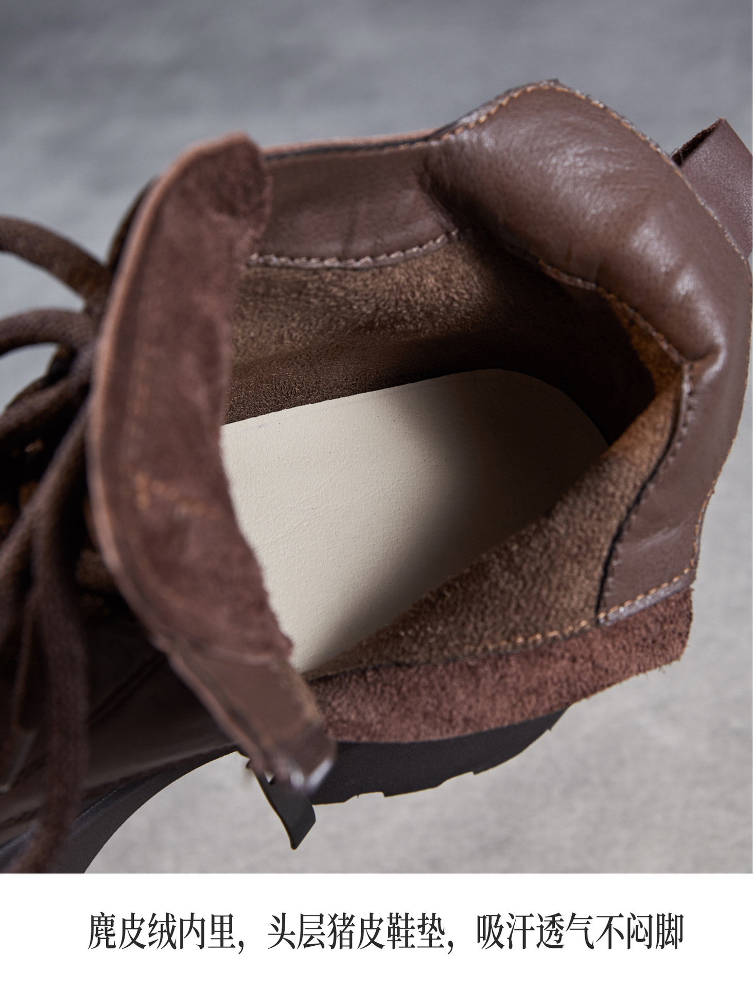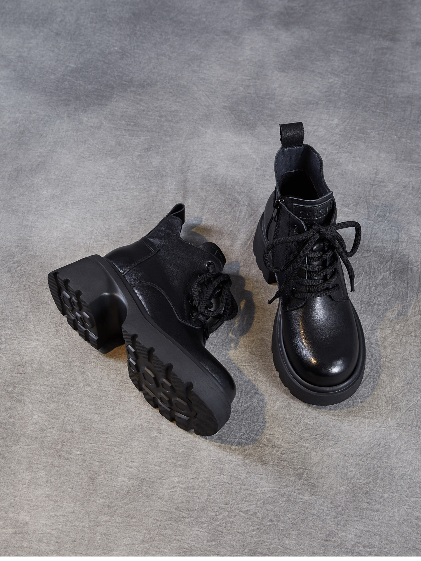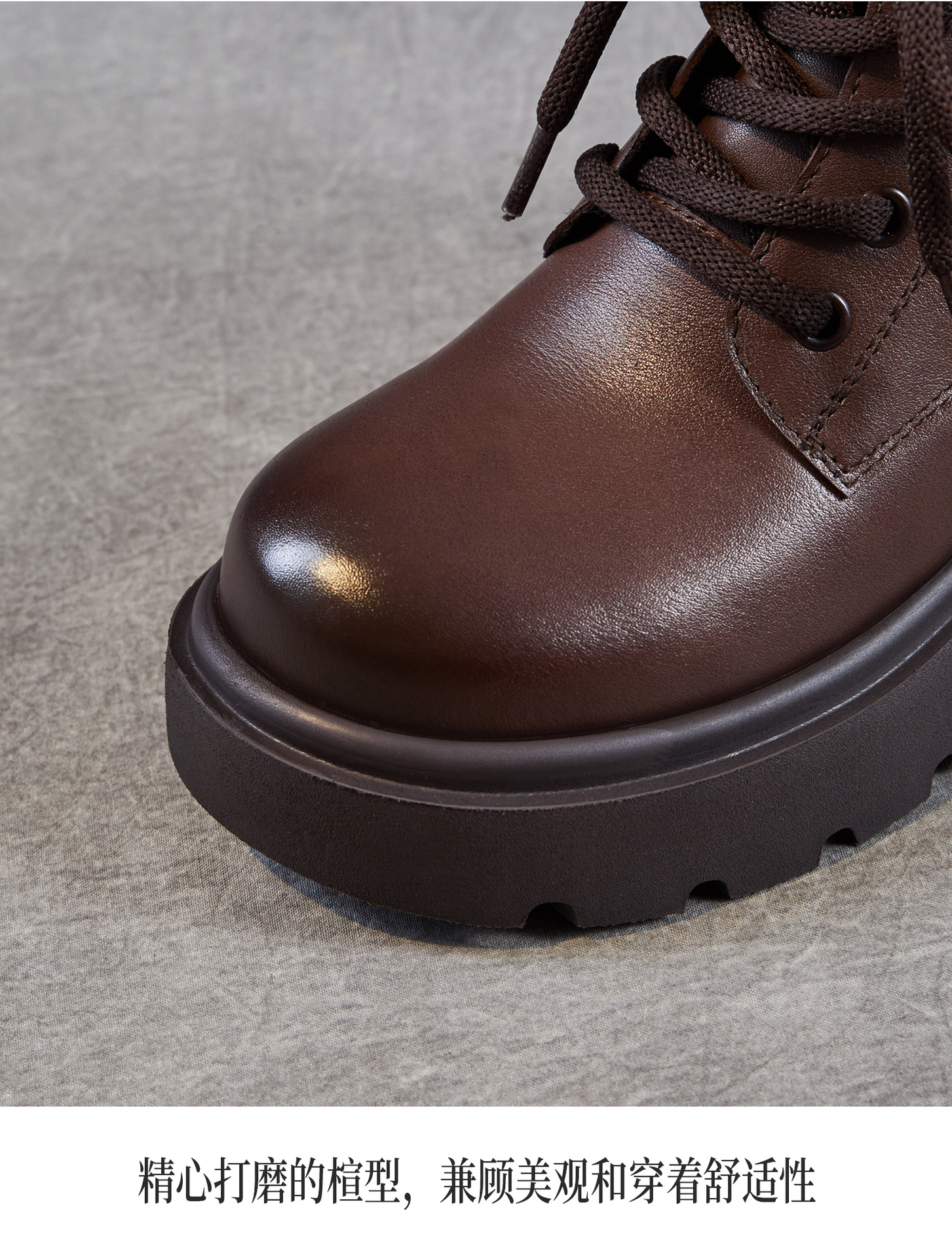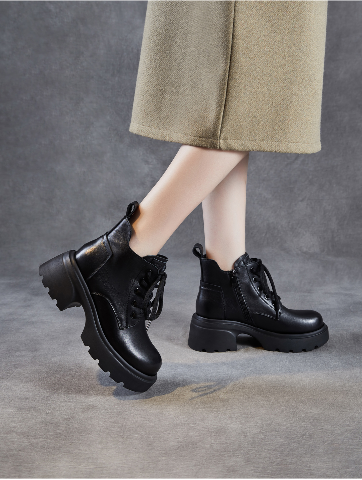 真皮厚底马丁靴,英伦风系带短靴加绒秋冬小个子女靴 ZM258711