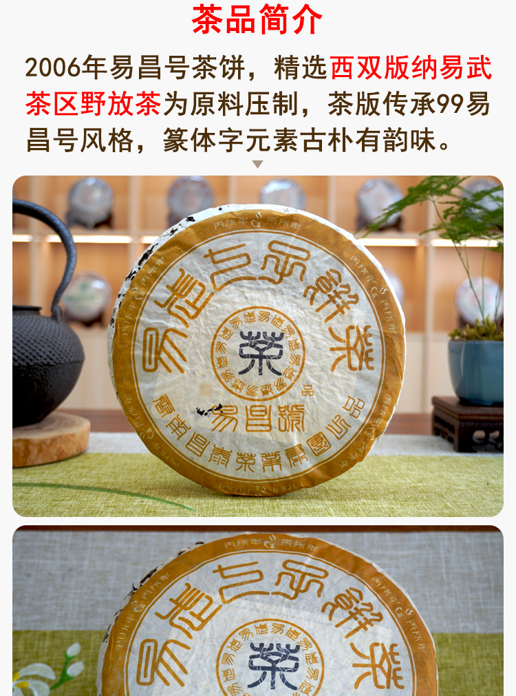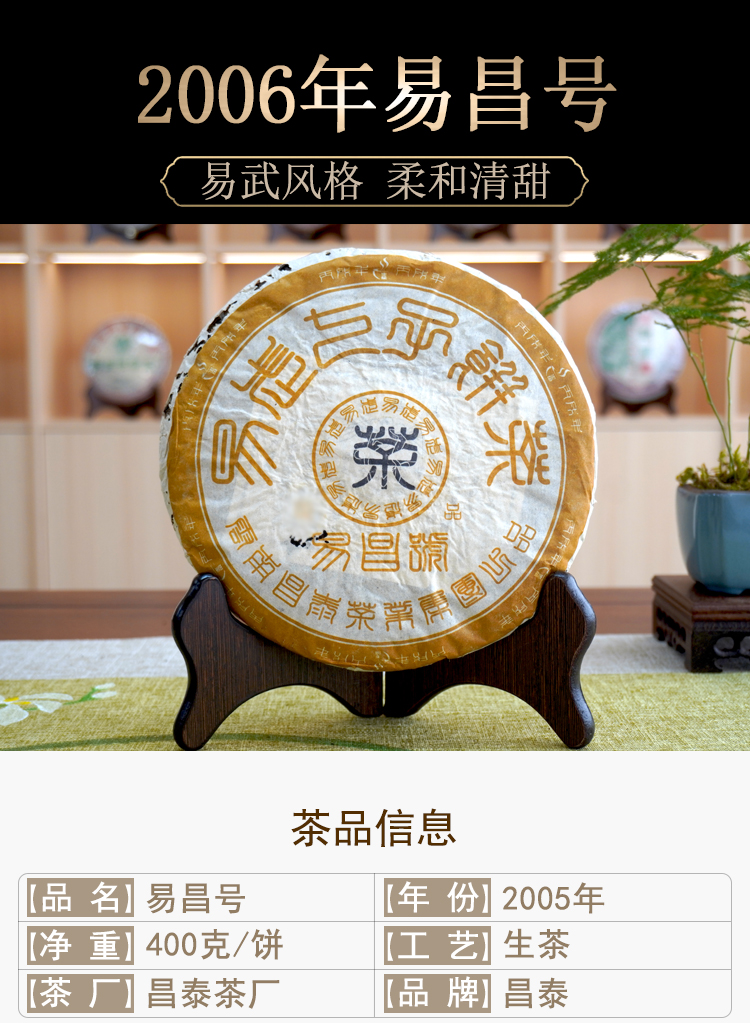 2006年昌泰易昌号易武正山原料经典老易武普洱茶生茶 一片400克真品 茶汤甜柔好回甘