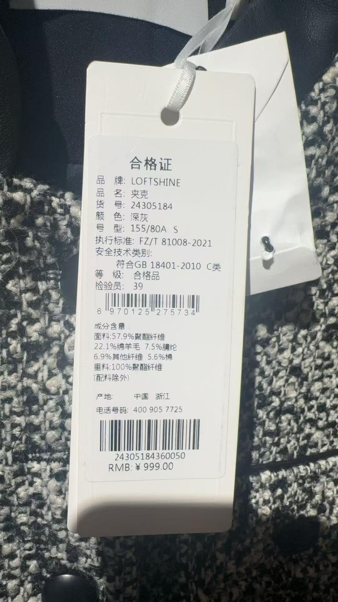 珞炫/LOFTSHINE深灰色夹克外套