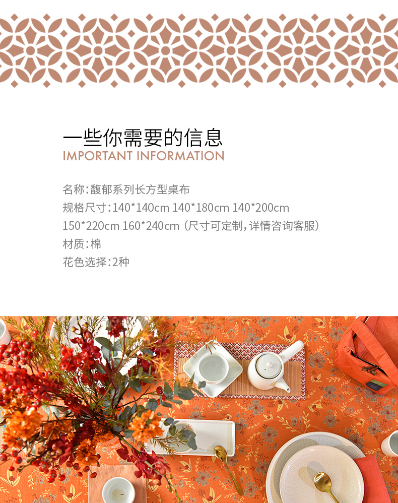 馥郁系列长方形桌布双面节日氛围棉质桌布