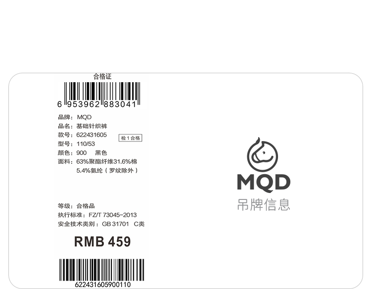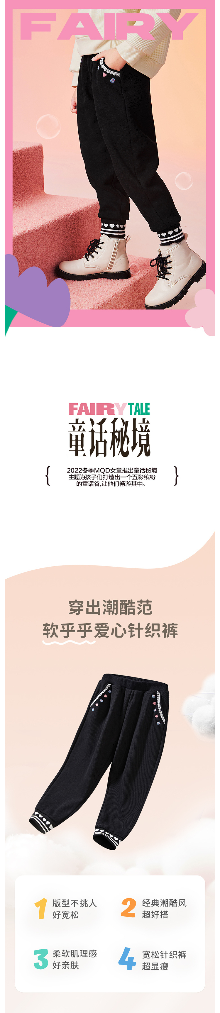 【秒】【特】【MQD】童装女童针织裤冬季新款儿童运动裤百搭舒适经典运动长裤