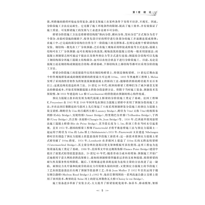 本教材在对有关现代复杂体系桥梁结构分阶段施工方法及监控技术等的研究成果进行系统总结和深化的基础上,立足现代化桥梁建设工程实际需要,解决桥梁设计与施工衔接问题,注重从基本原理的角度阐述施工控制问题。主要从物理本质上剖析各类桥梁分阶段施工与桥梁结构受力及设计的相互作用,降低桥梁设计与施工的技术风险;为桥梁分阶段施工过程的状态控制提供统一的理论框架和技术方法,实现对桥梁施工过程几何状态、应力与稳定等的精准控制,提高建造质量和效率。