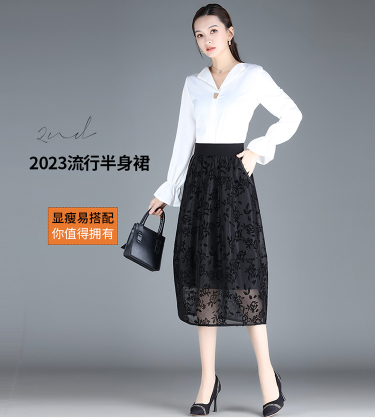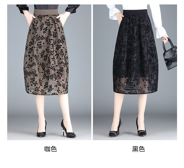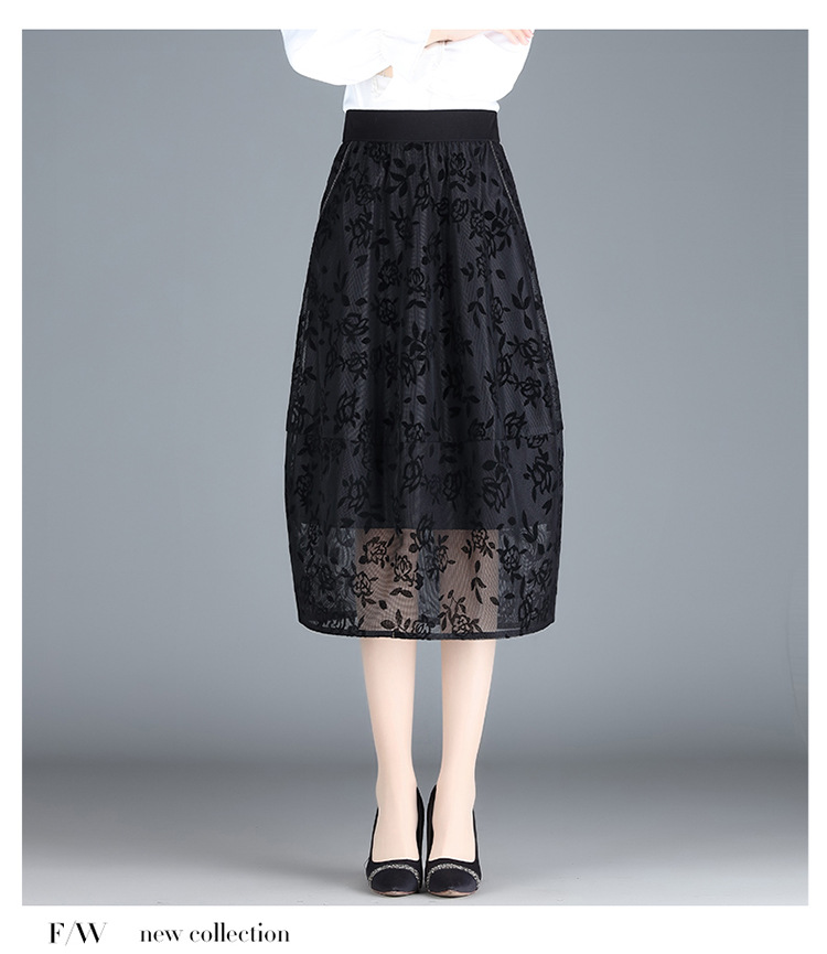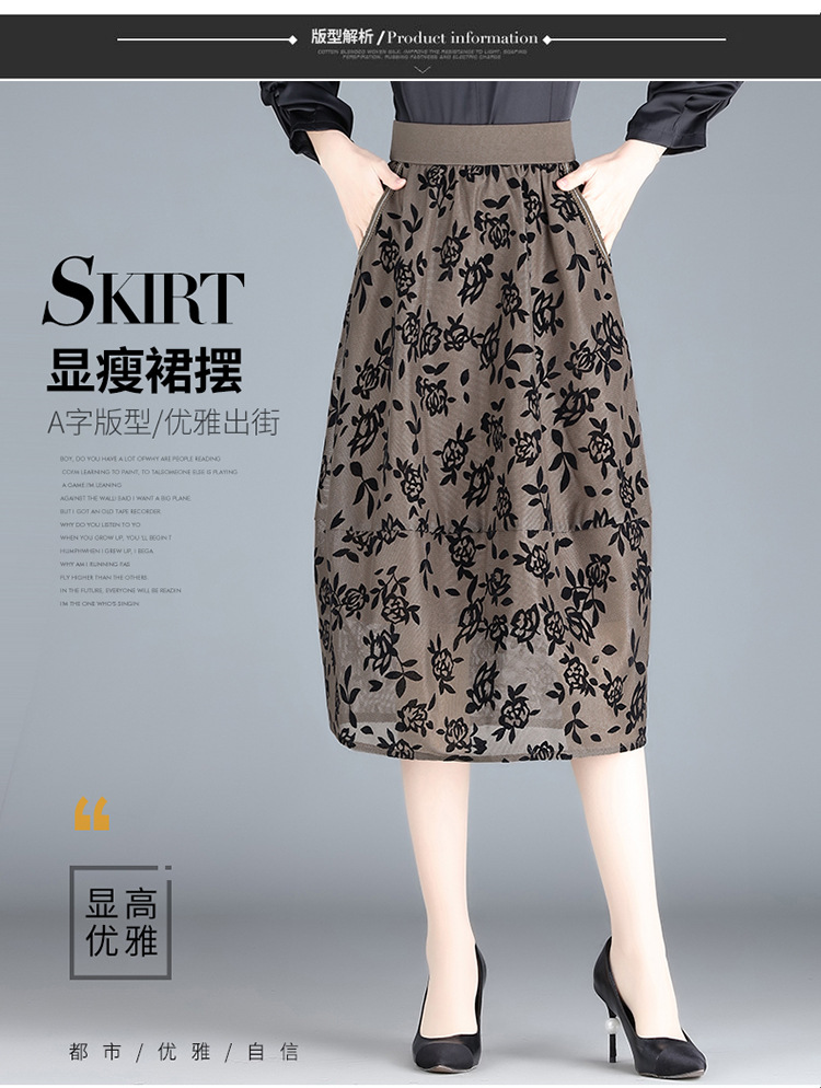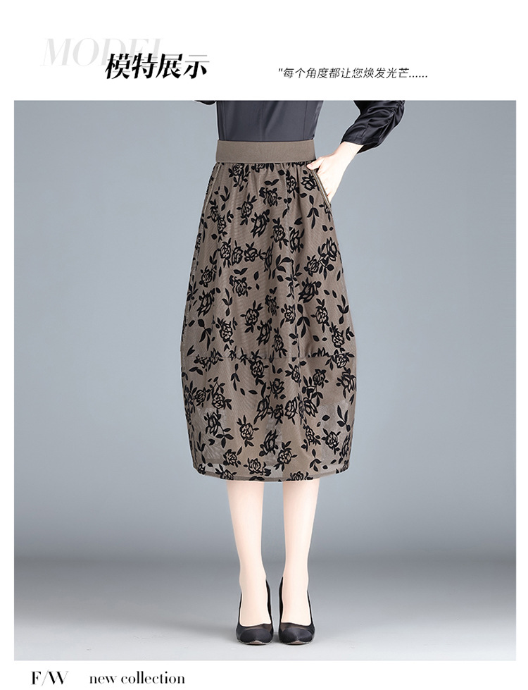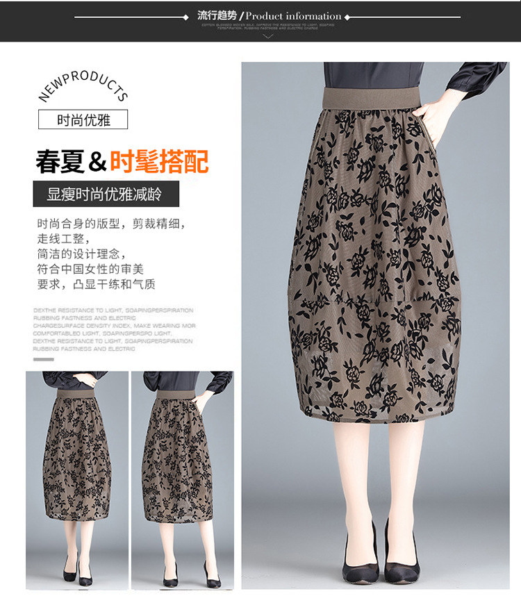 MYX-ZIY-1211-L中长款印花网纱灯笼裙初夏新款松紧腰时尚花苞裙遮胯显瘦半身裙