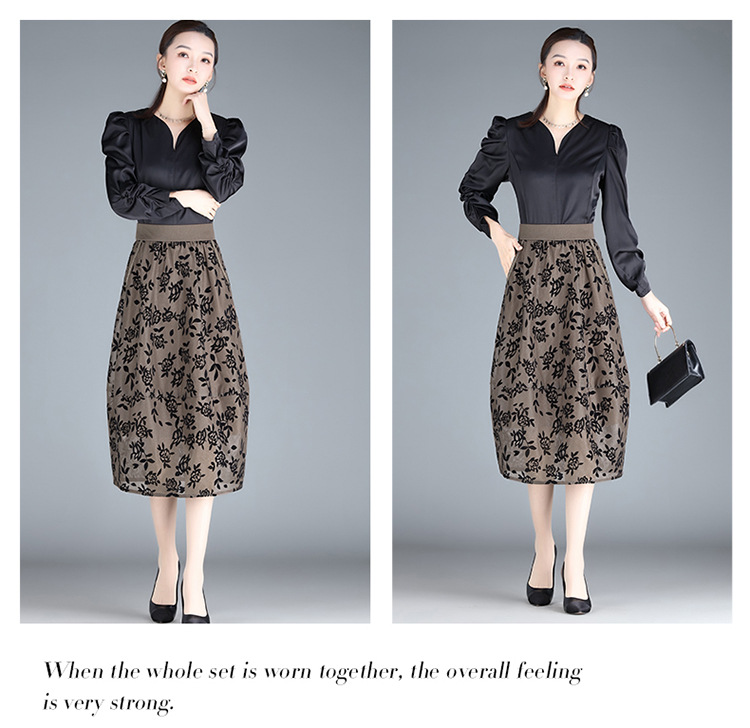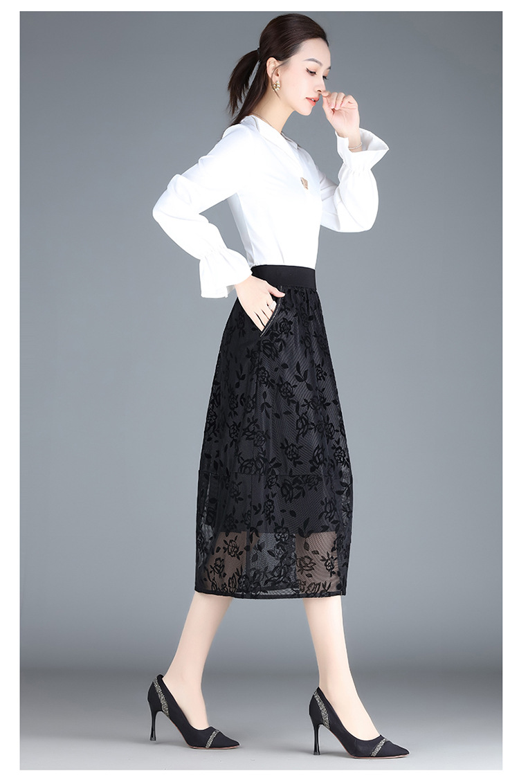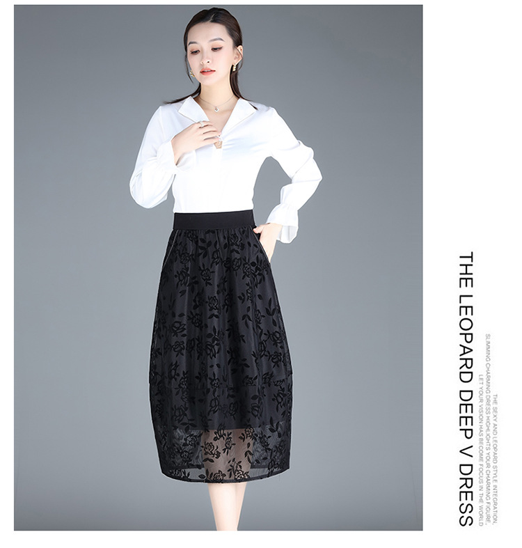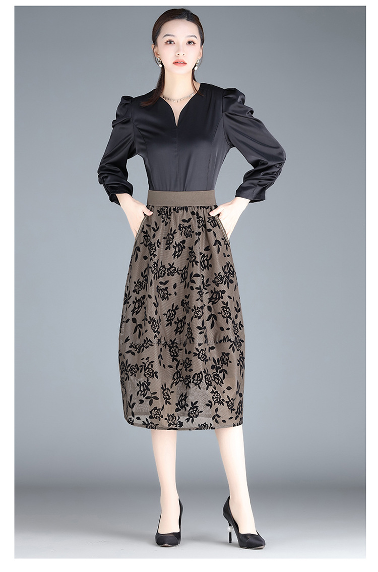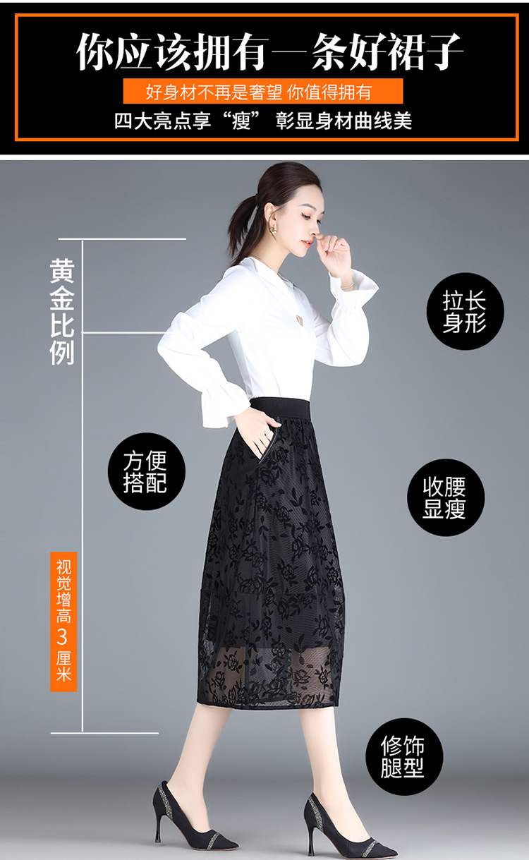 MYX-ZIY-1211-L中长款印花网纱灯笼裙初夏新款松紧腰时尚花苞裙遮胯显瘦半身裙