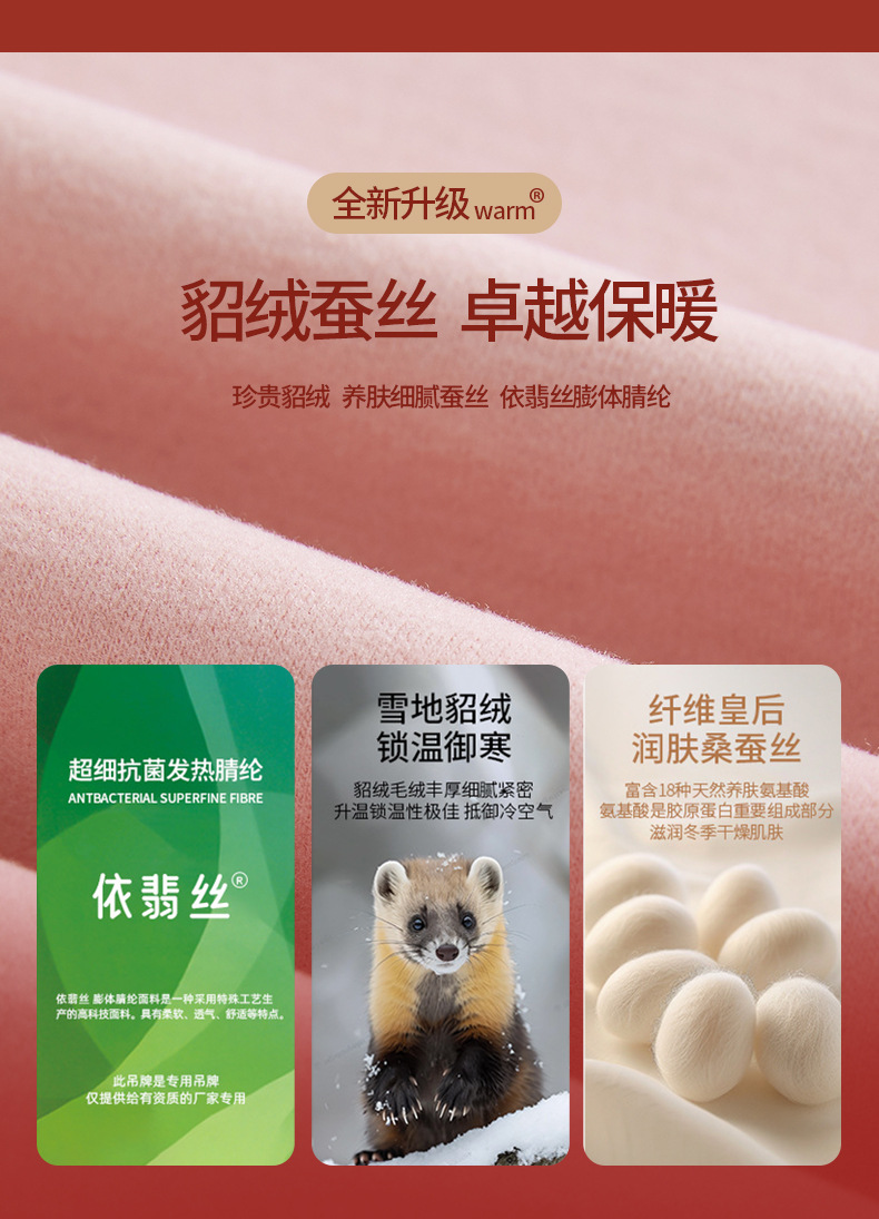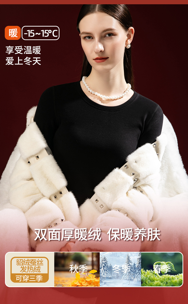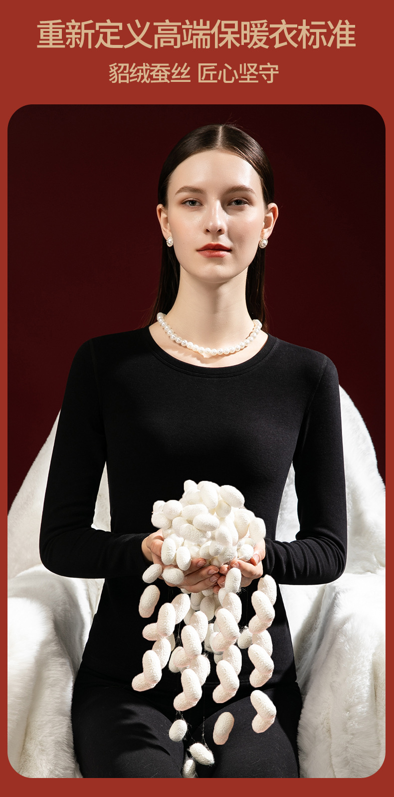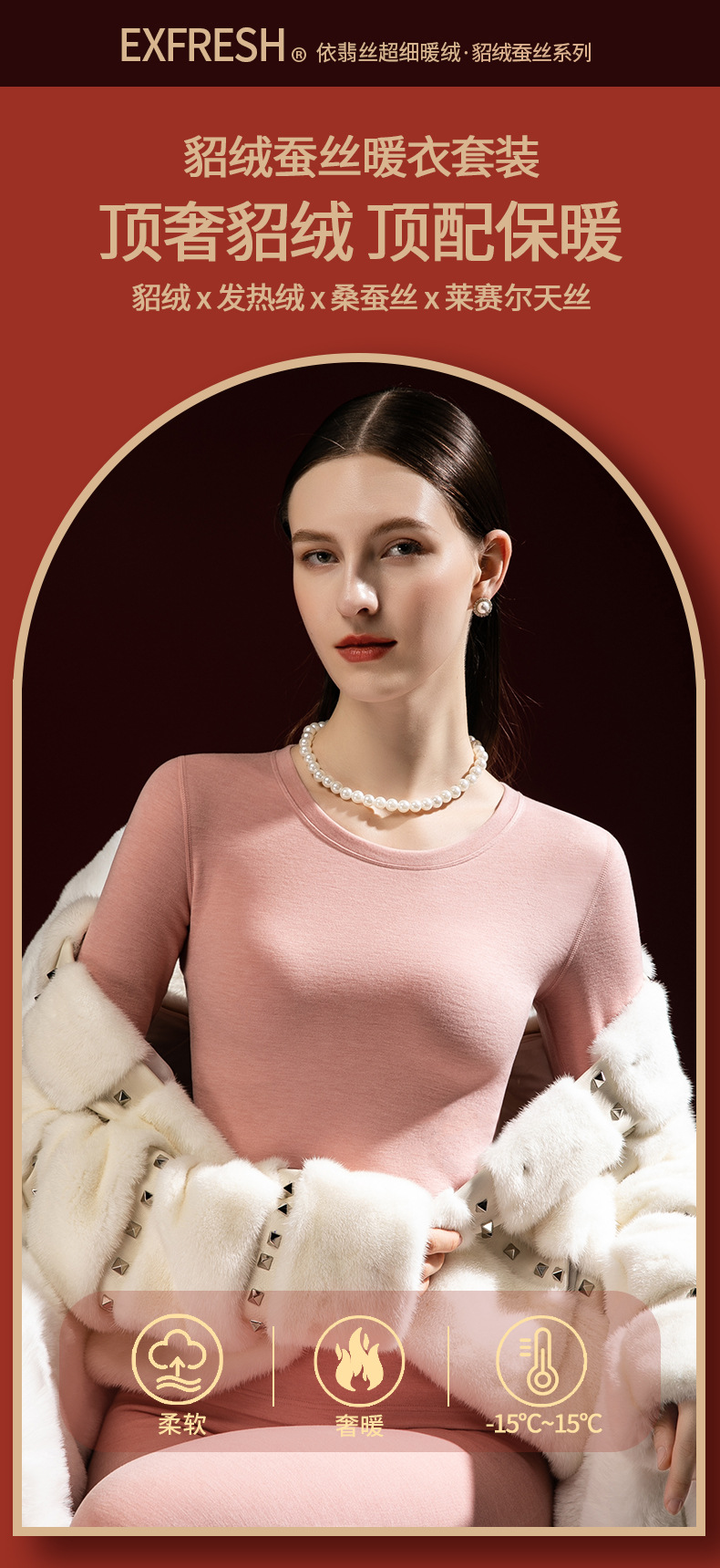 「自j」全新升级【铂金会员201/天猫269/差价68】(99050)洛诗琳蚕丝暖绒发热保暖内衣2025秋冬加绒加厚貂绒秋衣套装