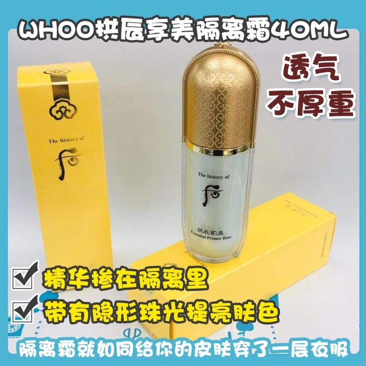 WHOO拱辰享美隔离霜40ML#绿色 👍你可以不打粉底,不涂bb,🙅但你一定要记得涂隔离霜❗隔离霜就如同给你的皮肤穿了一层衣服👗!这款whoo精华隔离,精华掺在隔离里💧,能养肤的同时✔,带有隐形珠光提亮肤色😇,让bb粉底更贴合脸部,妆感自然有光泽✨,透气不厚重~#💚绿色适合泛红和有痘印肌肤,👉修饰泛红肌肤和痘印,修饰毛孔并有效提亮暗沉肤色👅,令肌肤blingbling的🌟。