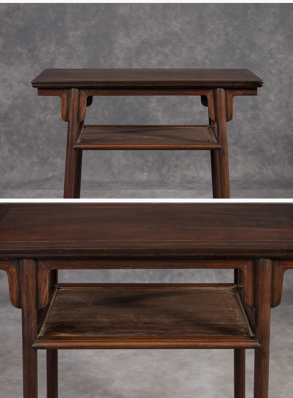 二十世纪 黄花梨卷草纹三弯腿带托泥方香几(一对)