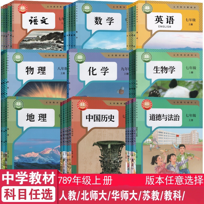 (初中课本上册)初中课本教材语文数学英语科学道德法治地理音乐美术体育七八九年级上册 任选学校同步正版教材