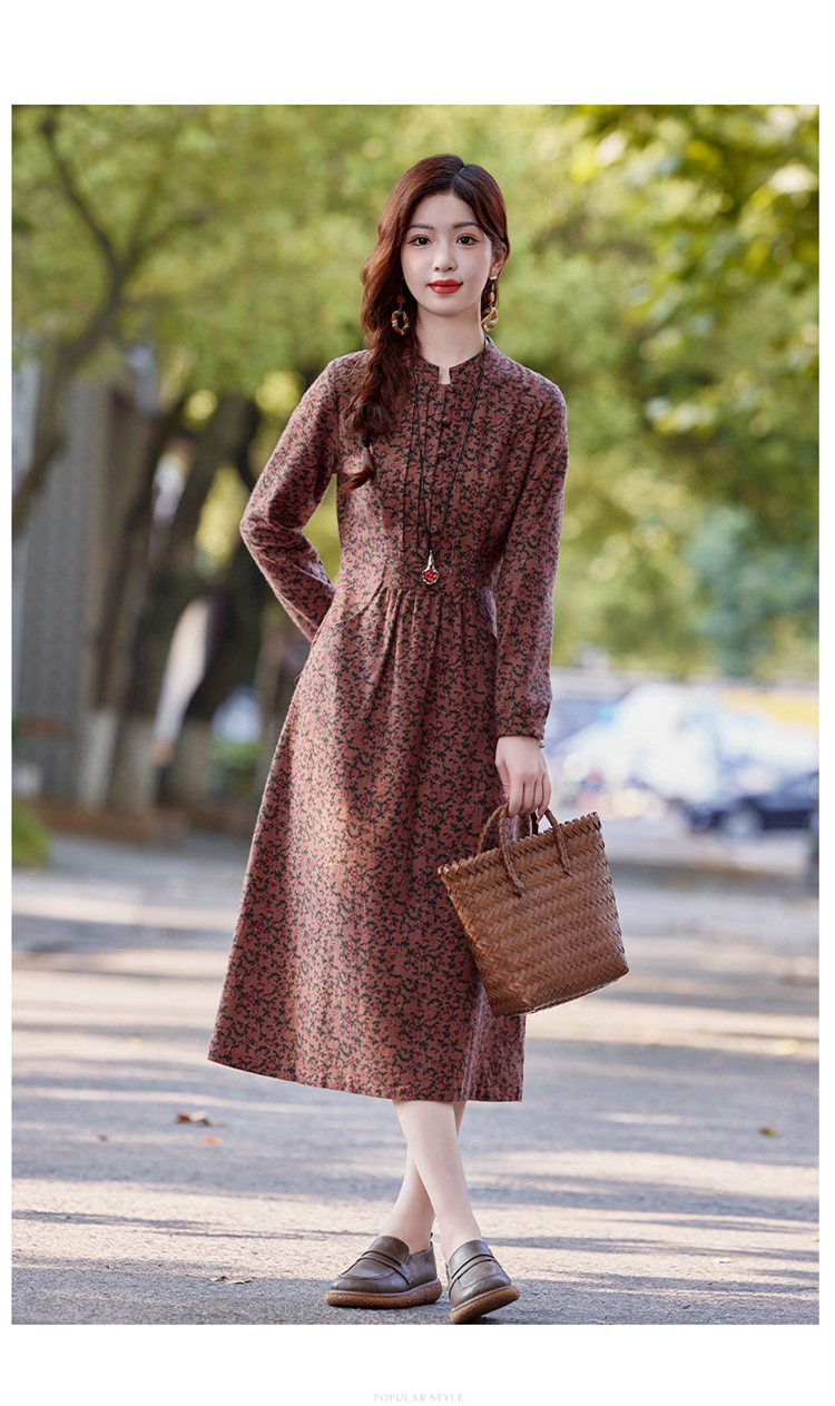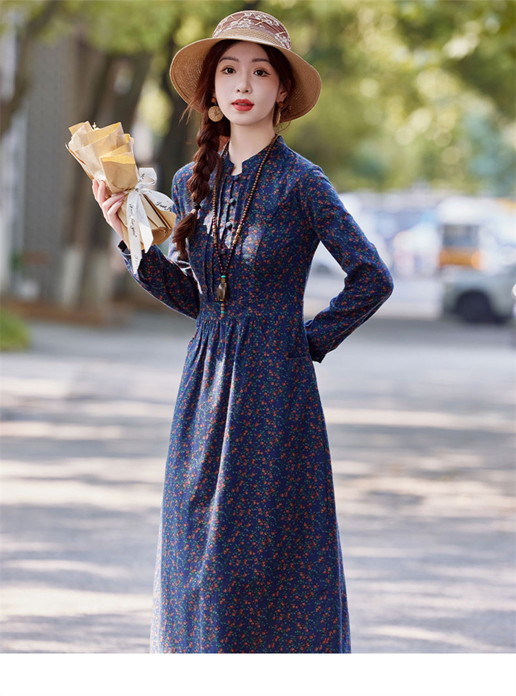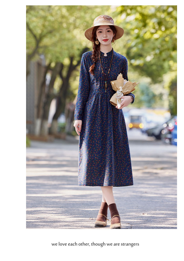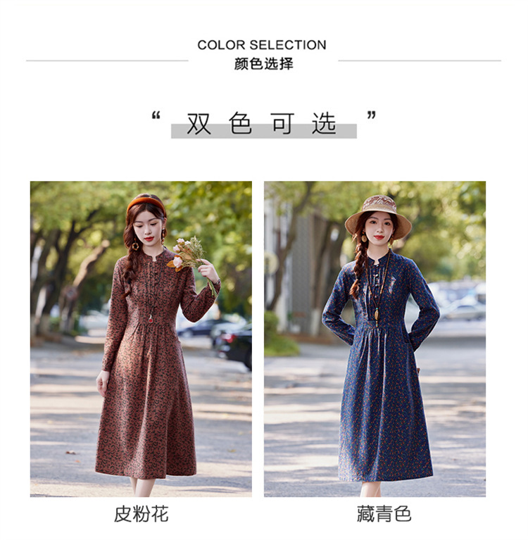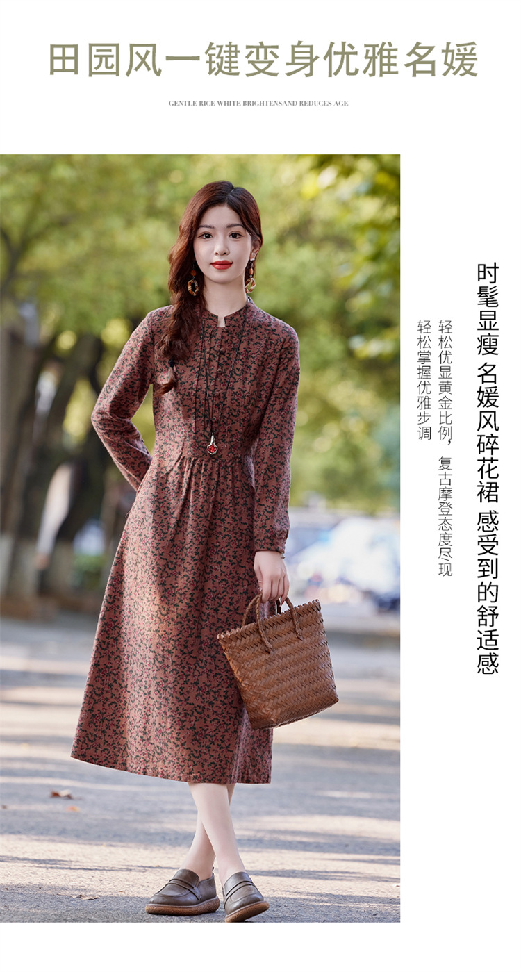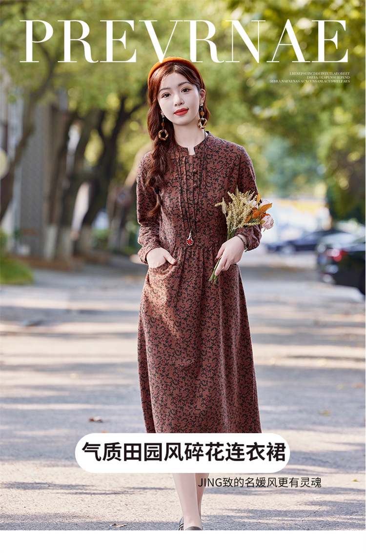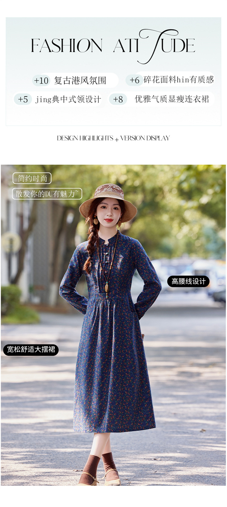 SYY2578立领挂脖式秋季多色显瘦2025连衣裙收腰长袖度假风ins风碎花气质