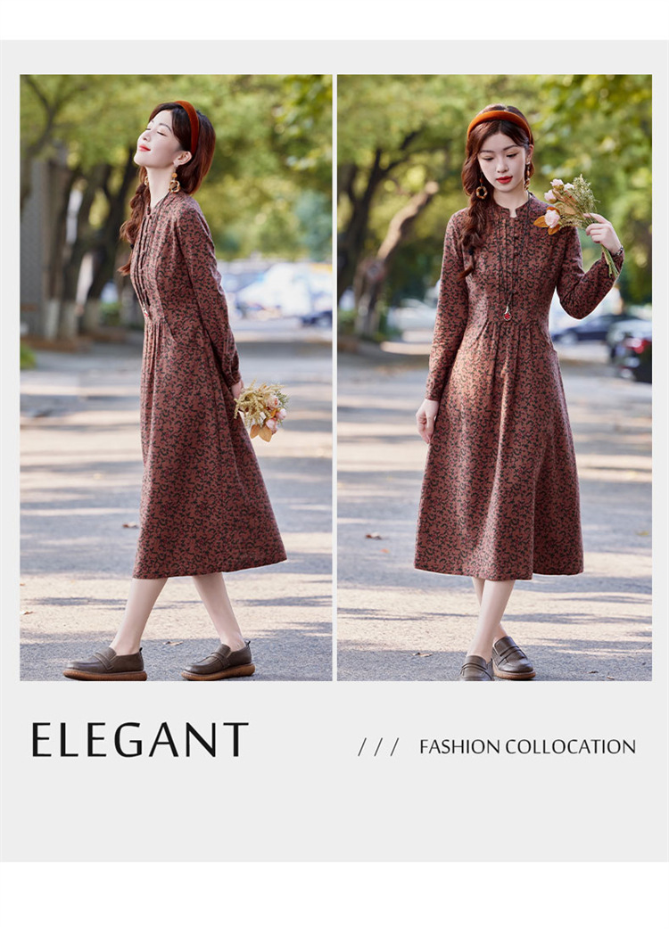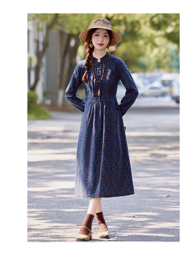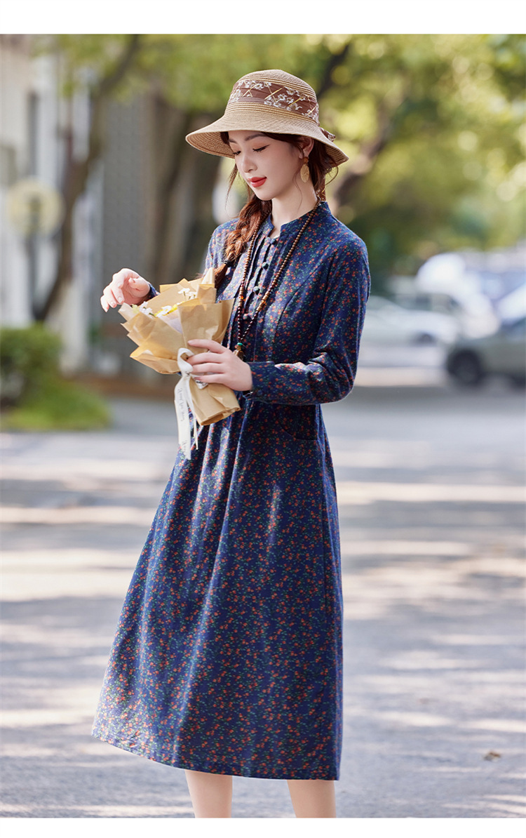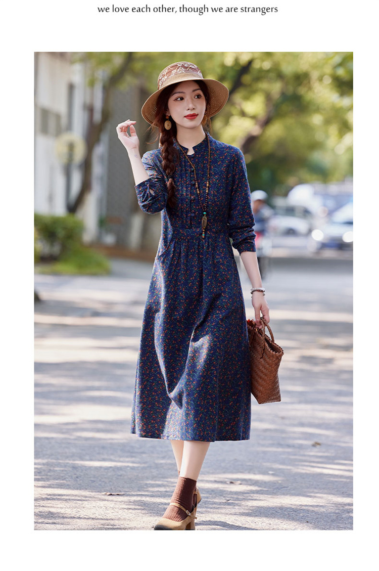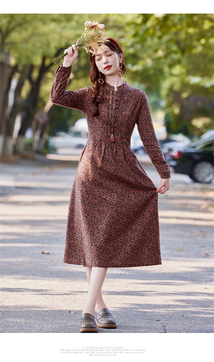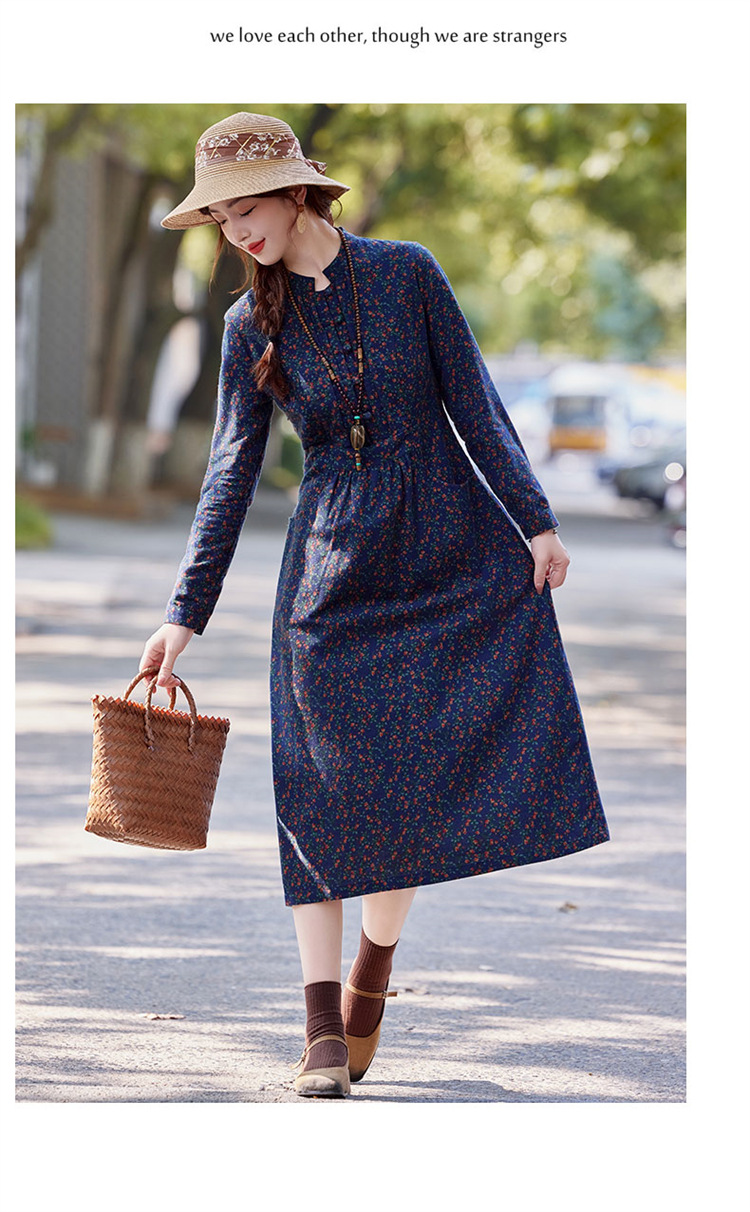 SYY2578立领挂脖式秋季多色显瘦2025连衣裙收腰长袖度假风ins风碎花气质