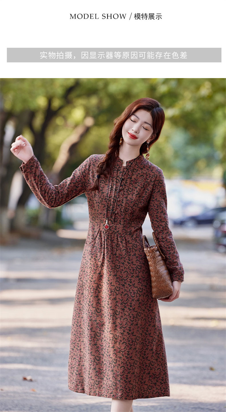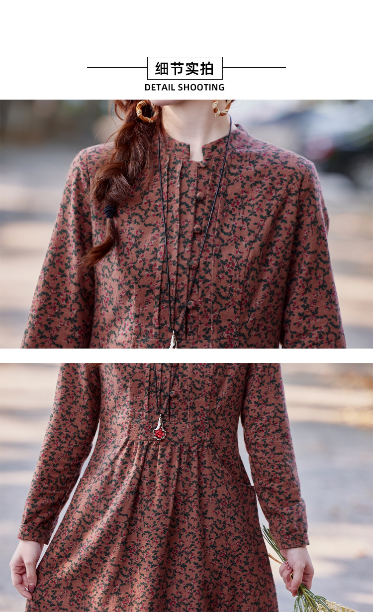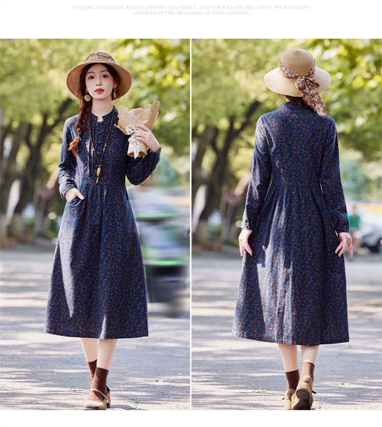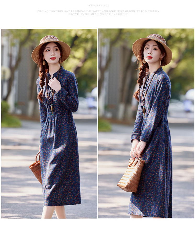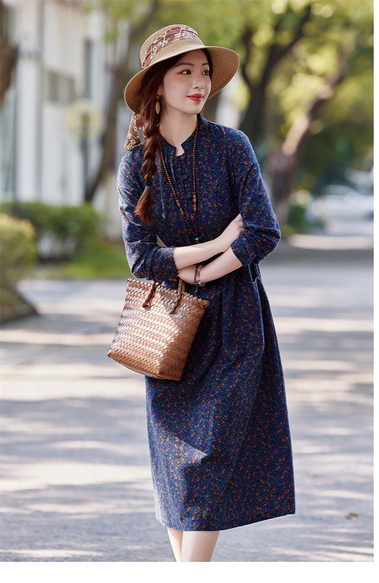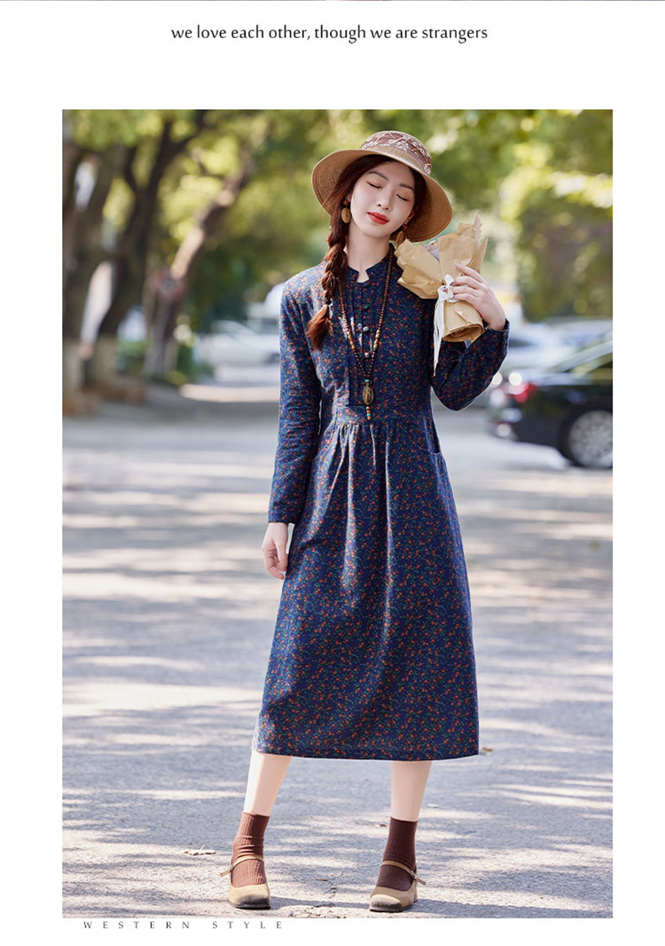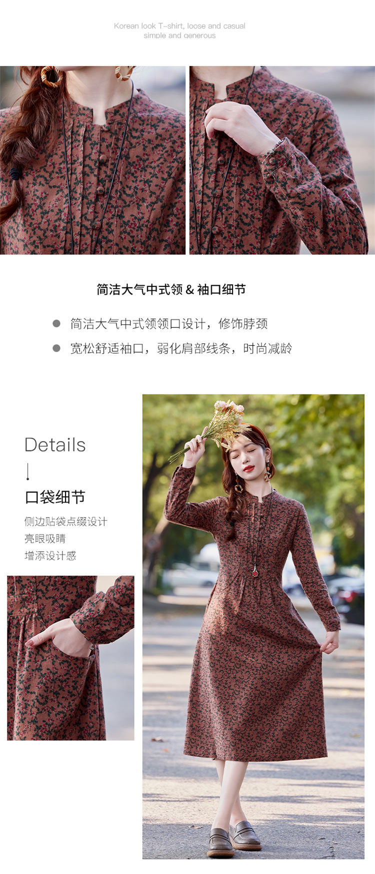 SYY2578立领挂脖式秋季多色显瘦2025连衣裙收腰长袖度假风ins风碎花气质