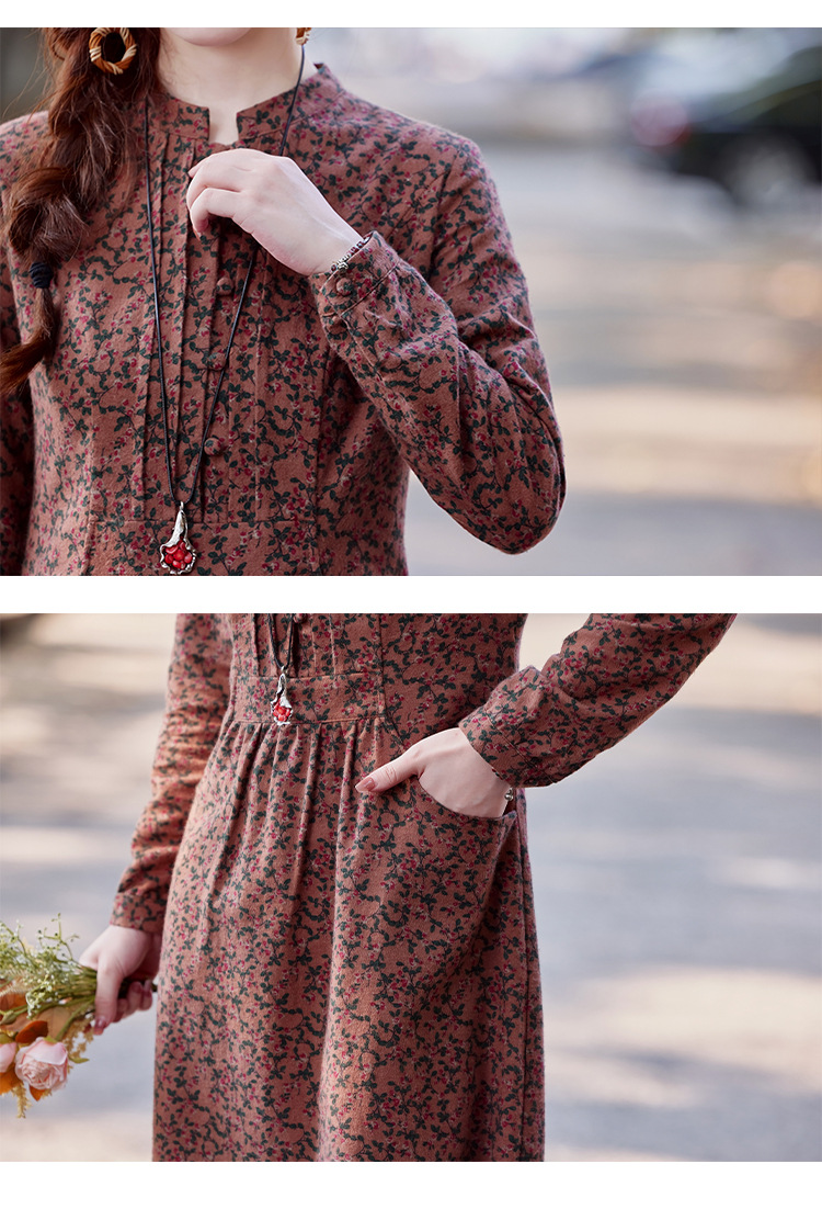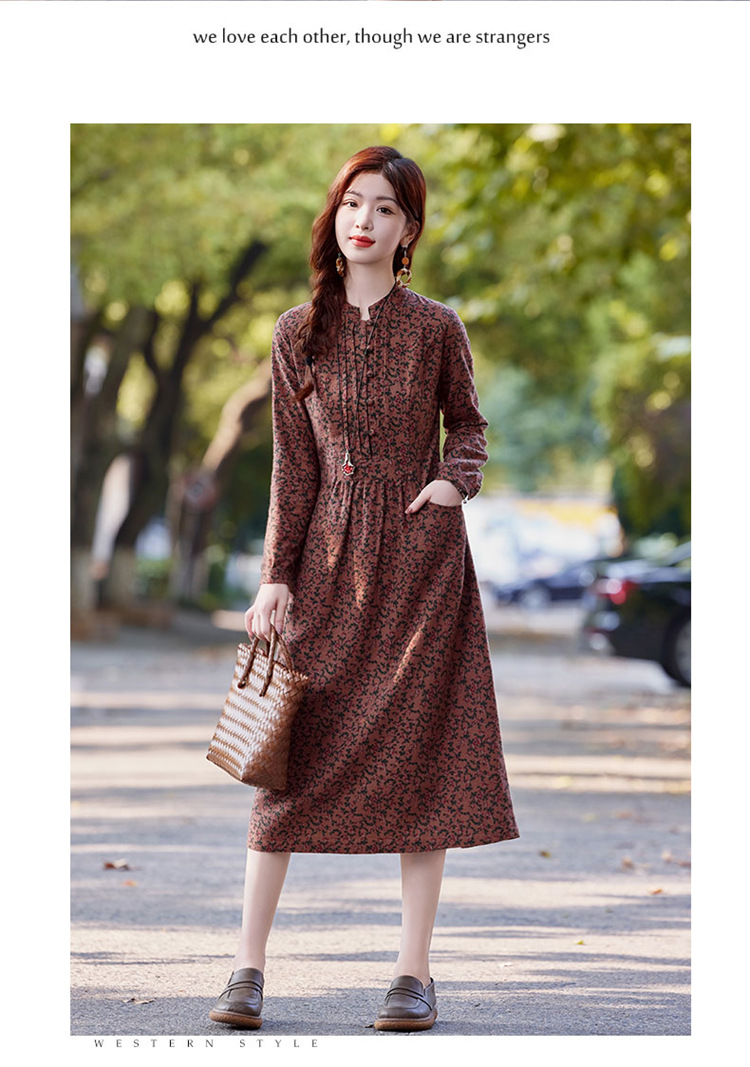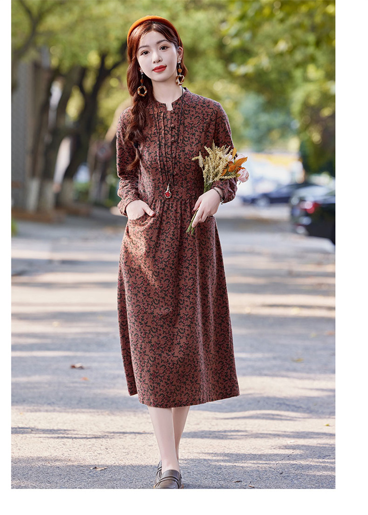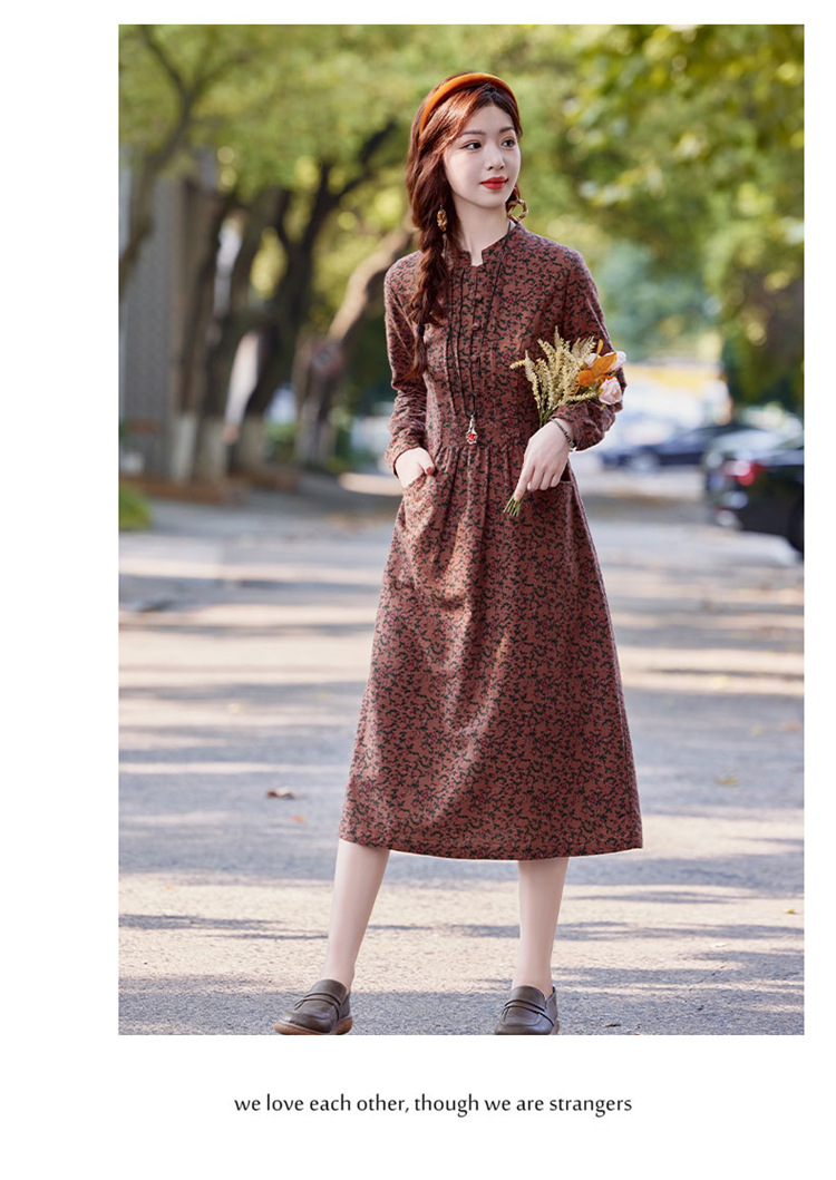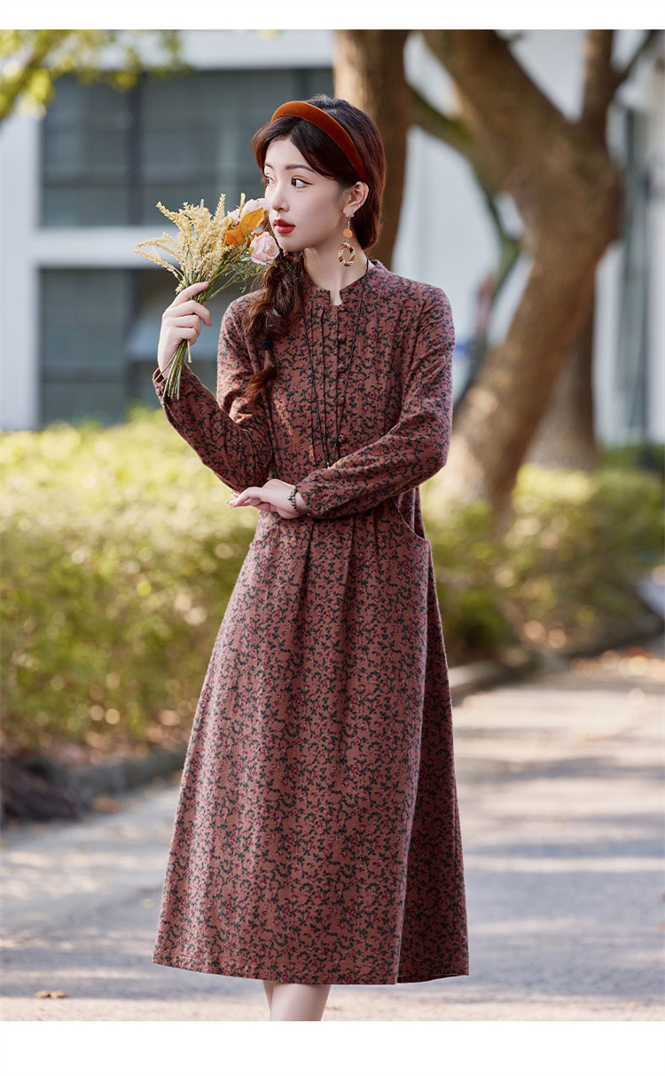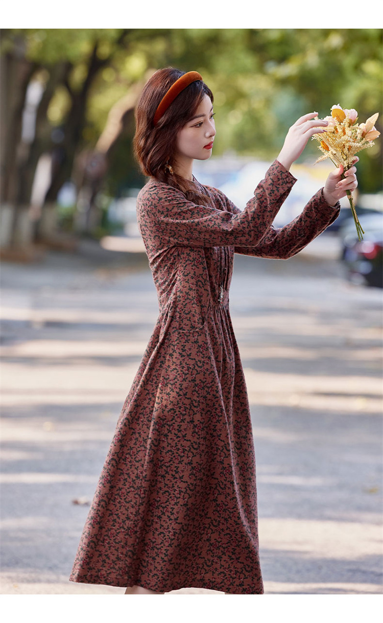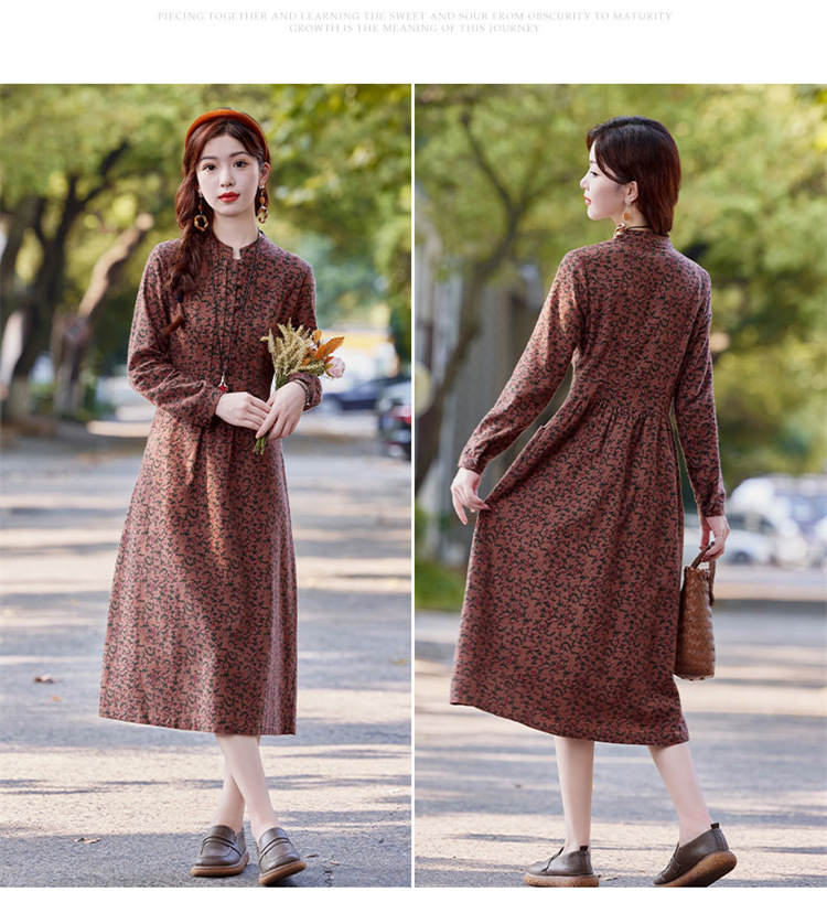 SYY2578立领挂脖式秋季多色显瘦2025连衣裙收腰长袖度假风ins风碎花气质