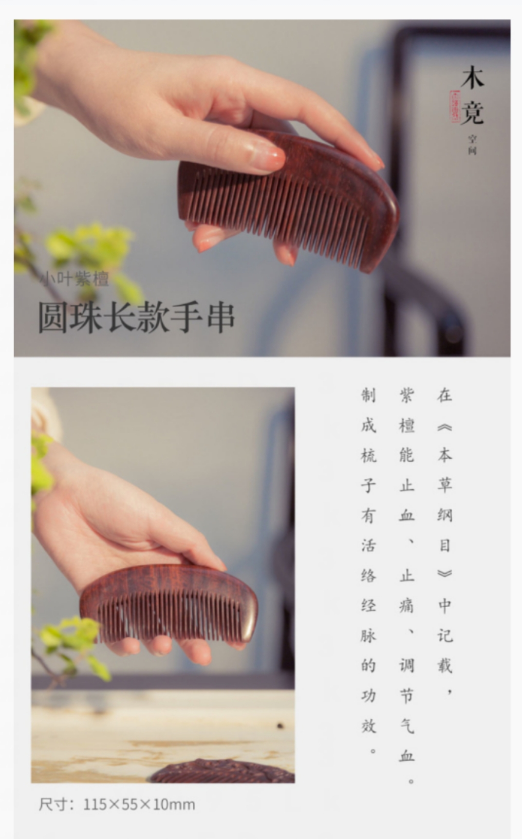 「小叶紫檀」梳子(素面/雕花)