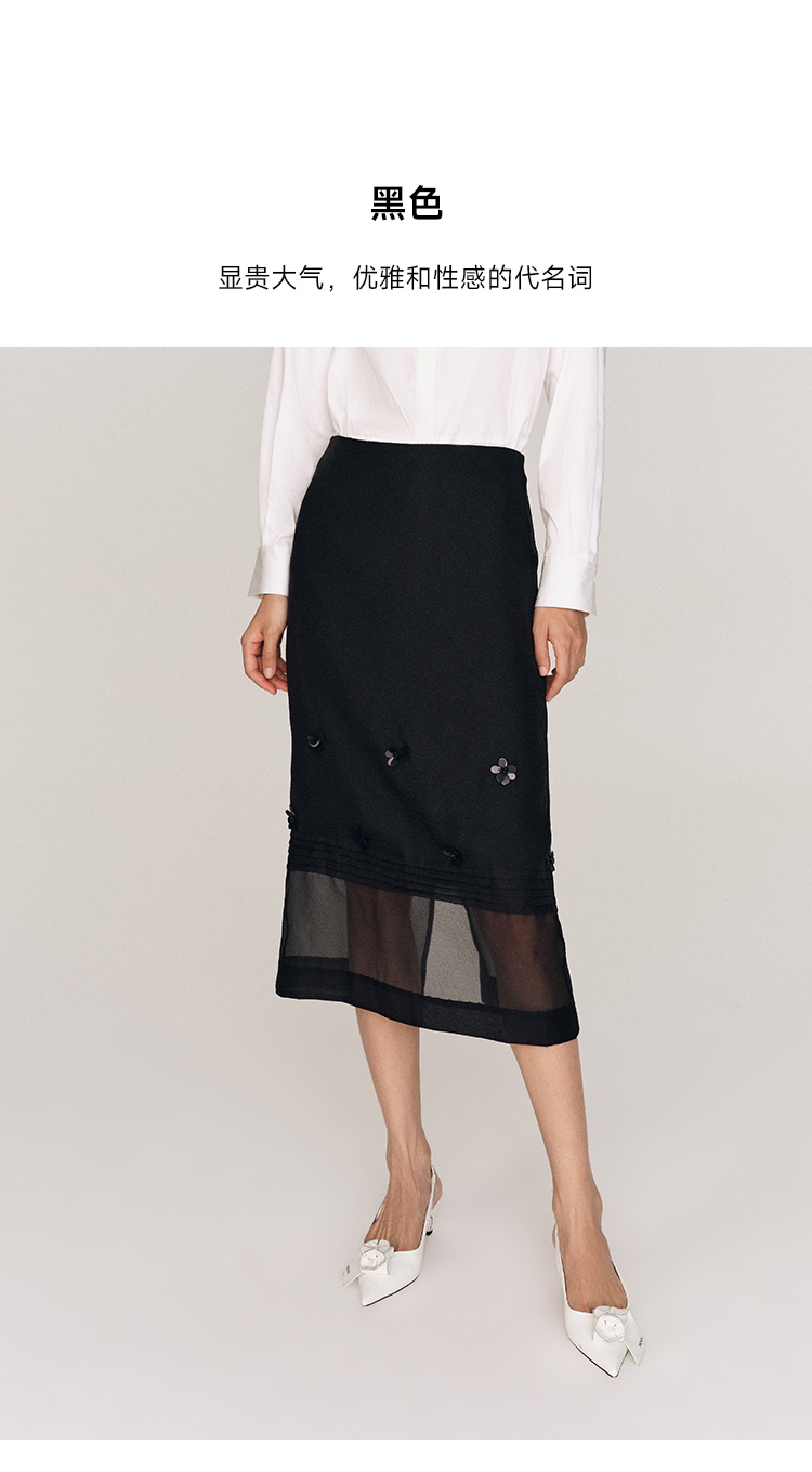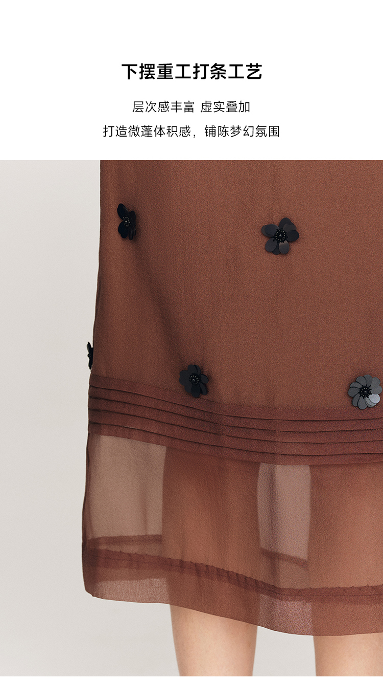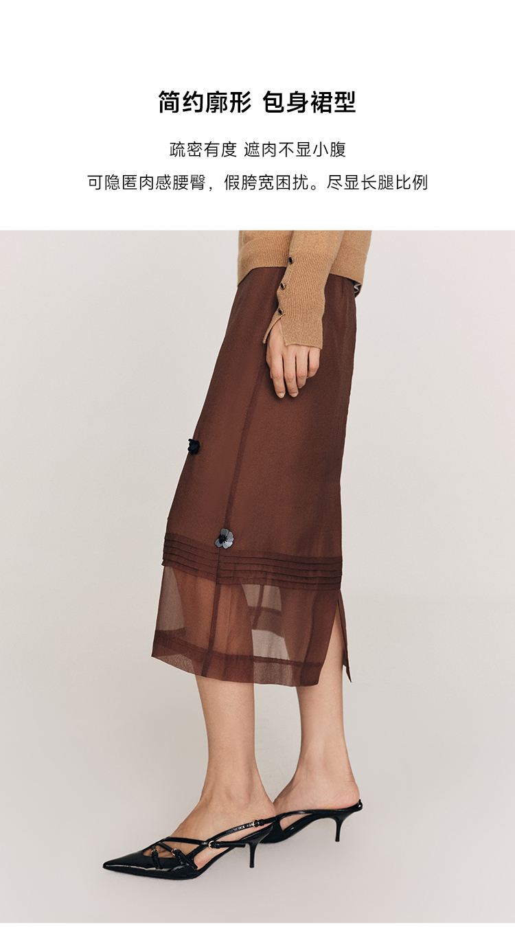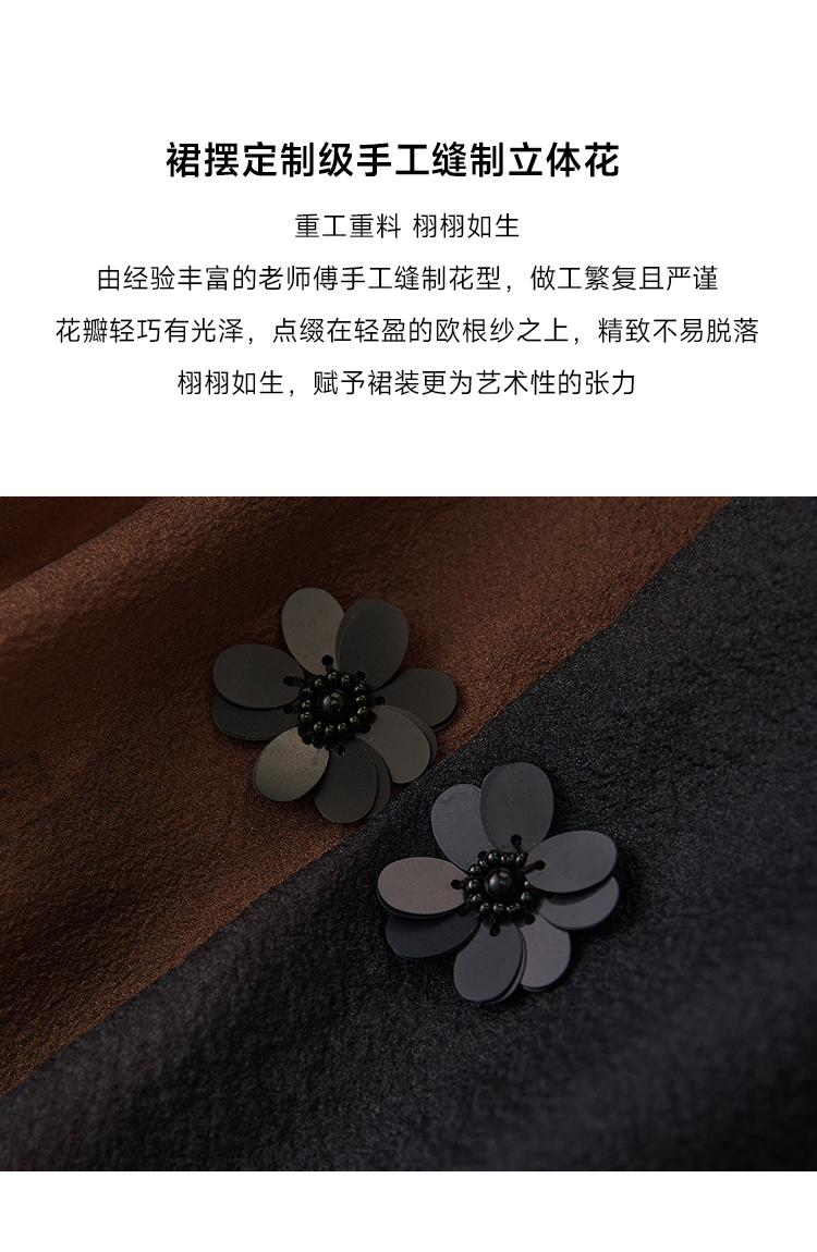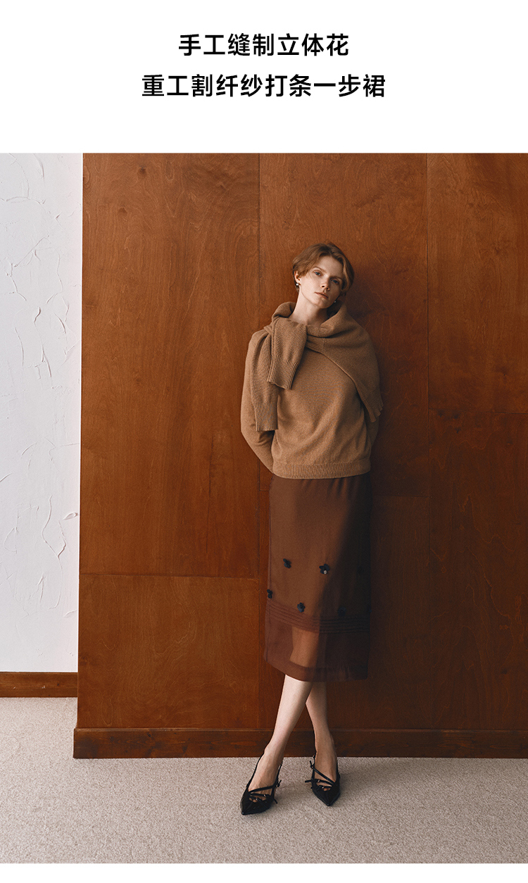 手工缝制立体花 重工割纤纱打条一步裙FB486823D