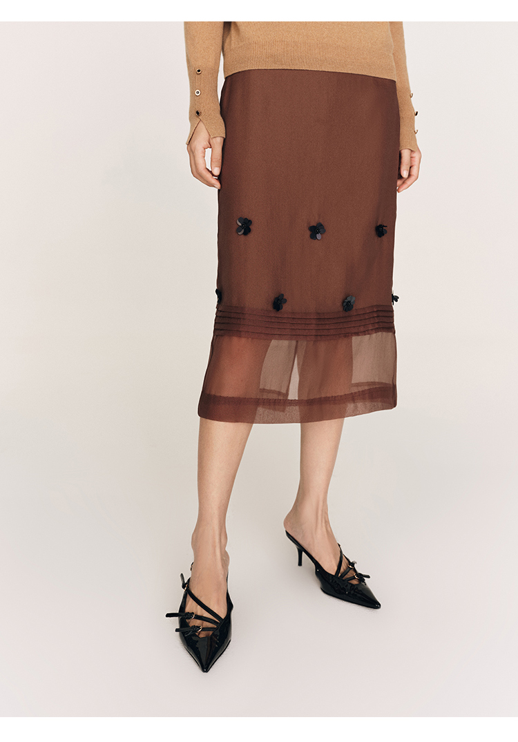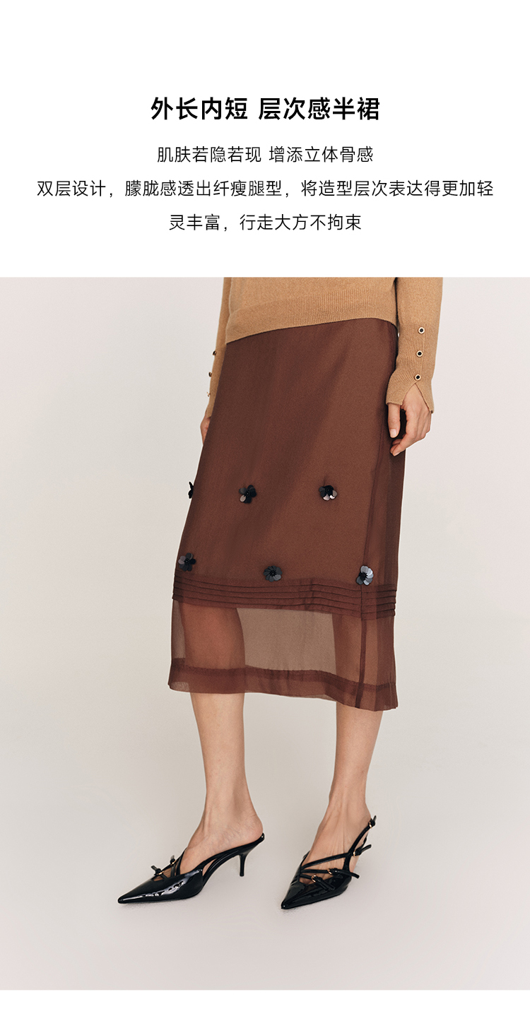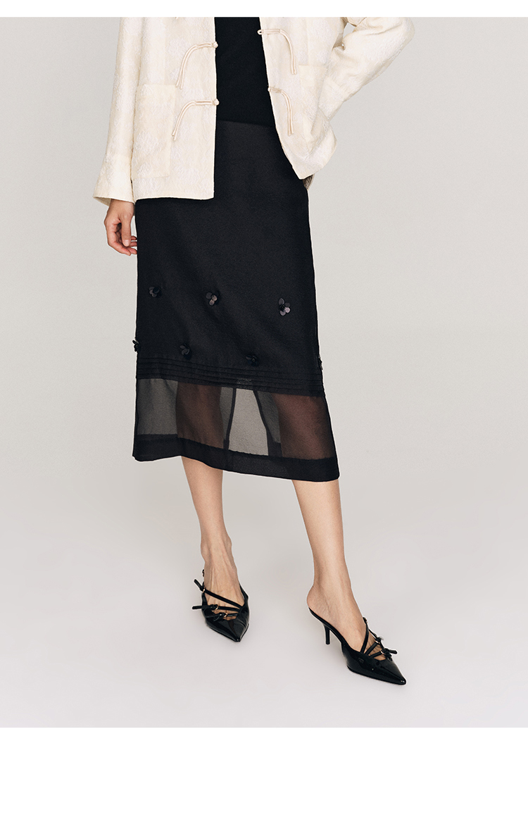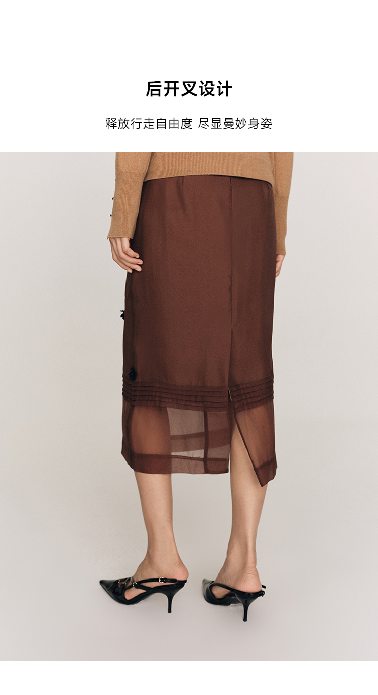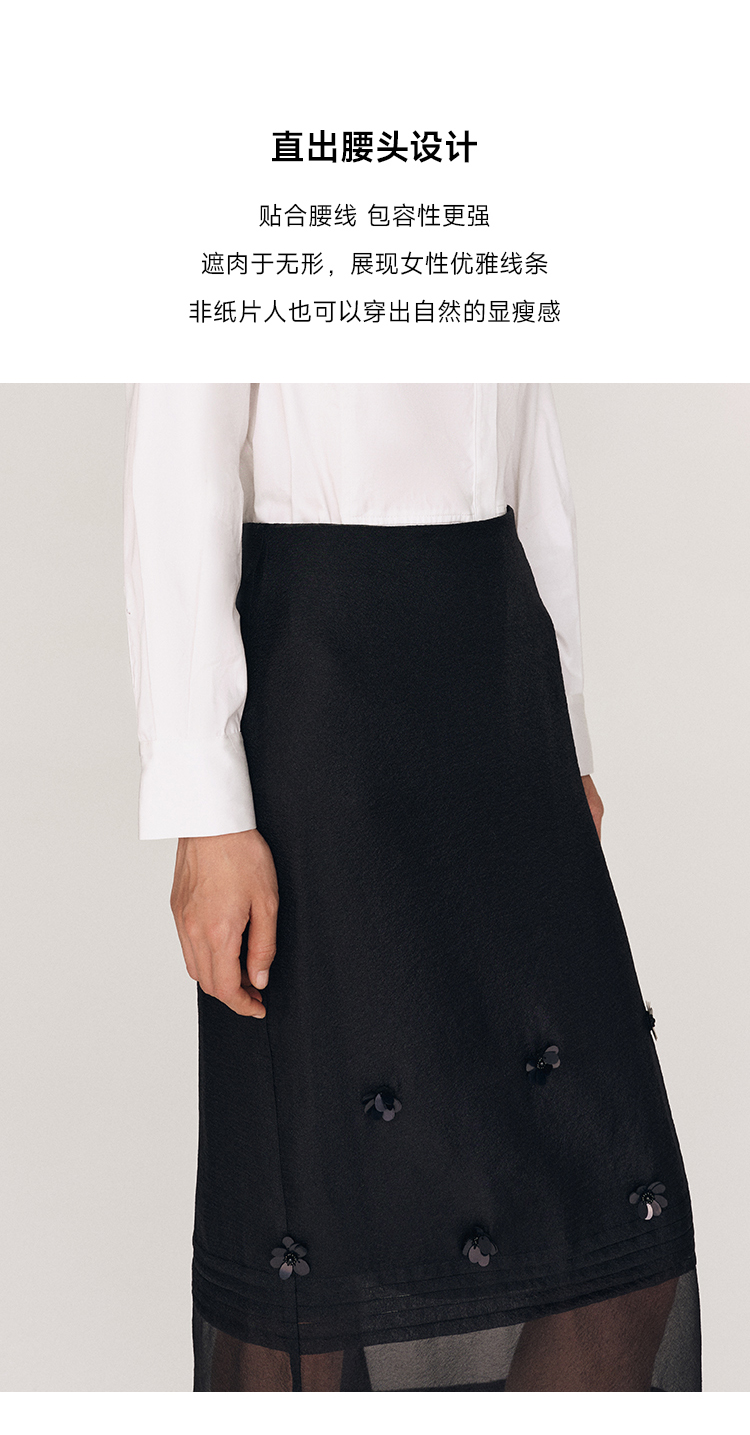 手工缝制立体花 重工割纤纱打条一步裙FB486823D