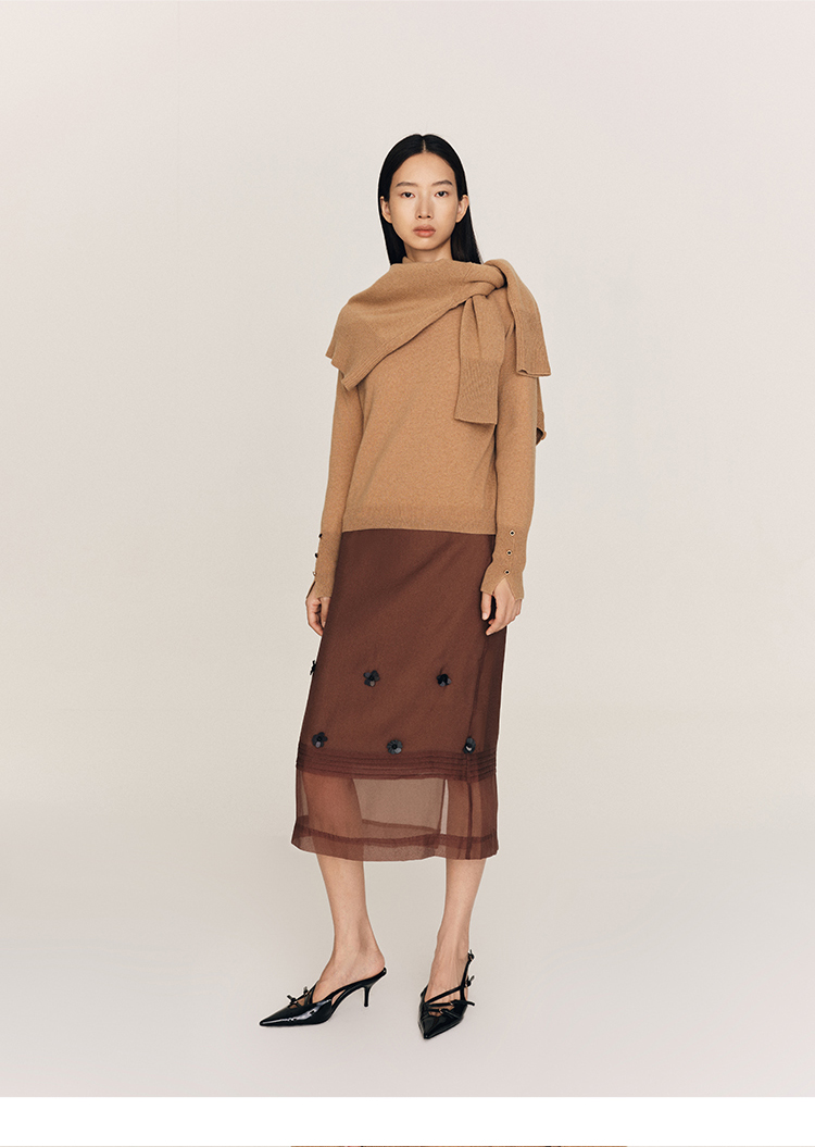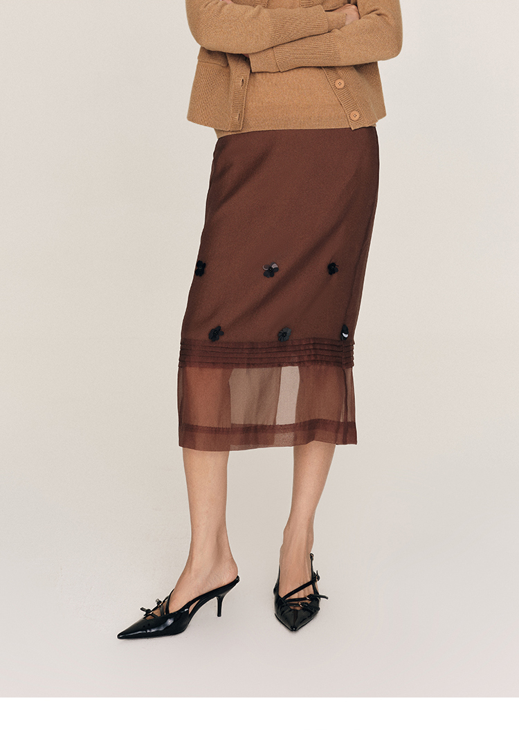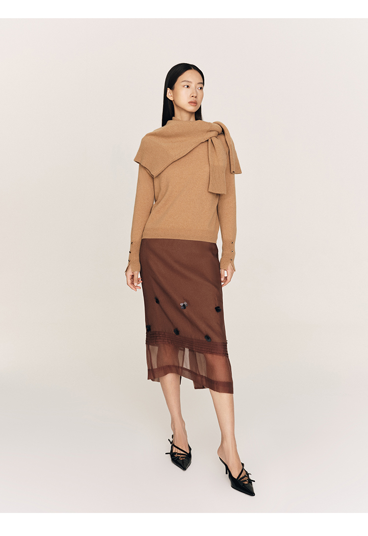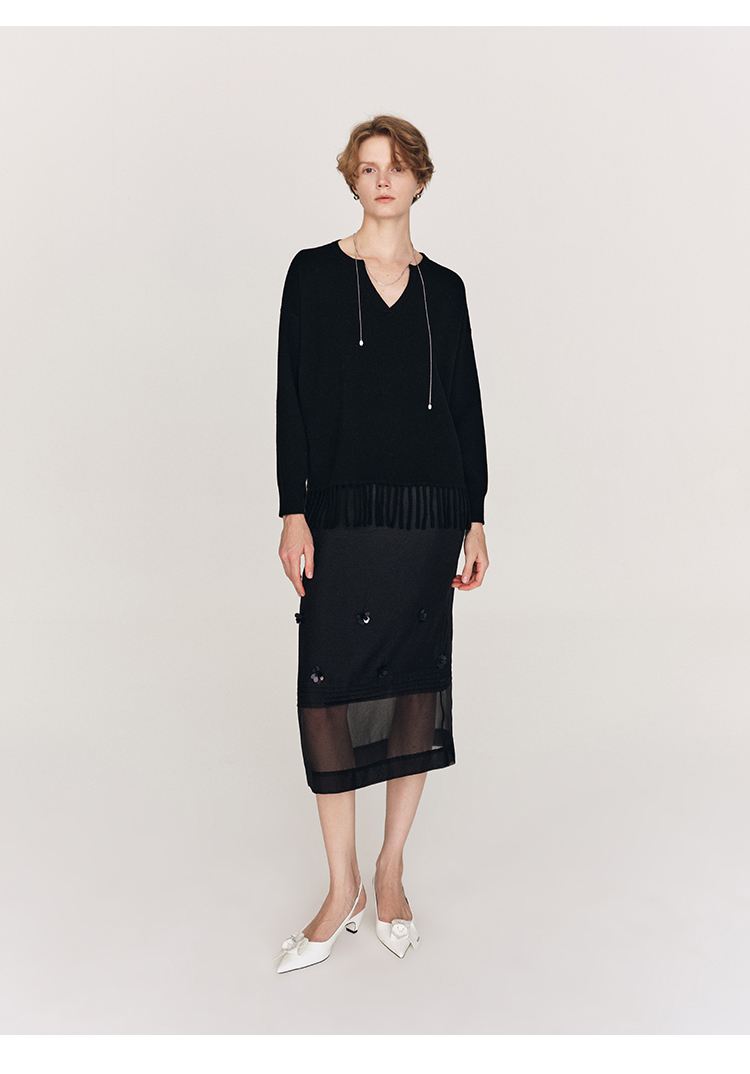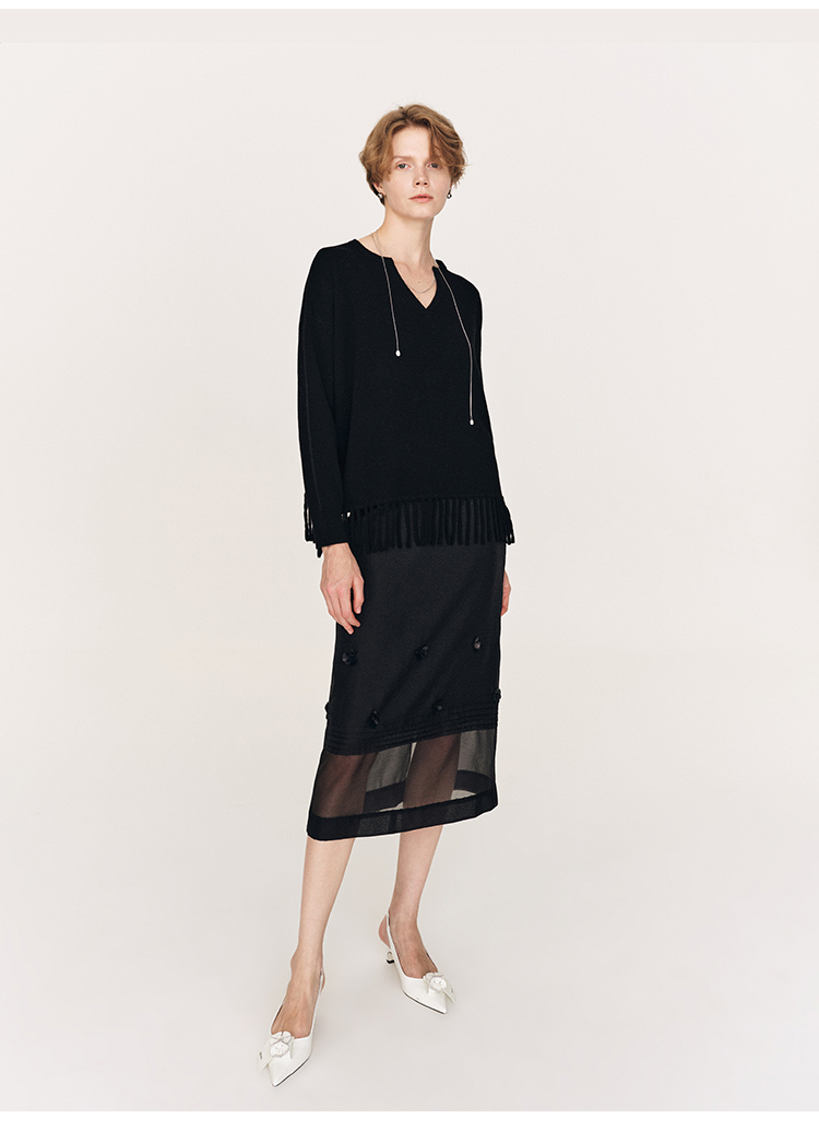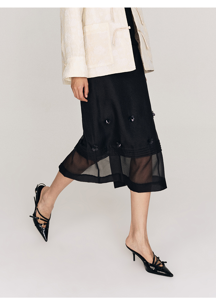 手工缝制立体花 重工割纤纱打条一步裙FB486823D