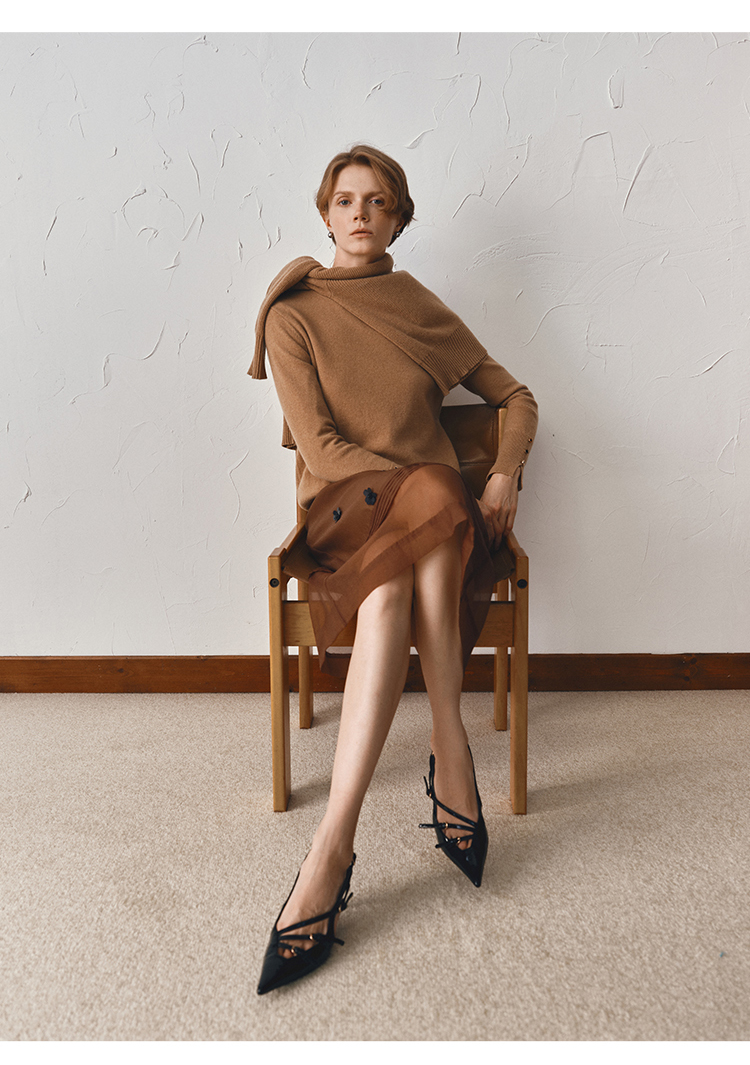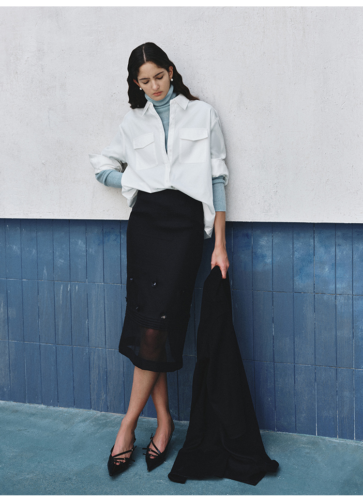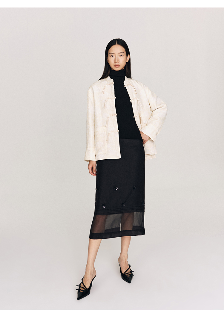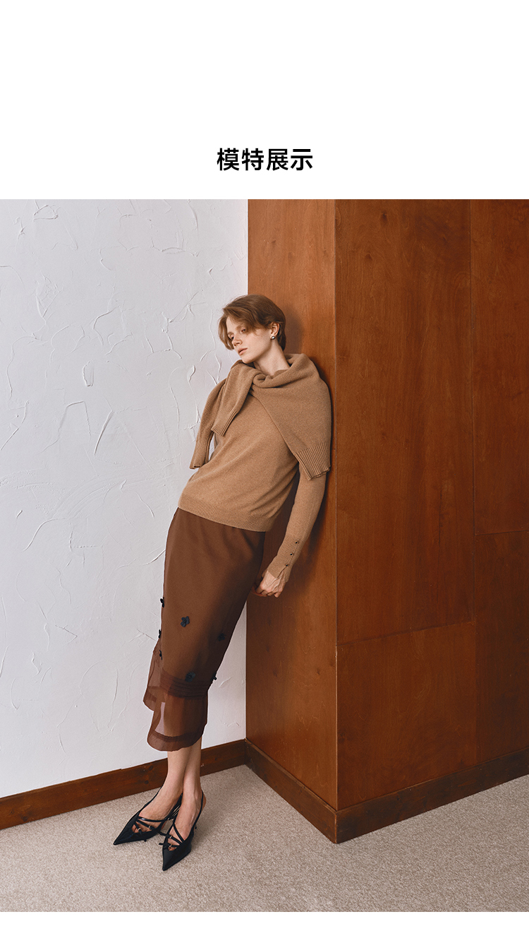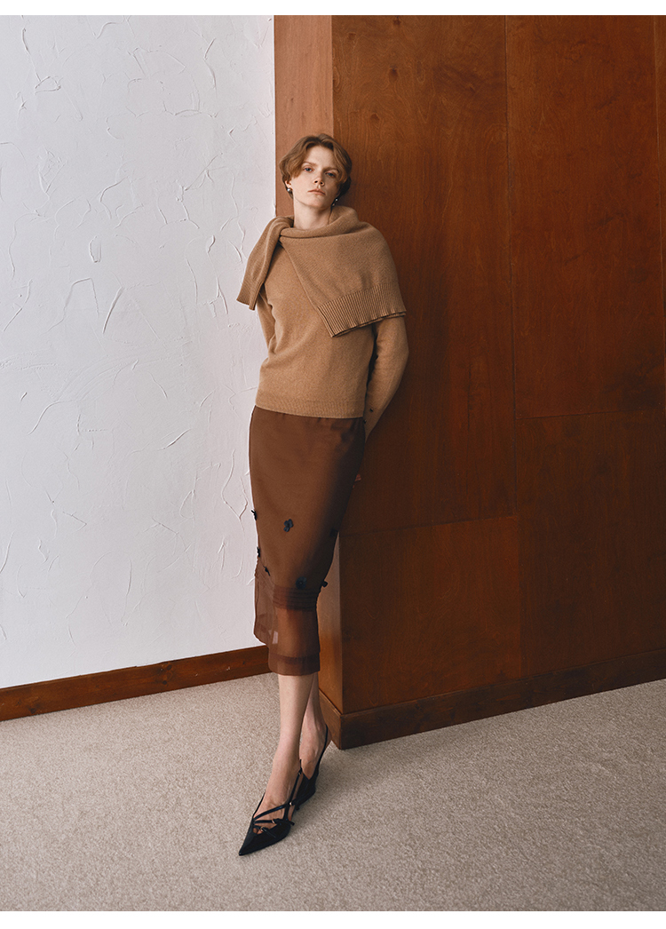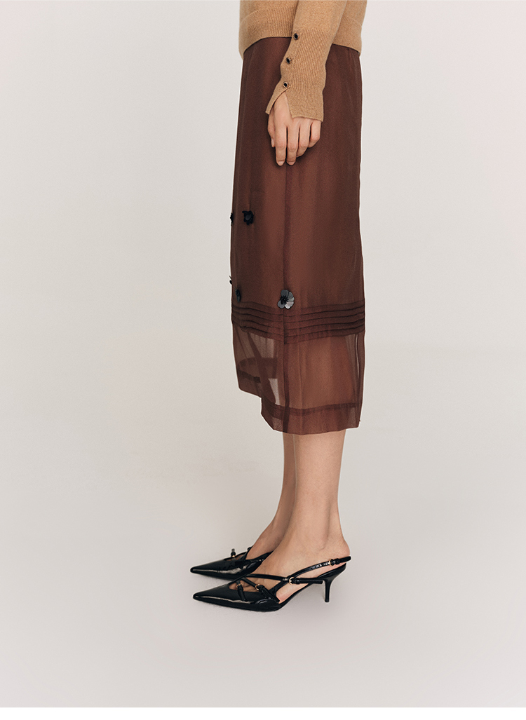 手工缝制立体花 重工割纤纱打条一步裙FB486823D