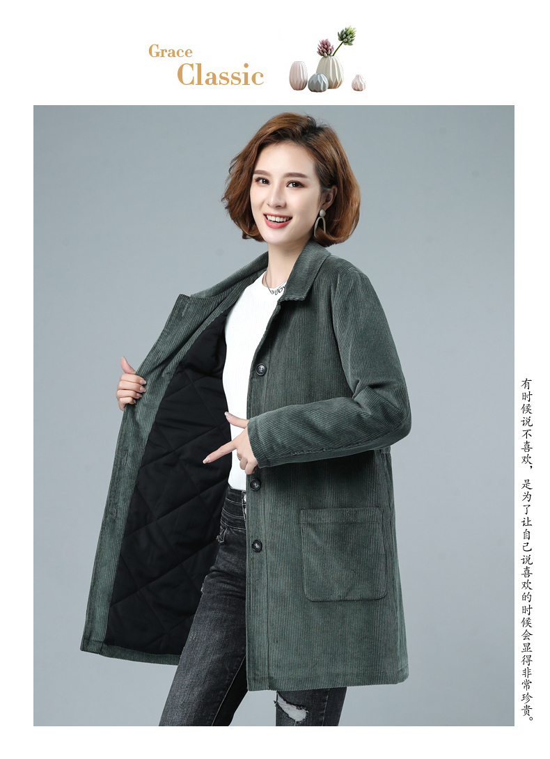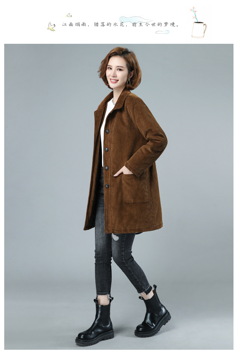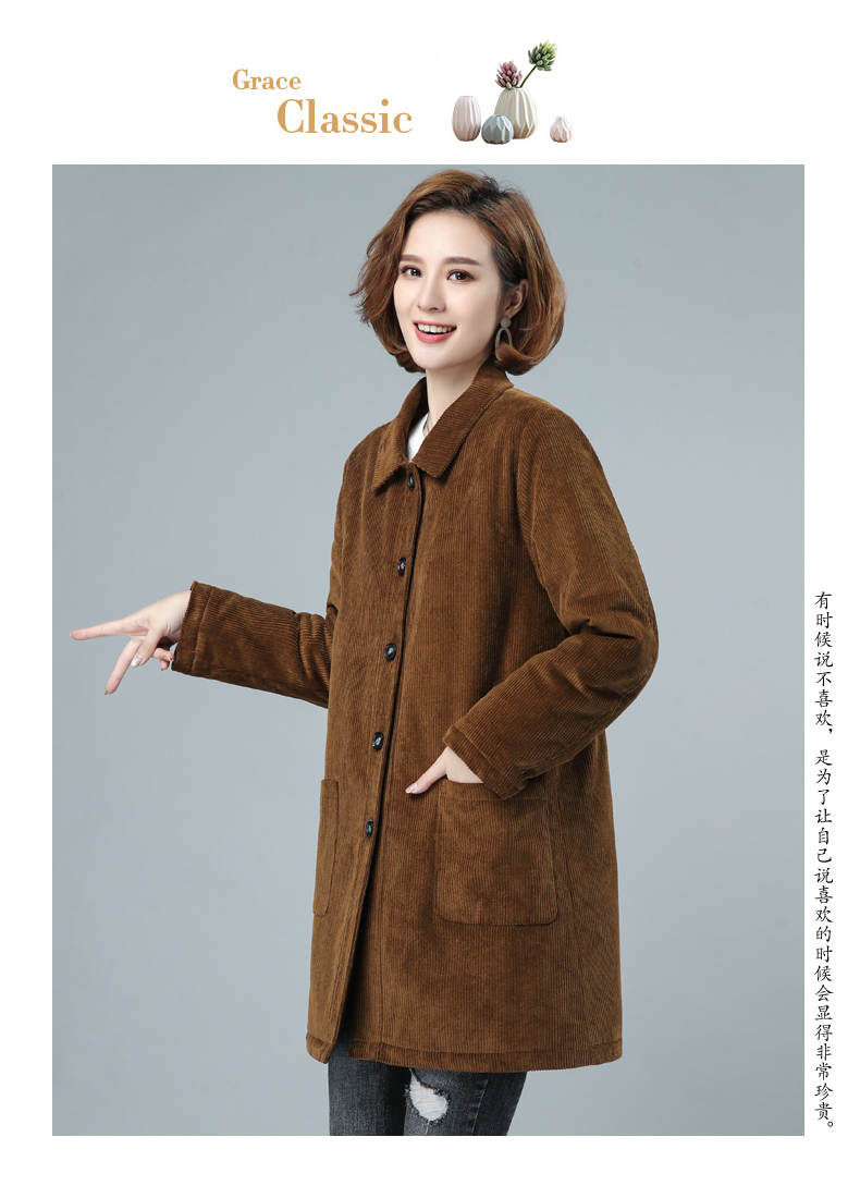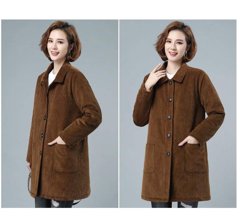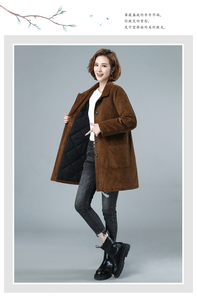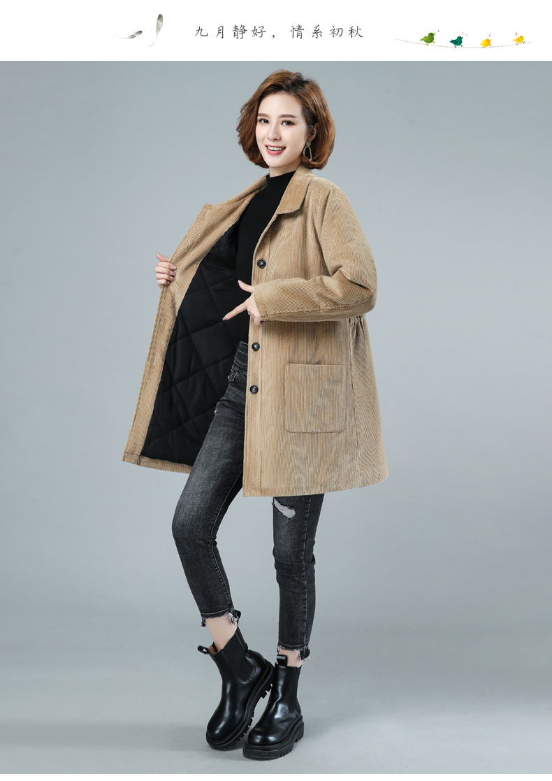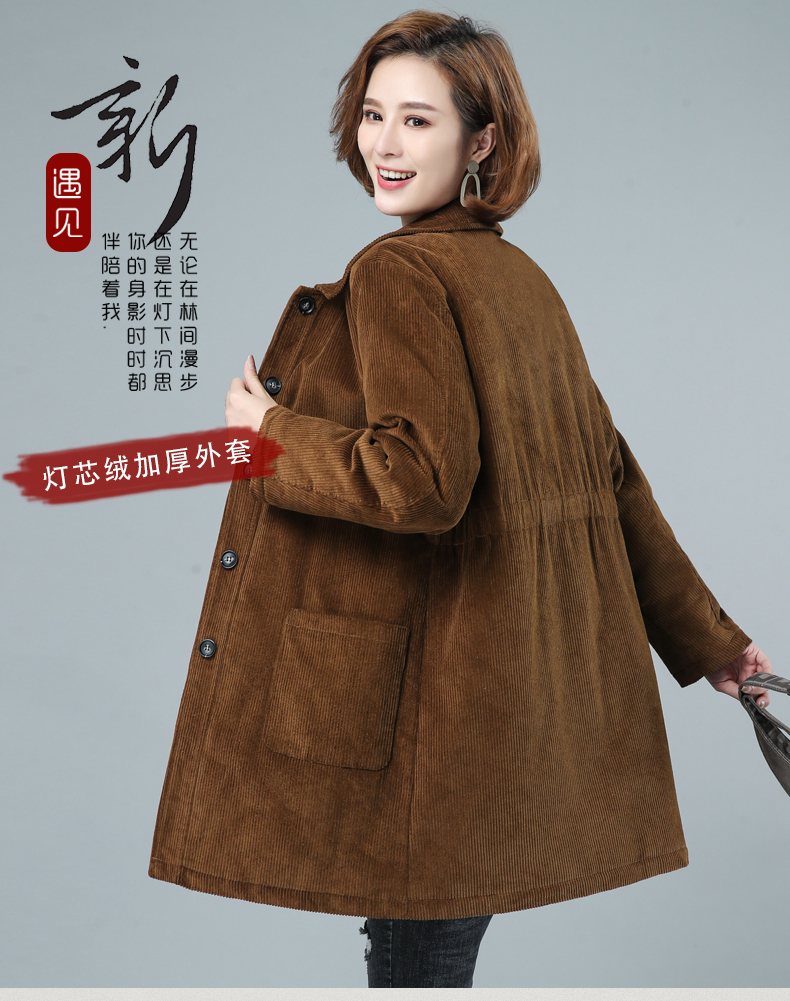 WZNH-HYK3056新款冬季加厚百搭中长款灯芯绒棉衣外套