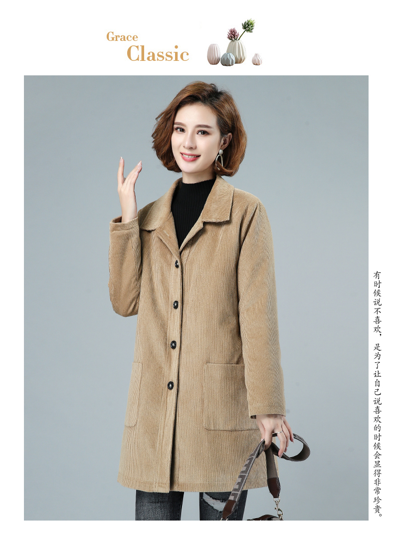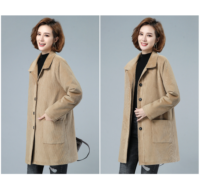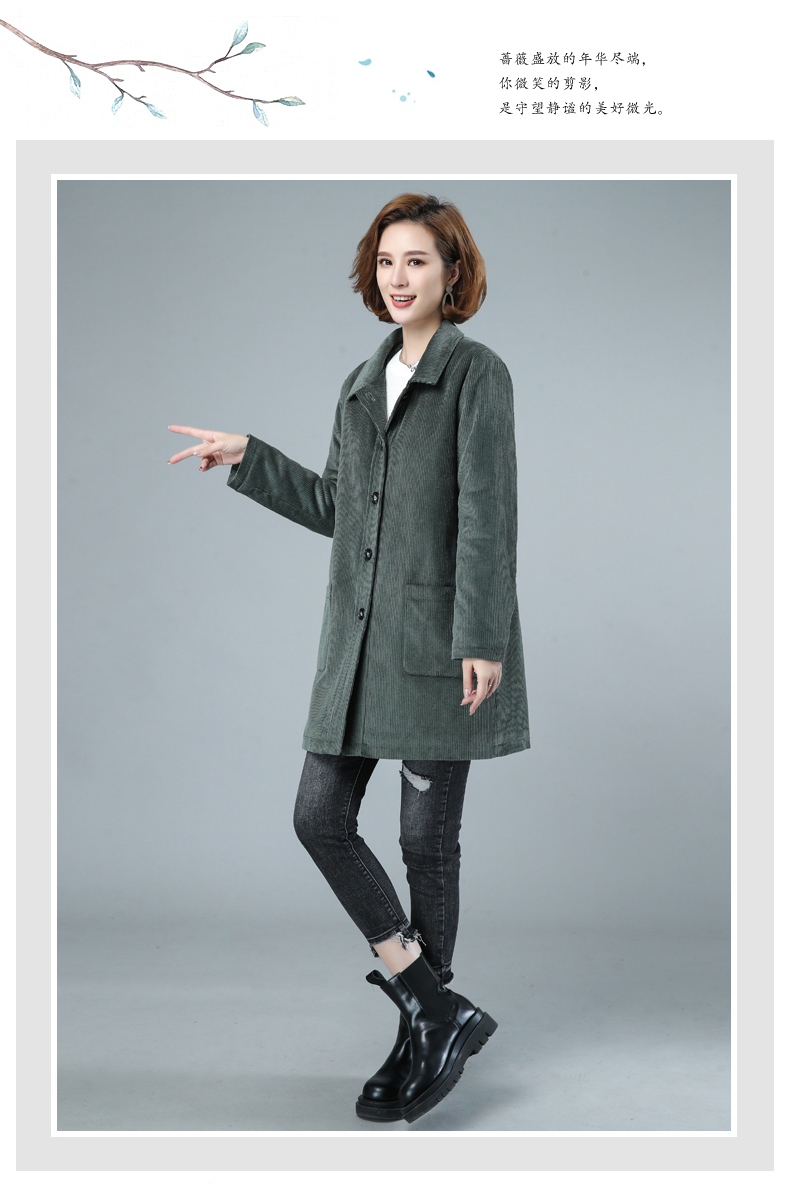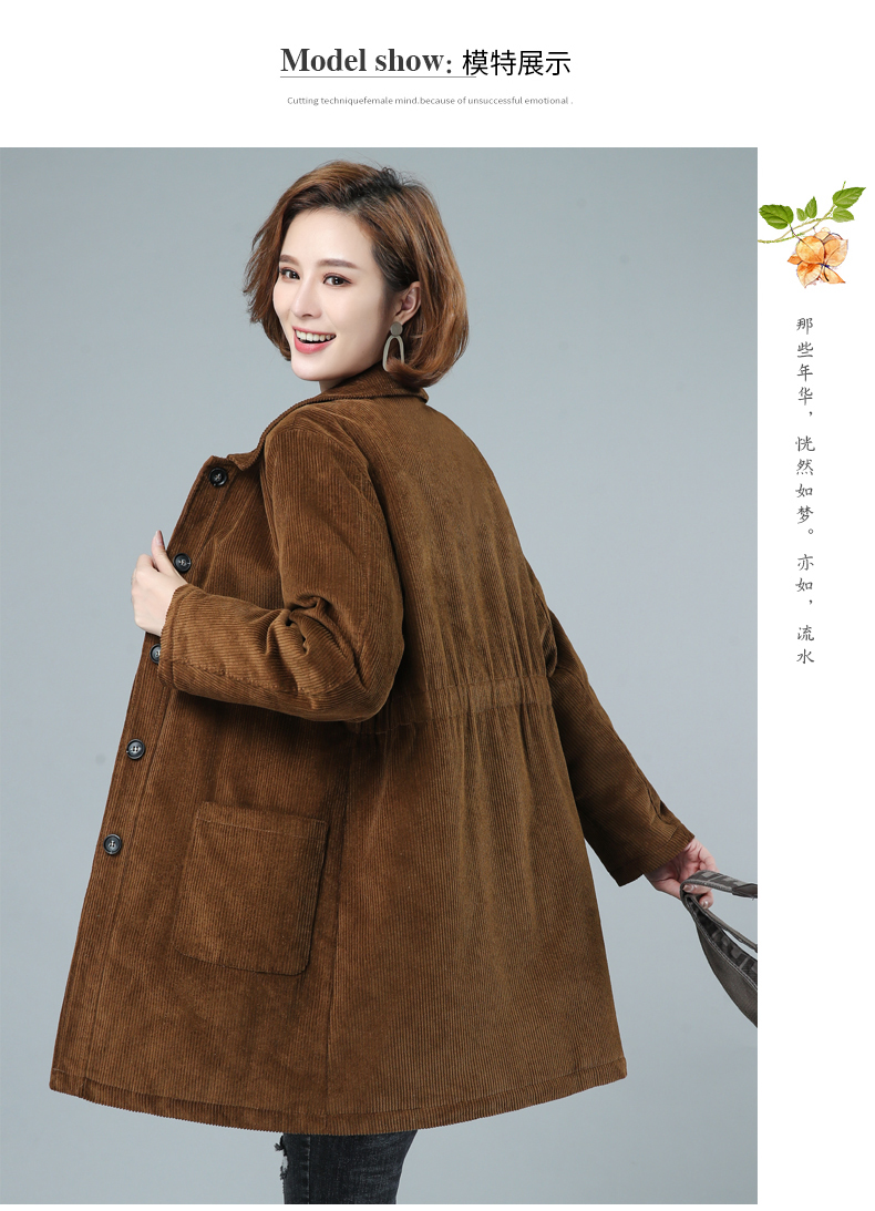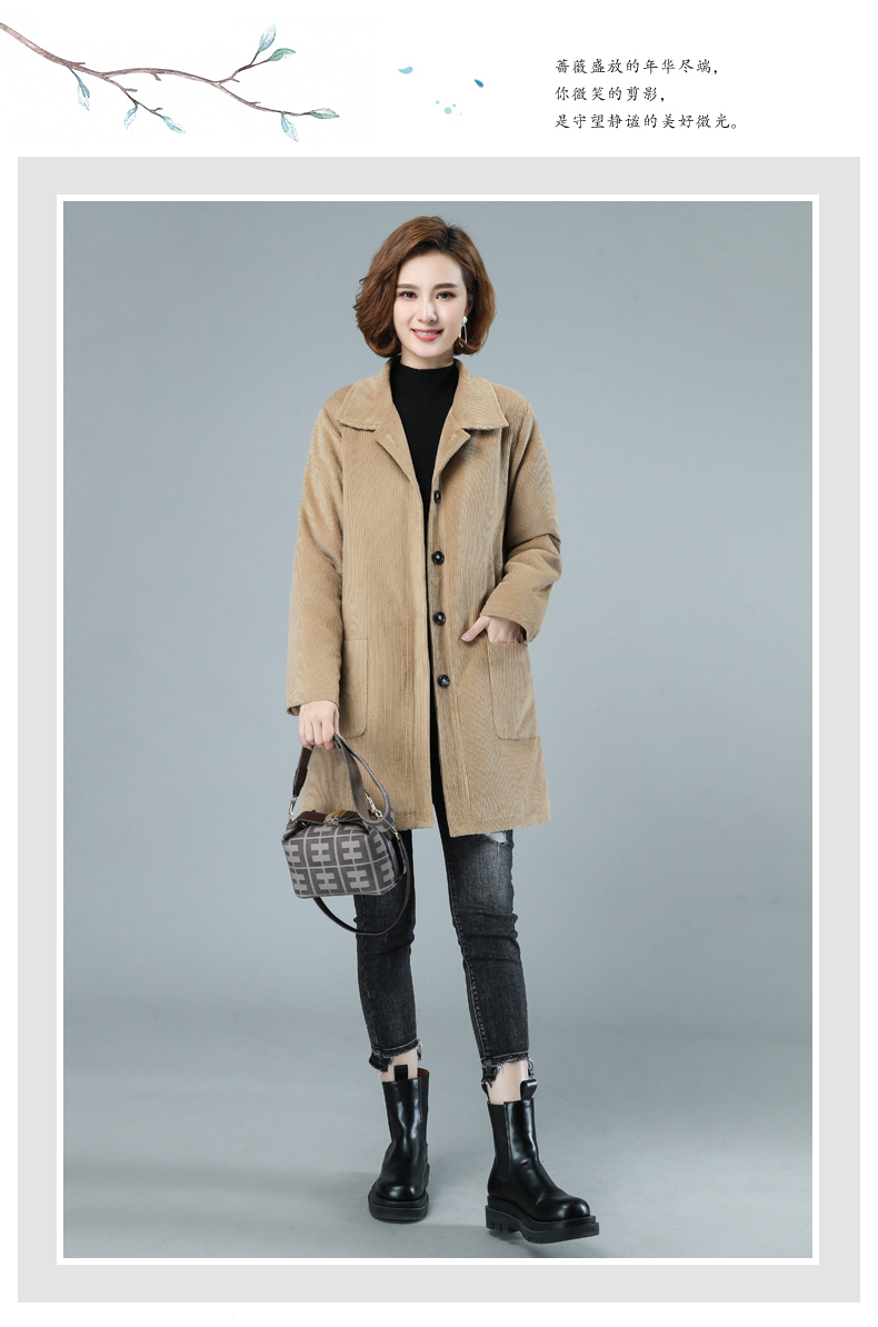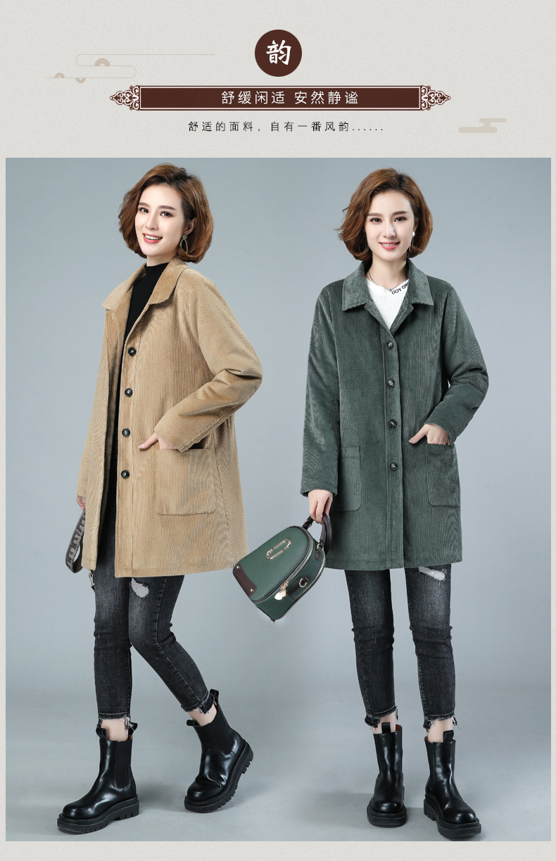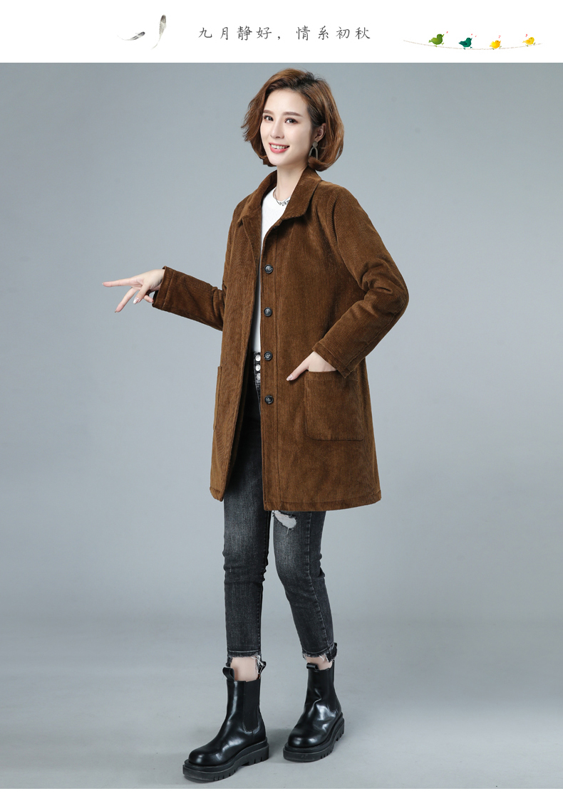 WZNH-HYK3056新款冬季加厚百搭中长款灯芯绒棉衣外套