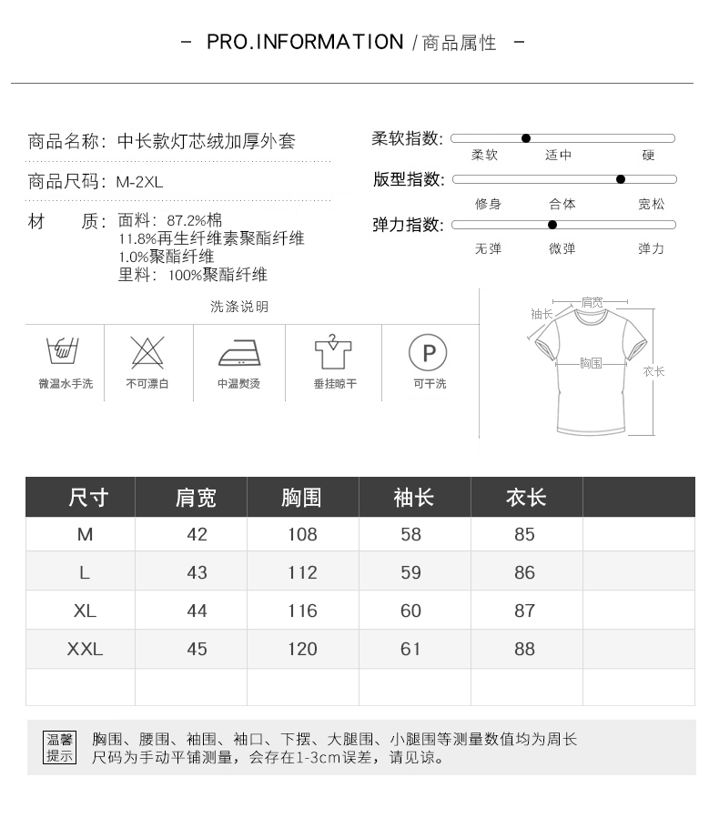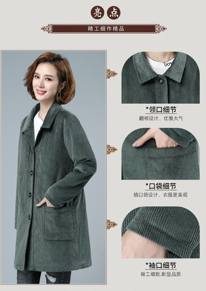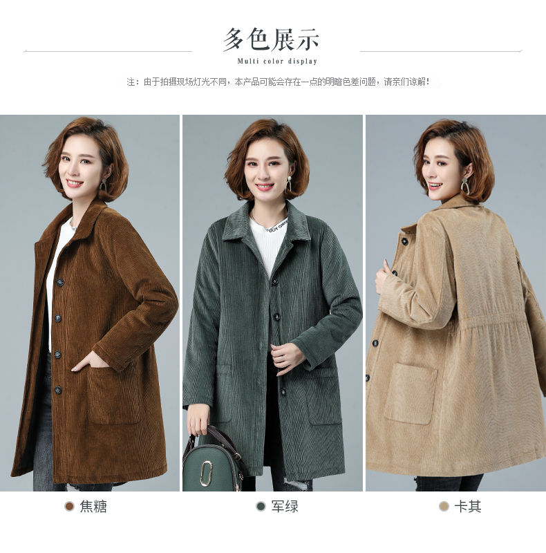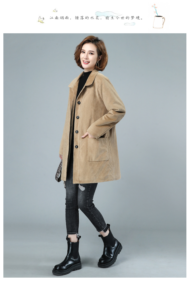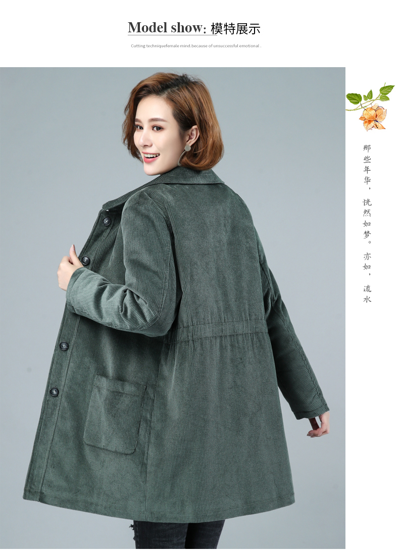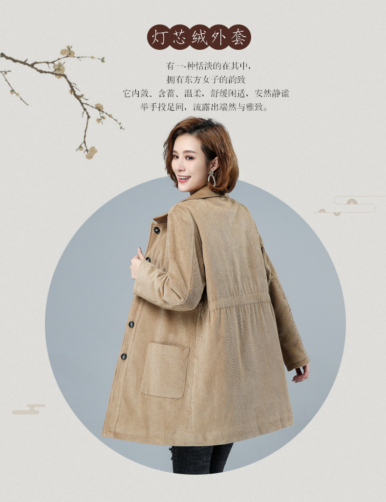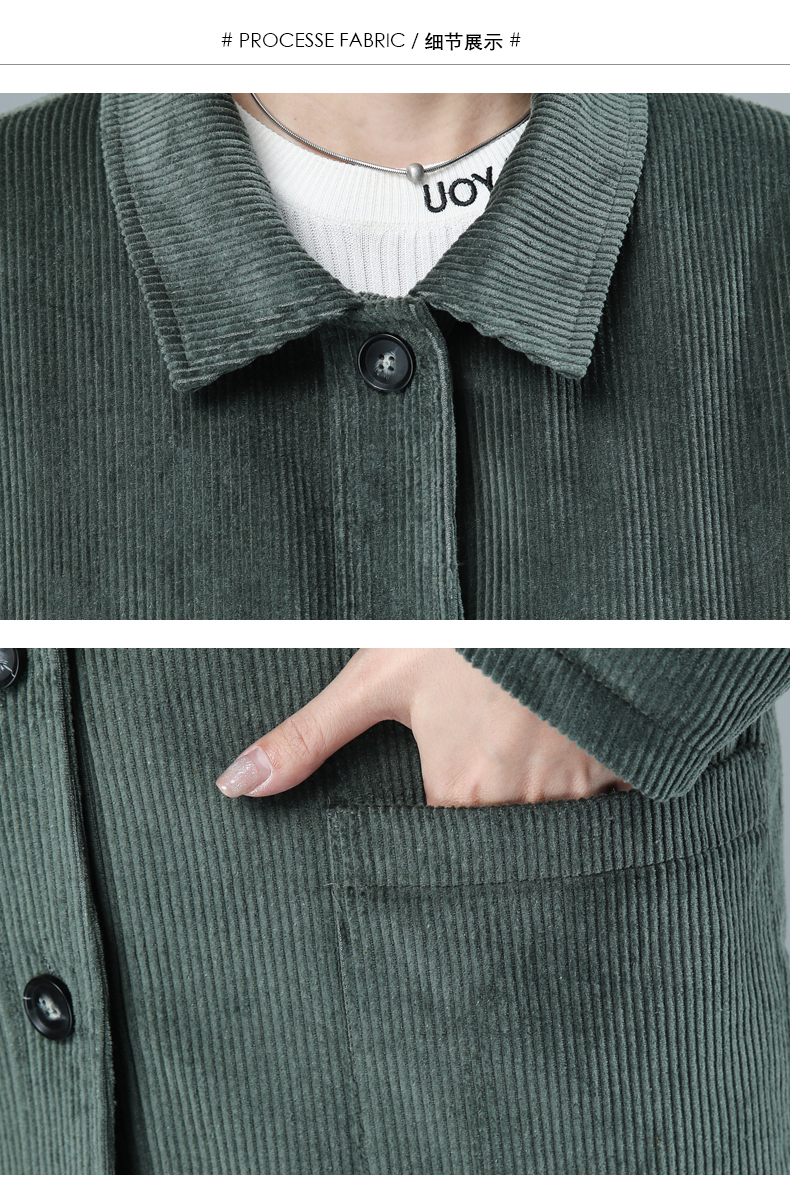 WZNH-HYK3056新款冬季加厚百搭中长款灯芯绒棉衣外套