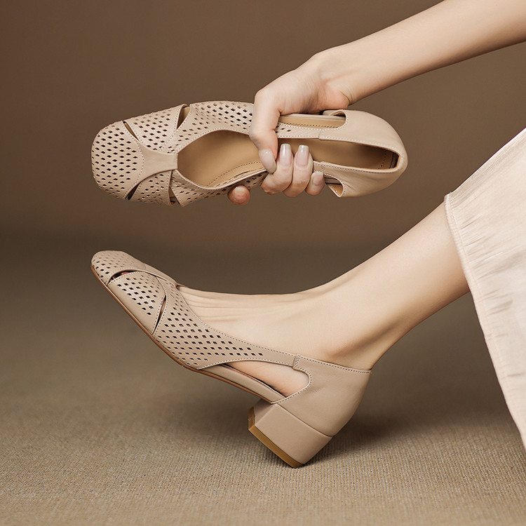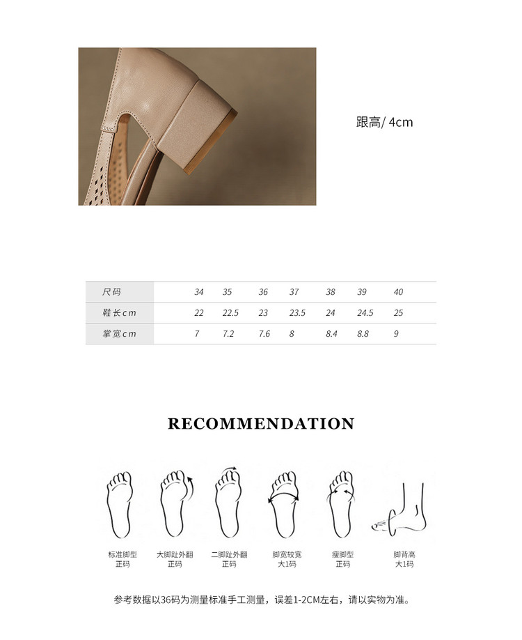【货号】AJ9970【帮面材质】头层羊皮【内里】头层猪皮 头层羊皮【鞋底】牛筋底【跟高】4cm【颜色】杏色 米白色【尺码】34-40(大小定制不退换)
