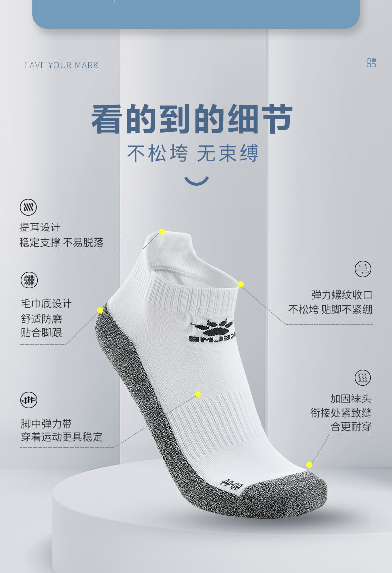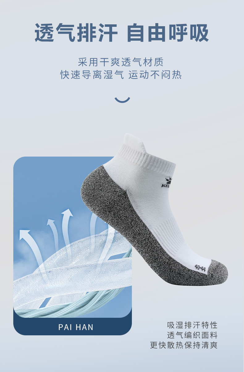 KELME卡尔美运动短袜 男女士毛巾底运动休闲船袜吸汗短袜防滑透气