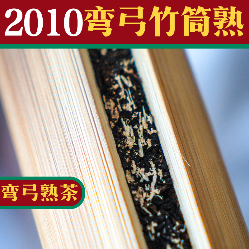 这款弯弓竹筒熟茶一方面是熟茶原料等级高,另一方面是制作工艺考究,选用一芽二、三叶的弯弓头春熟茶制成。用料特别珍贵,量很少。
