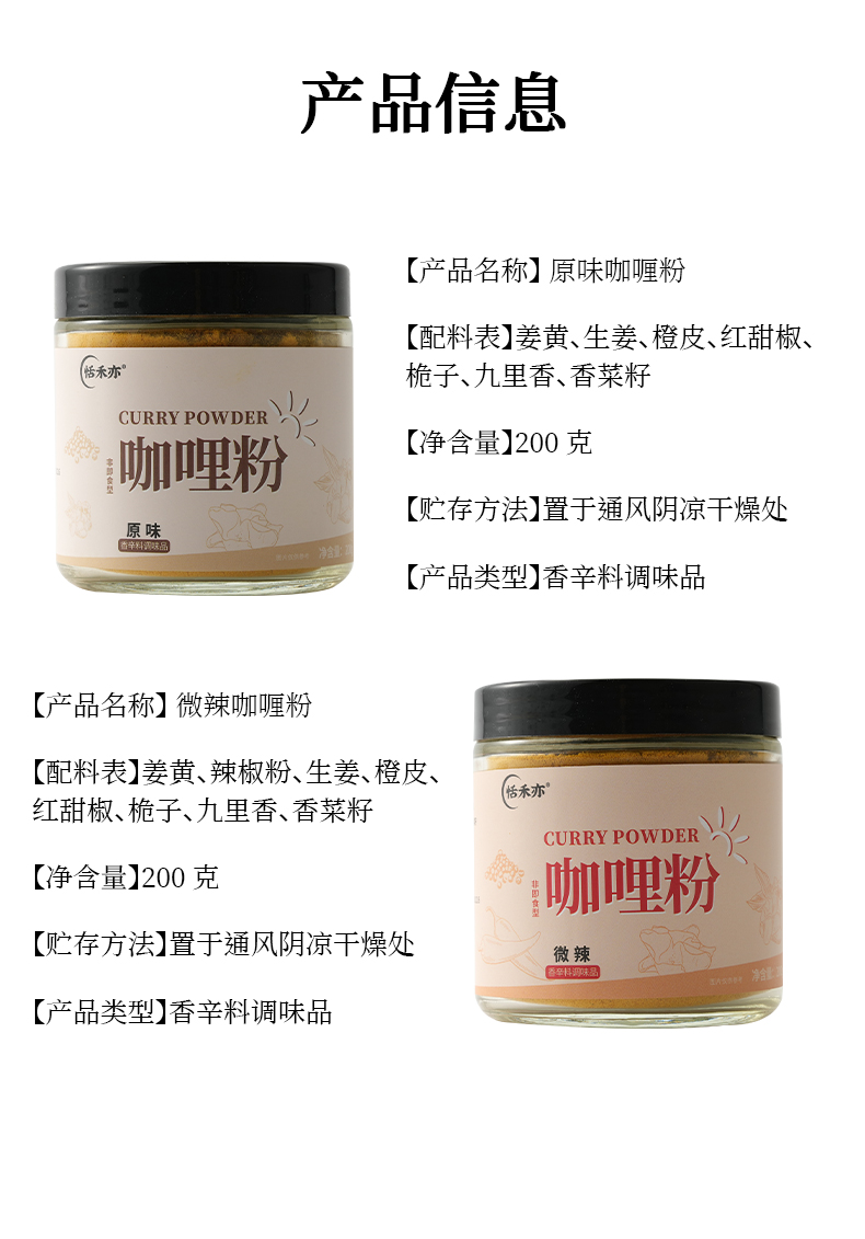 恬禾亦·咖喱粉 纯素配方 原味&辣味 200g