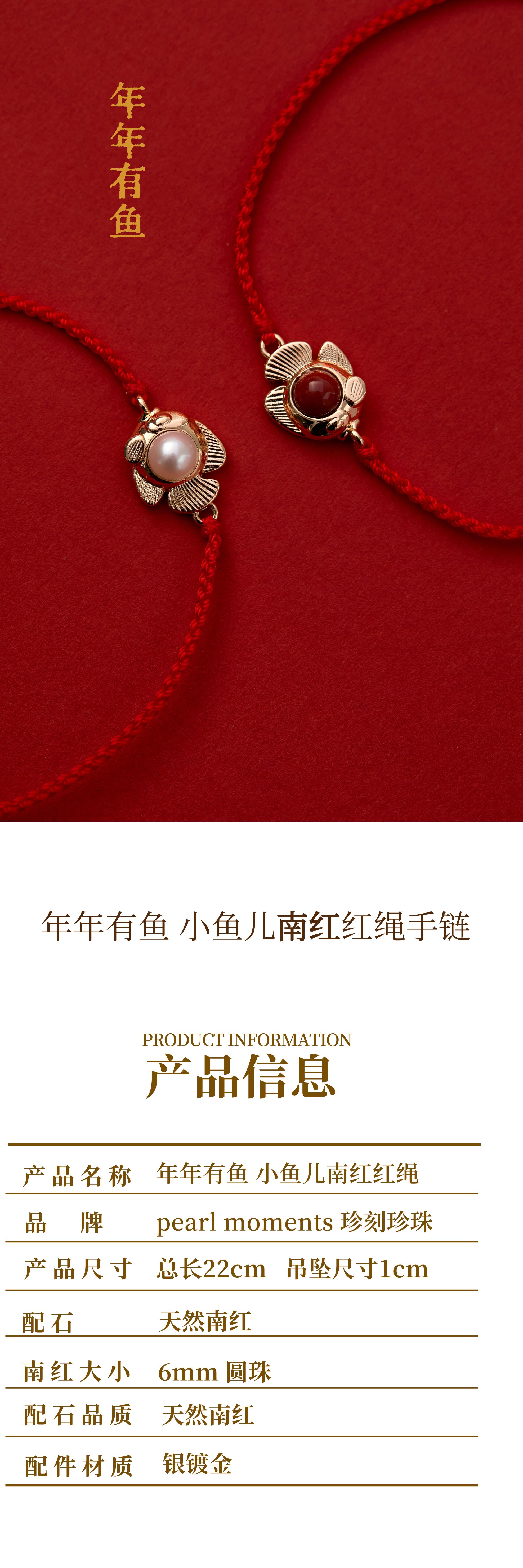 pearl moments 年年有鱼 小鱼儿(南红)红绳