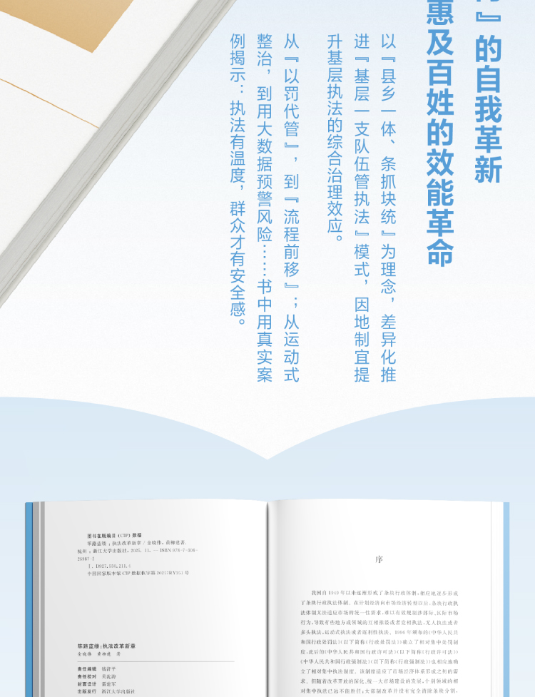 为什么政府的权力运作存在“碎片化”?为什么基层总抱怨“看得见的管不了”?为什么企业常被“多头重复交叉检查”困扰?本书聚焦浙江“大综合一体化”行政执法改革国家试点,揭示中国执法体系如何破局重生。一场“刀刃向内”的自我革新。过去,基层执法深陷“九龙治水”困局:监管执法部门各自为政,乡镇(街道)有责无权、企业疲于应付。浙江以“县乡一体、条抓块统”为理解,差异化推进“基层一支队伍管执法”模式,因地制宜提升基层执法的综合治理效能。一场惠及百姓的效能革命。从罚没指标挂钩考核的乱象,到“教科书级”柔性执法;从运动式整治,到用大数据预警风险——书中用真实案例揭示:执法有温度,群众才有安全感。