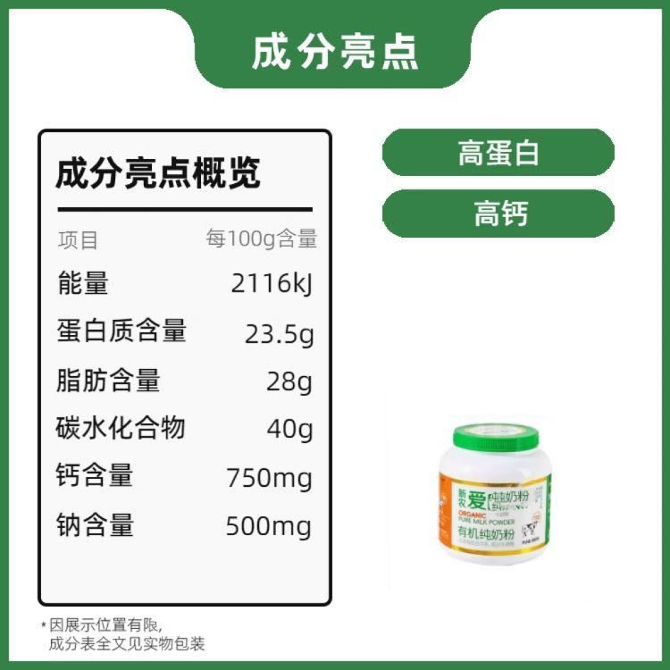 新农有机纯奶粉800g/罐爱自然更健康优质有机生牛乳 新疆奶粉特产