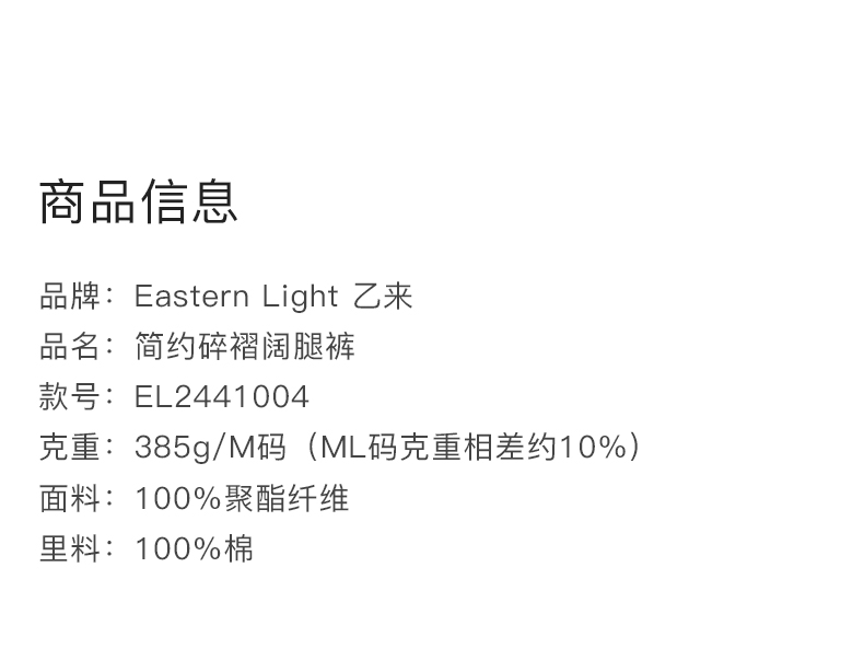 Eastern Light/乙来【韩国皱丝麻】夏季凉感阔腿裤显瘦垂感裤子女 新款