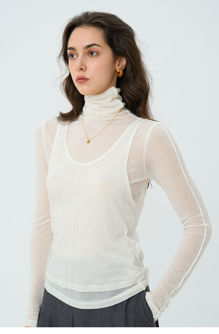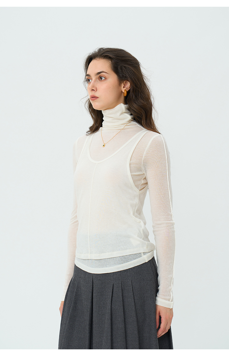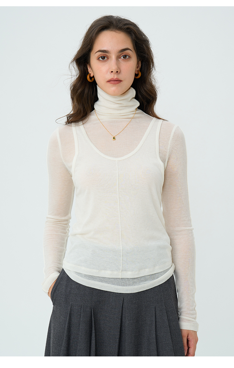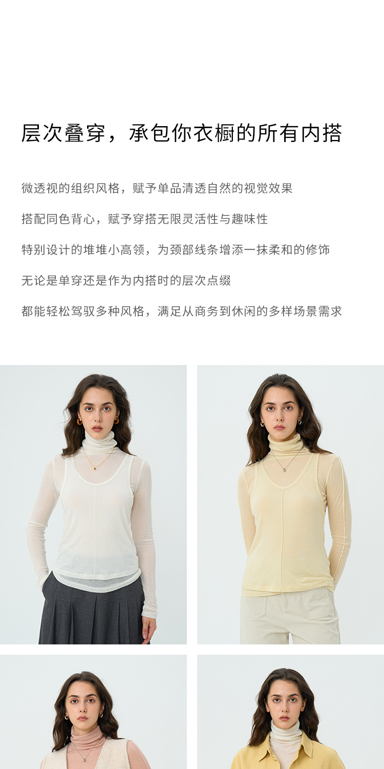 Heydress天丝羊毛高领针织衫女秋季堆堆领叠穿软糯舒适百搭上衣