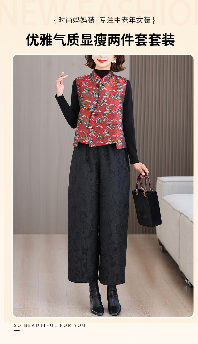 AHM blx9722新中式国风提花斜襟盘扣马甲复古阔腿裤两件套 商品图0