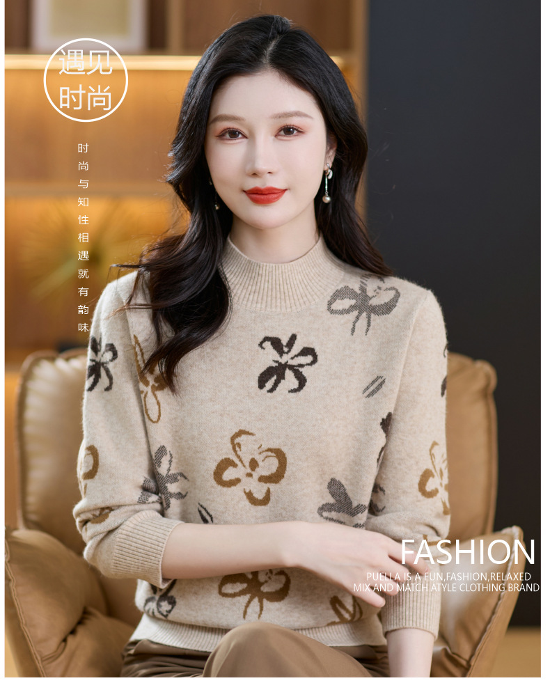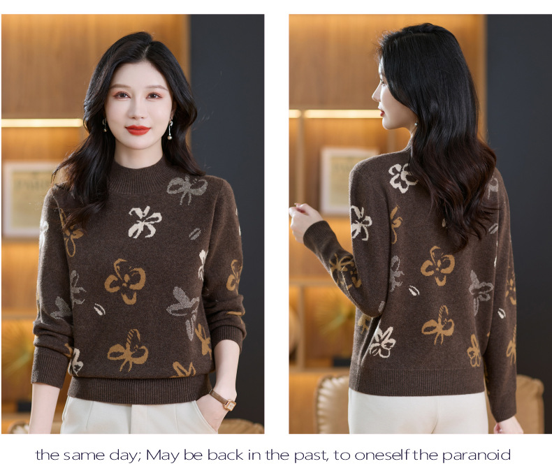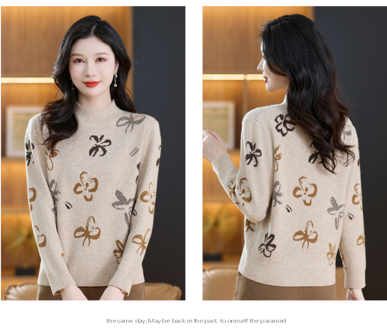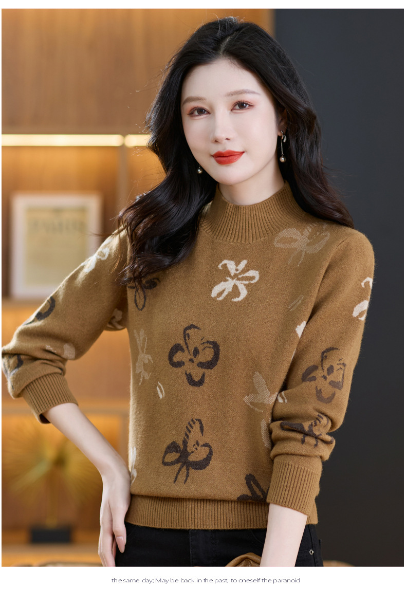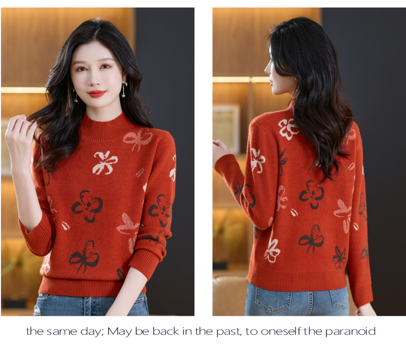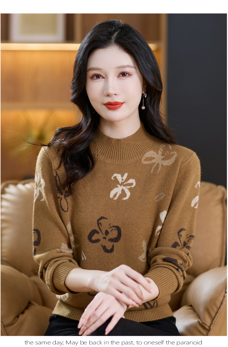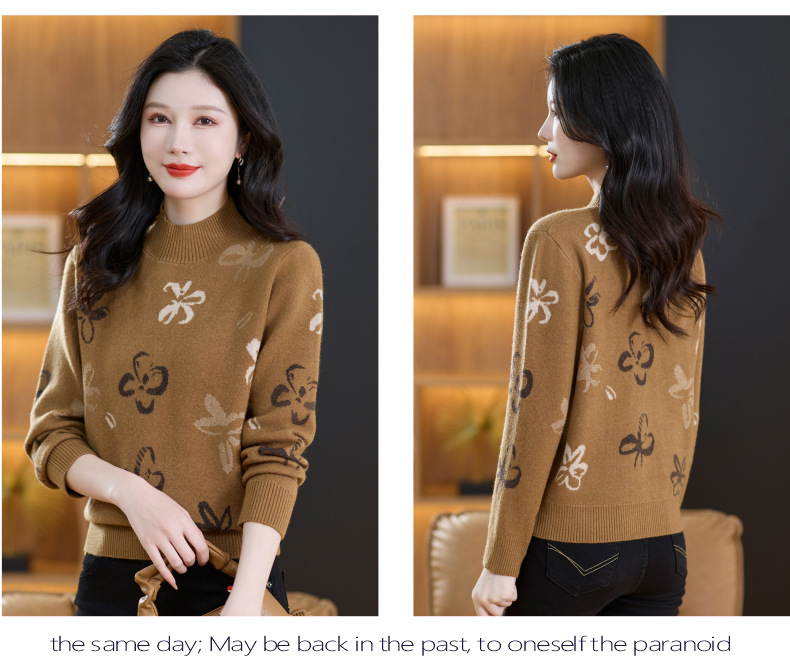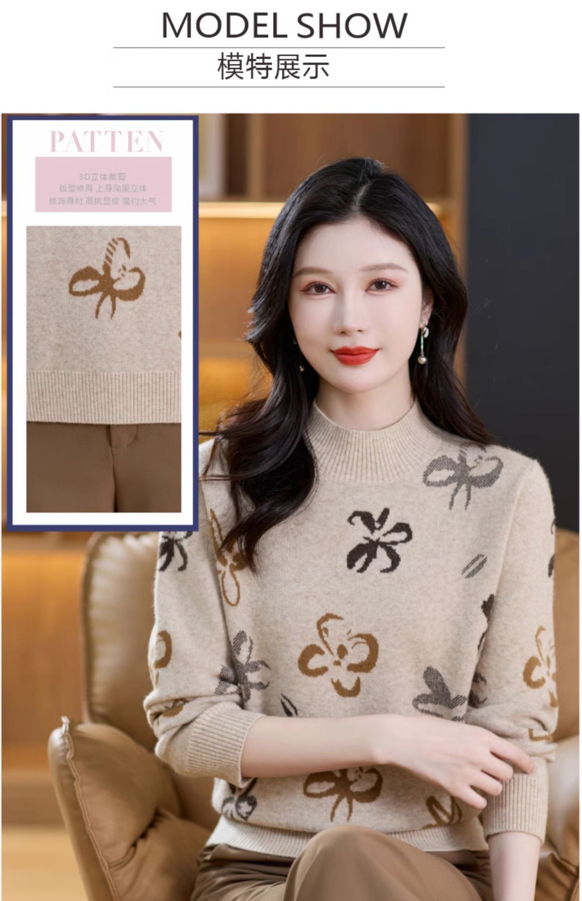 CC-89-C886秋冬季洋气质提花羊毛毛衣女士2024新款宽松半高领打底衫针织上衣