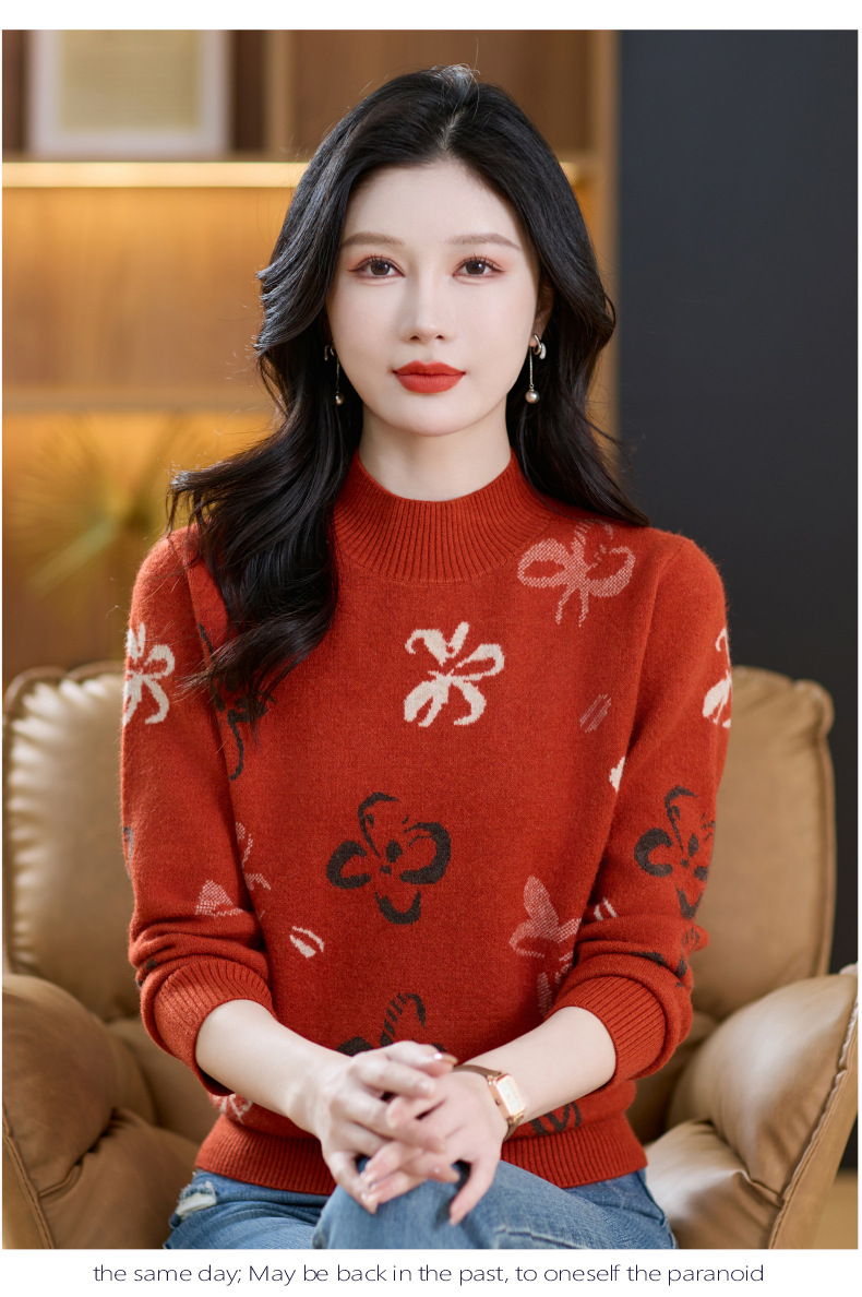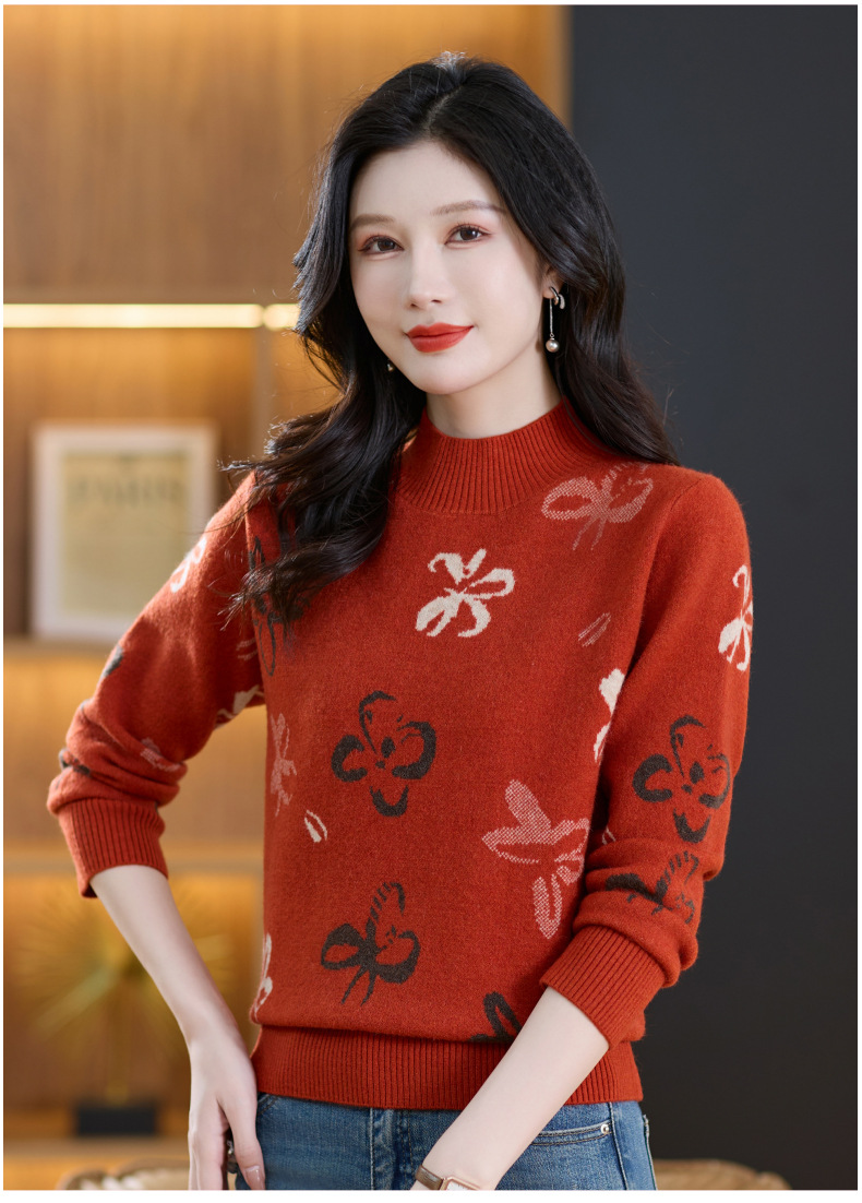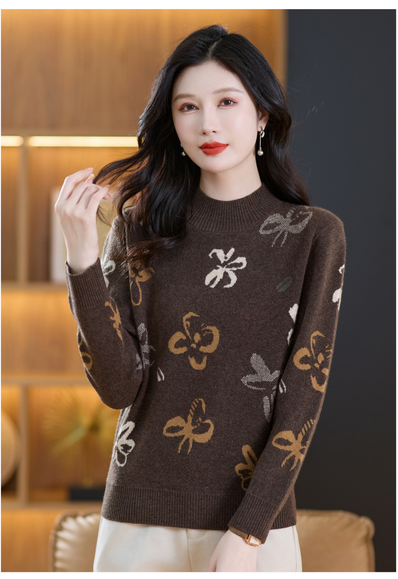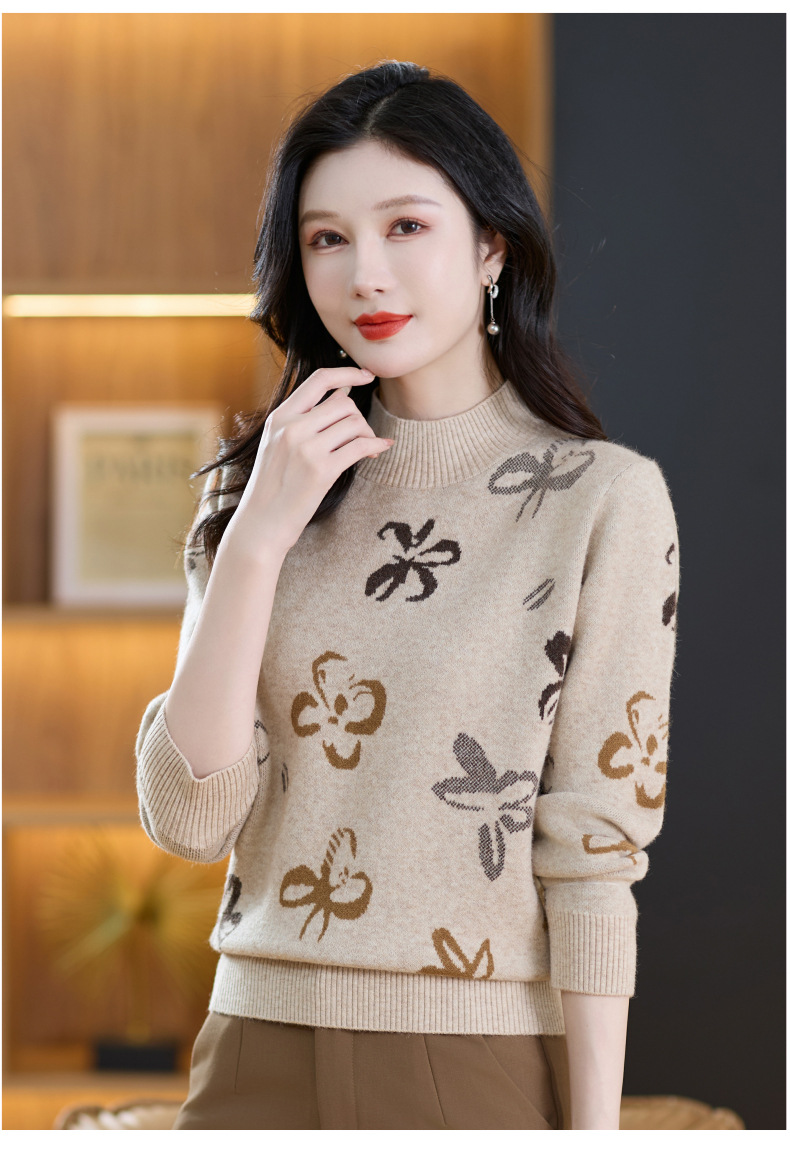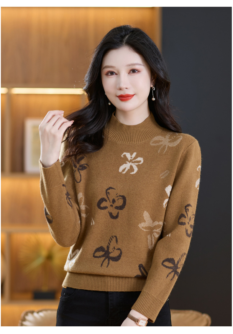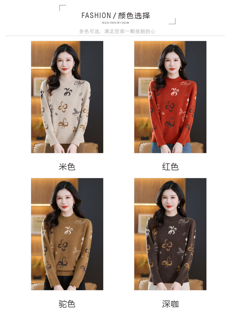CC-89-C886秋冬季洋气质提花羊毛毛衣女士2024新款宽松半高领打底衫针织上衣