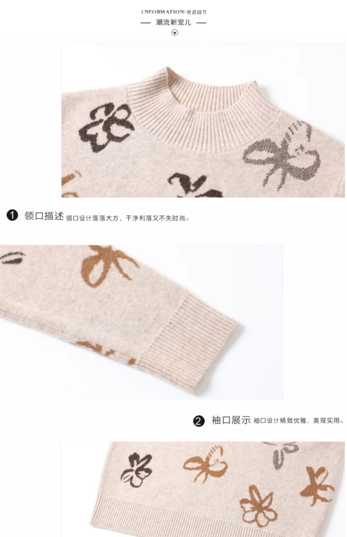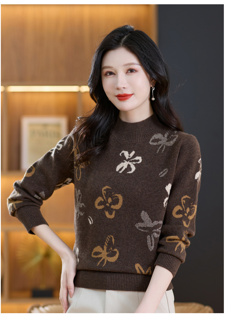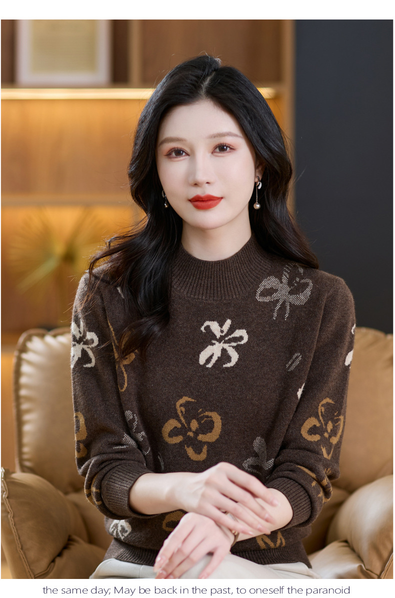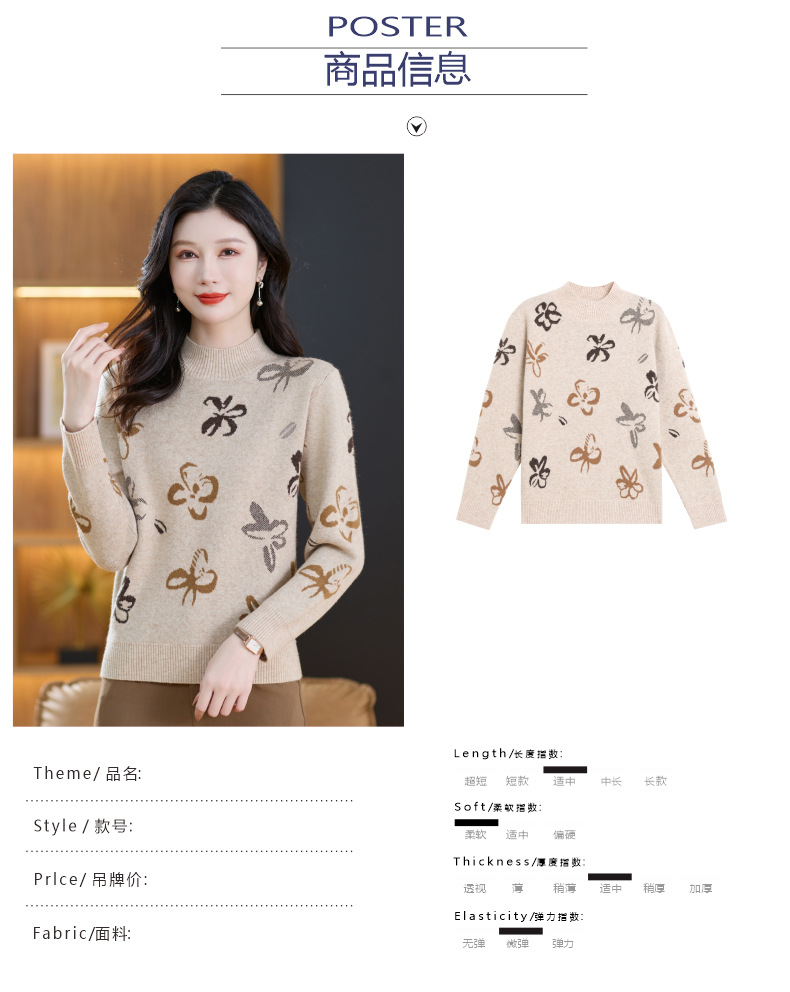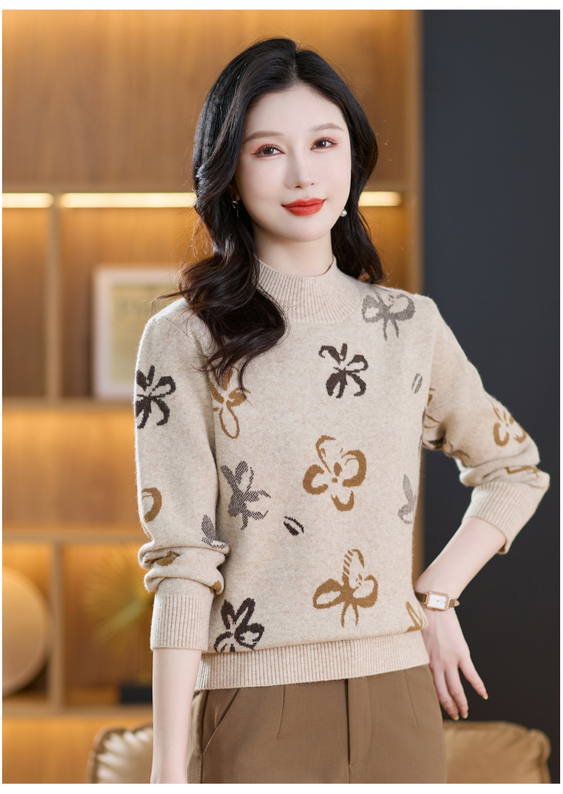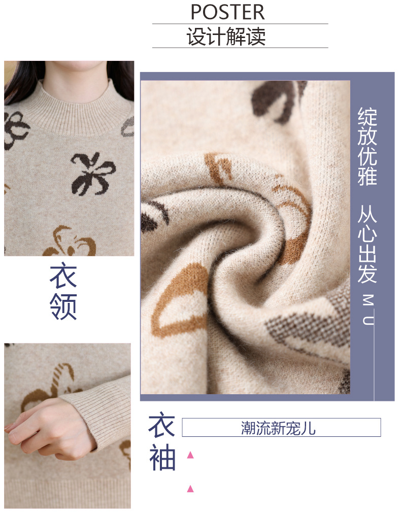 CC-89-C886秋冬季洋气质提花羊毛毛衣女士2024新款宽松半高领打底衫针织上衣