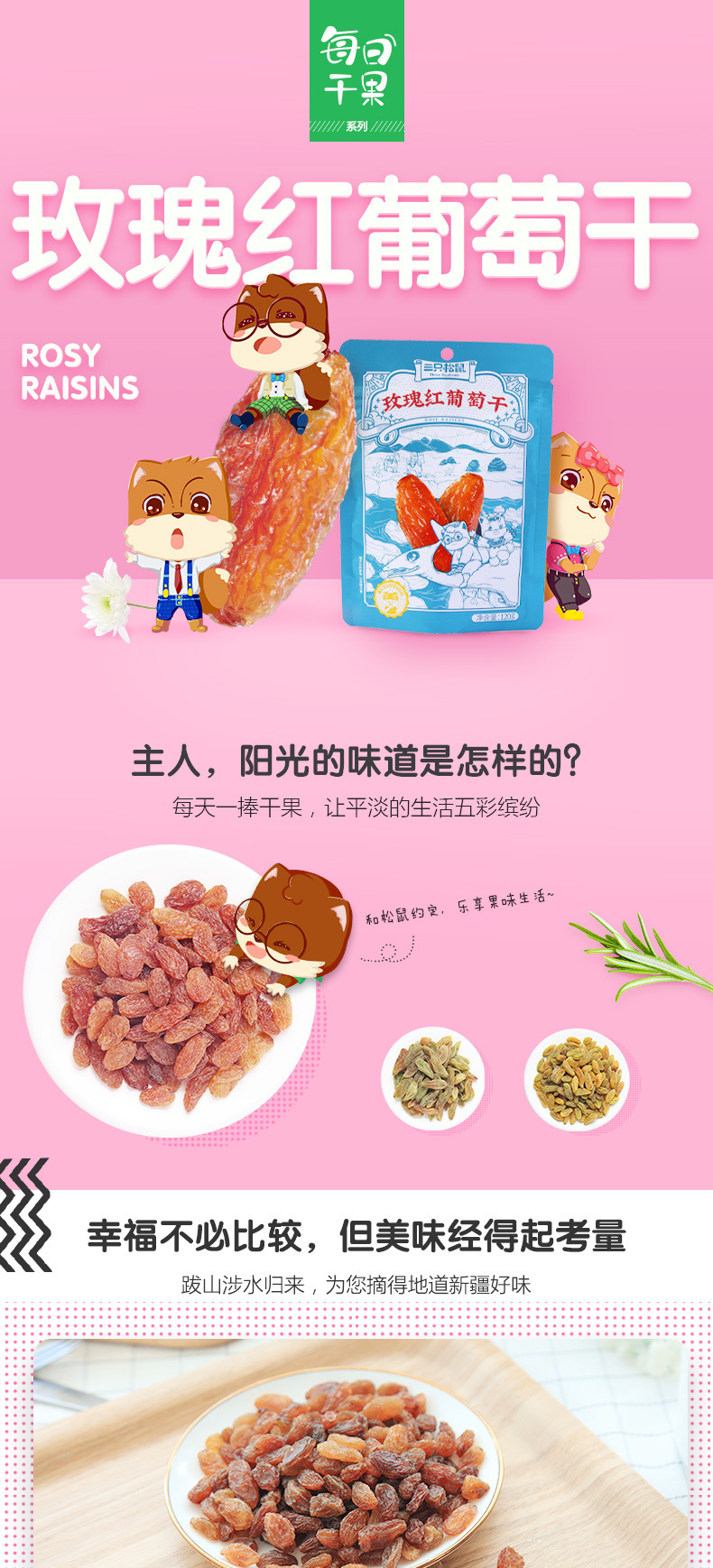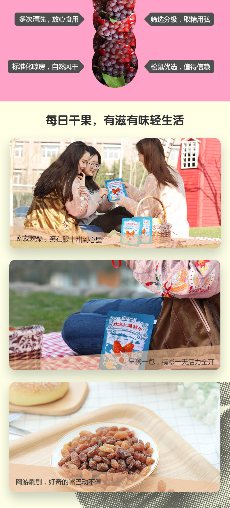 【三只松鼠玫瑰红葡萄干120g】六袋装!休闲零食食品特产 果干新疆吐鲁番葡萄干 每天一捧干果 让平淡的生活五彩缤纷-QQ