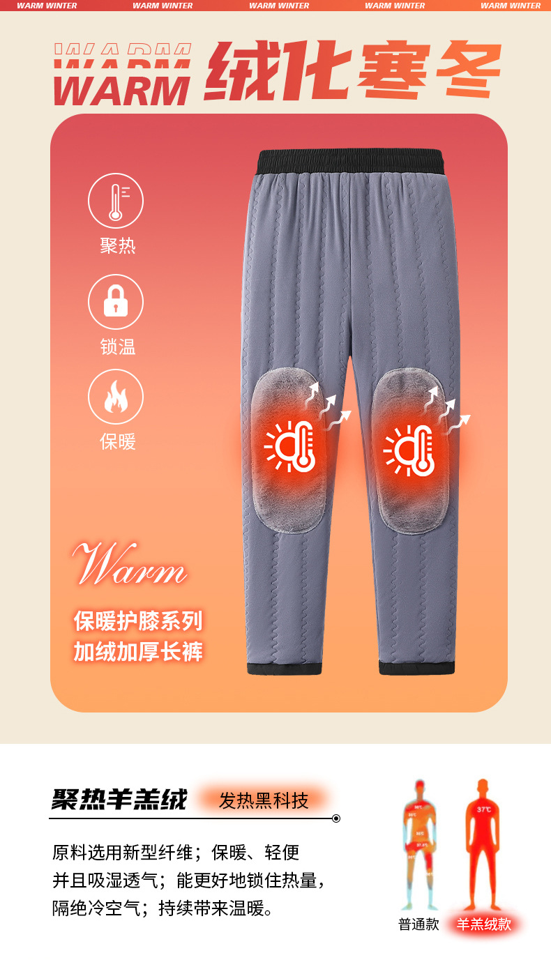 红览 【护膝】男士棉裤防风防寒加绒加厚外穿裤子 7908