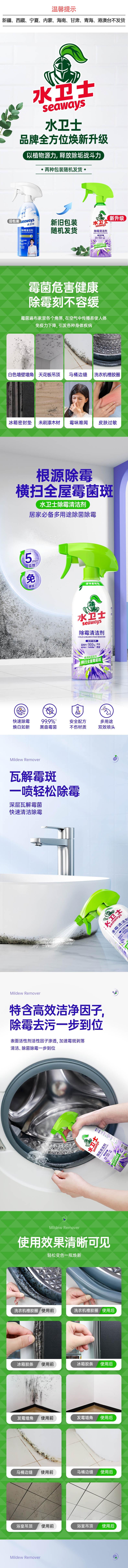 水卫士 除霉清洁剂480g/瓶 ZWJCMJ01PQ01