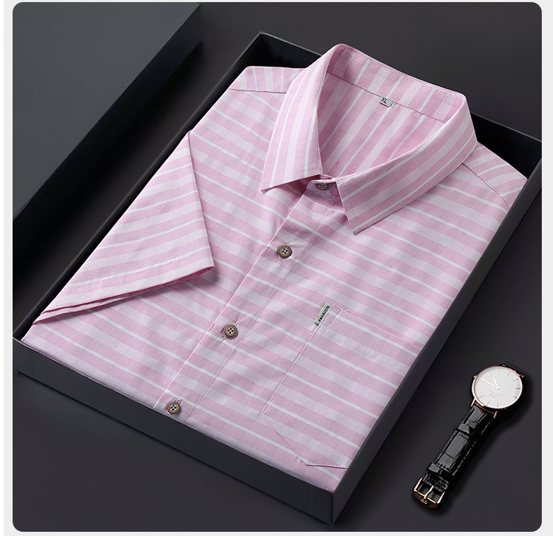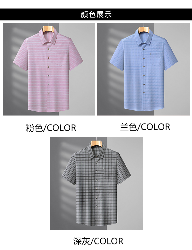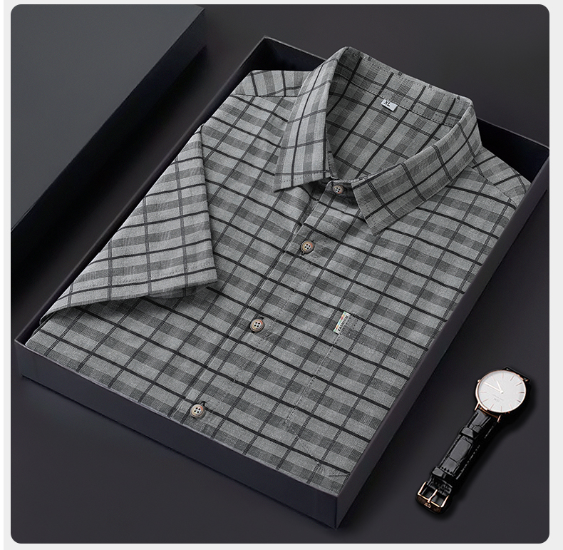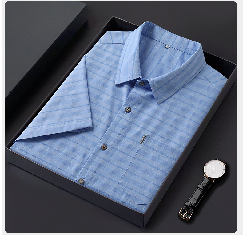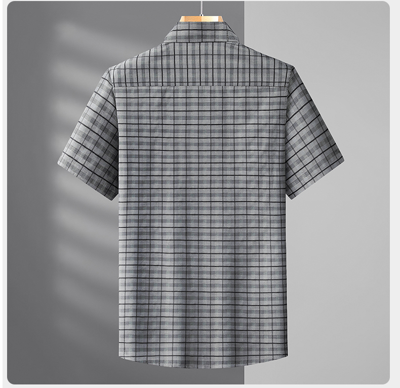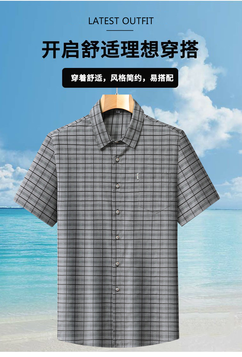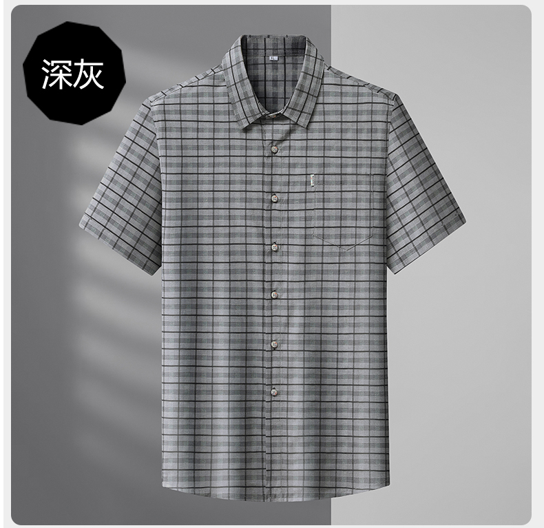 【DB】大依优型大码夏装格纹短袖衬衫新款宽松免烫透气大码透气上衣半袖男士衬衣