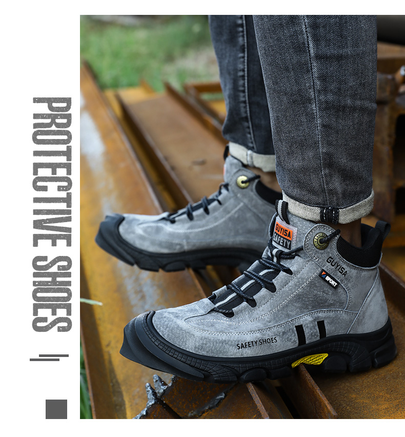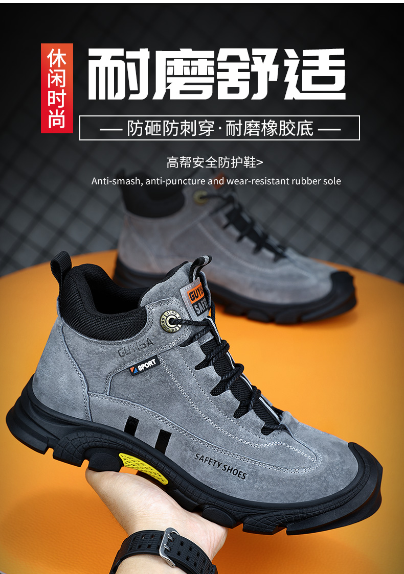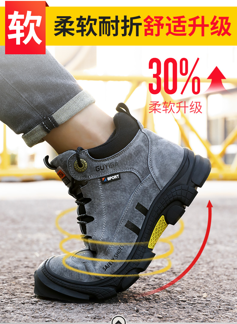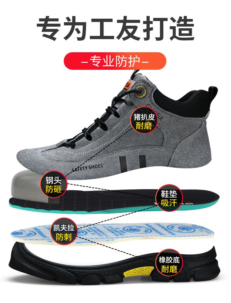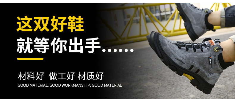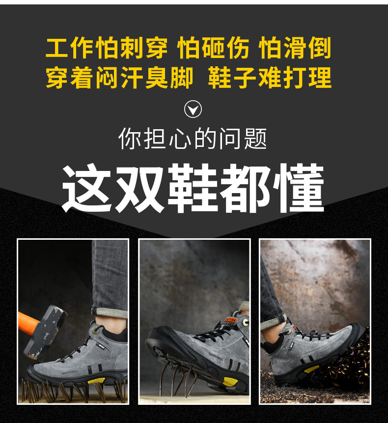 新款劳保鞋男防砸防刺防烫猪扒皮钢包头橡胶底安全鞋工作鞋
