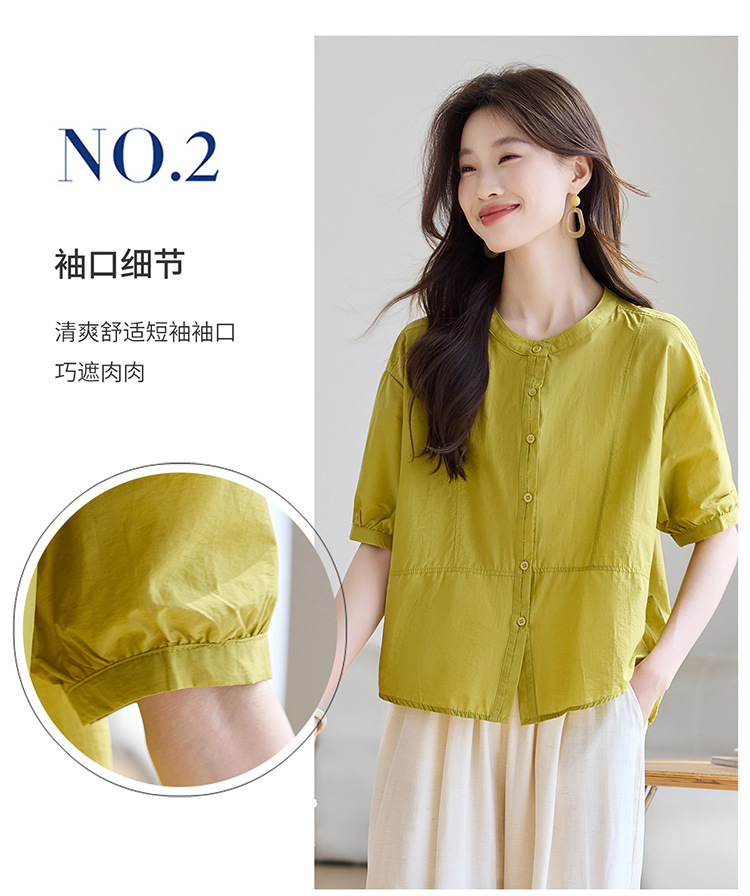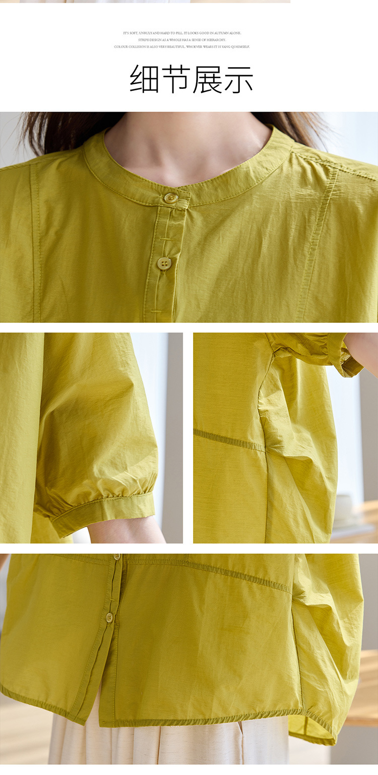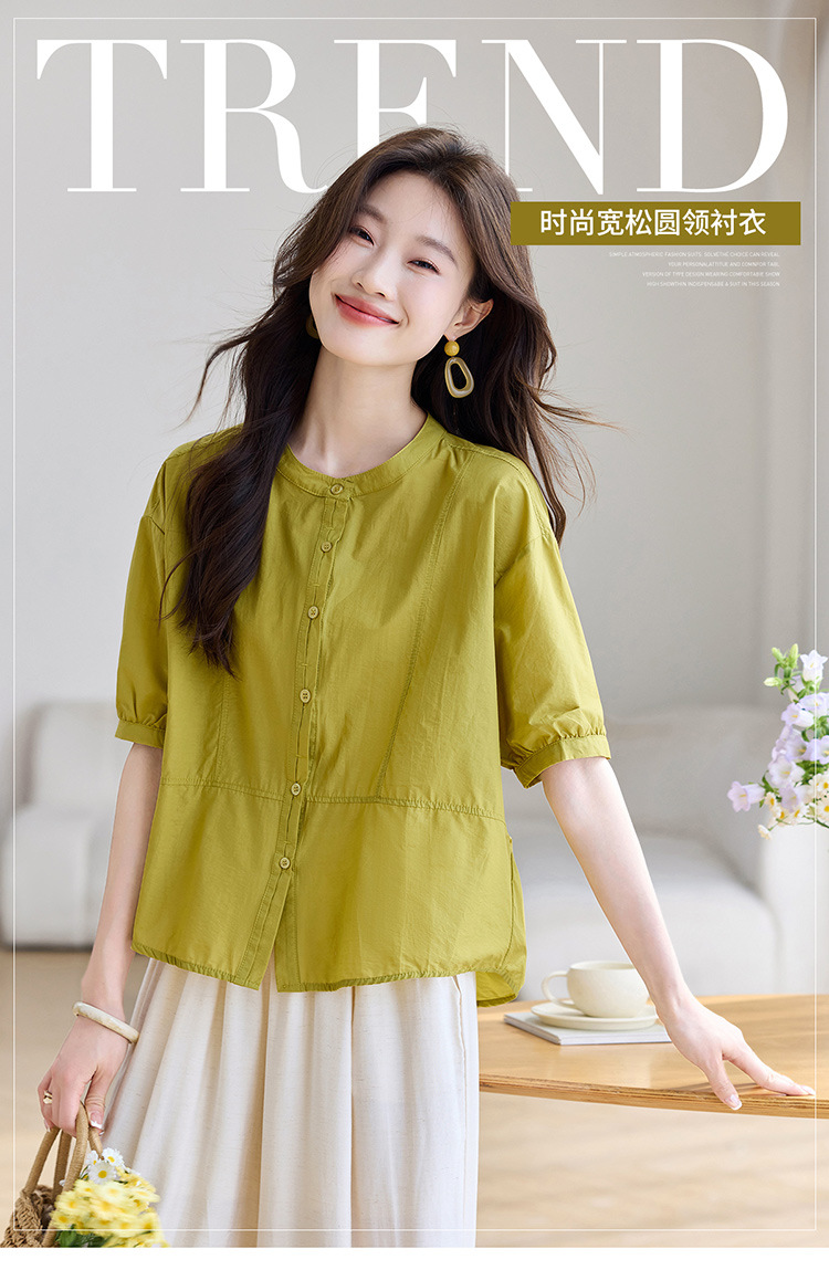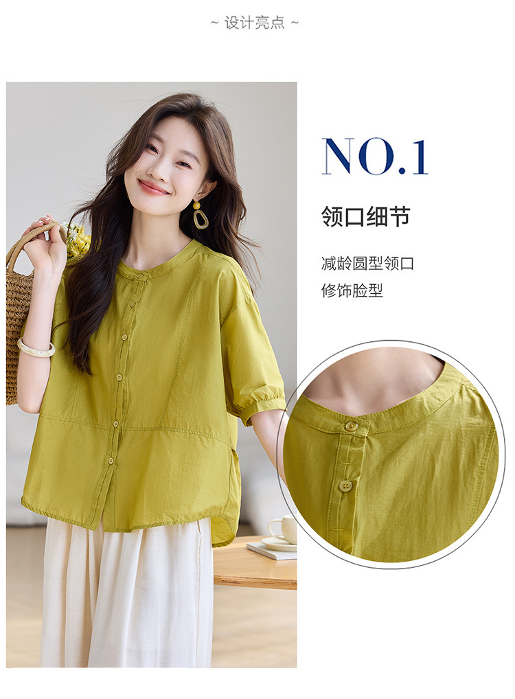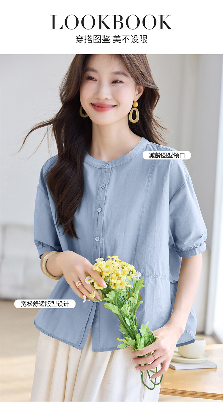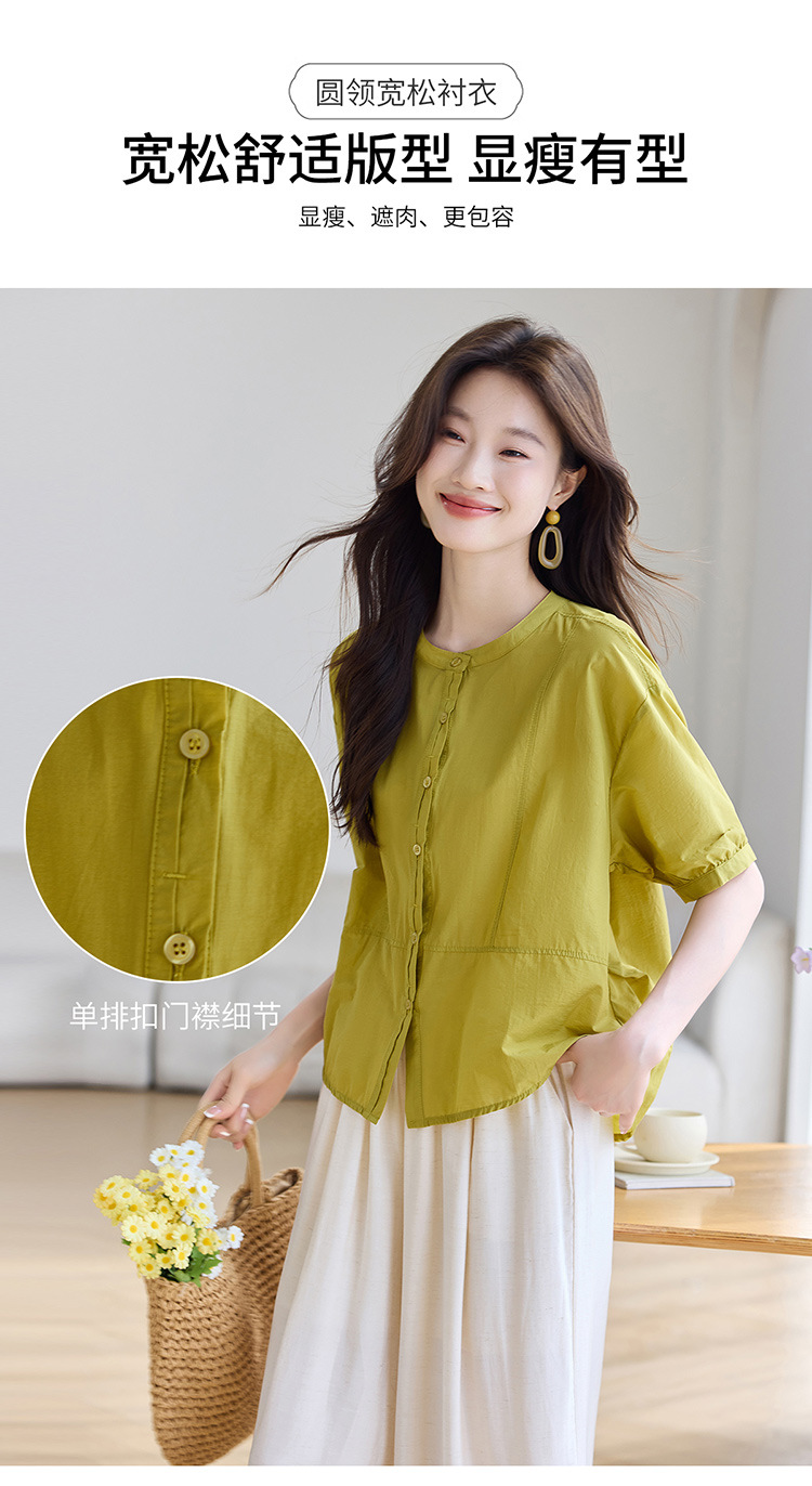 丁摩 休闲短袖衬衫女夏季新款时尚减龄宽松休闲圆领上衣5ZF-8018