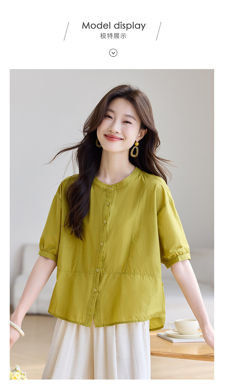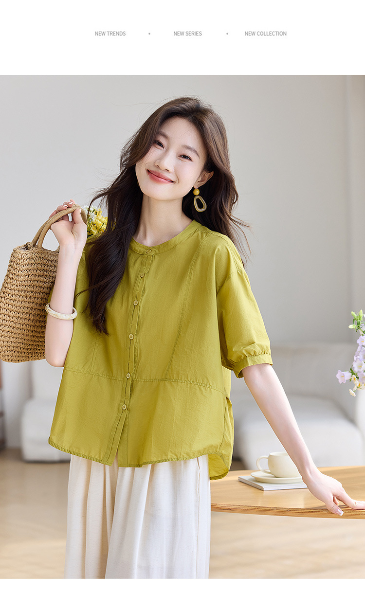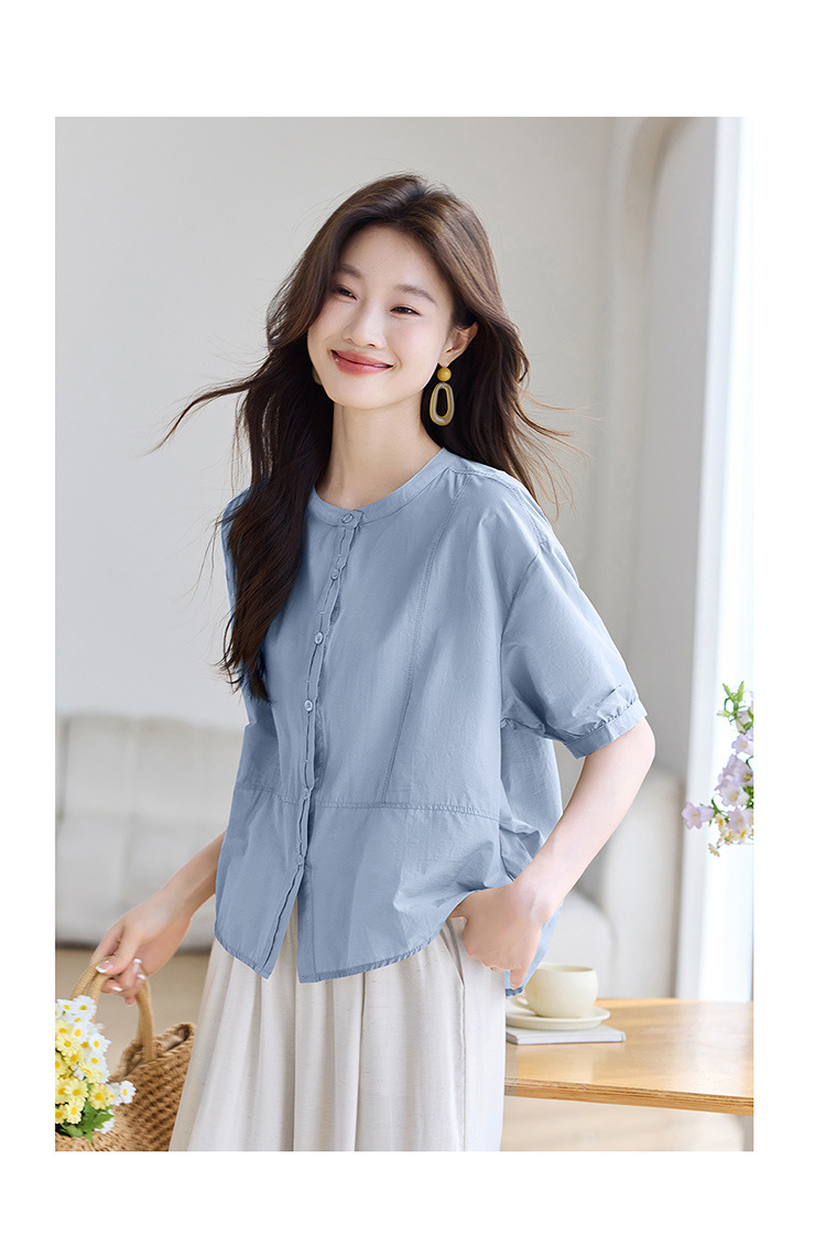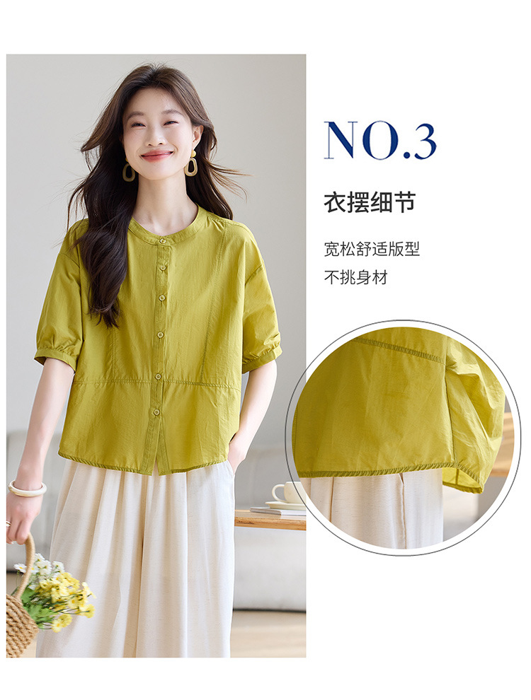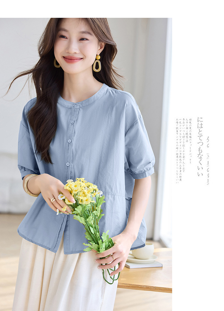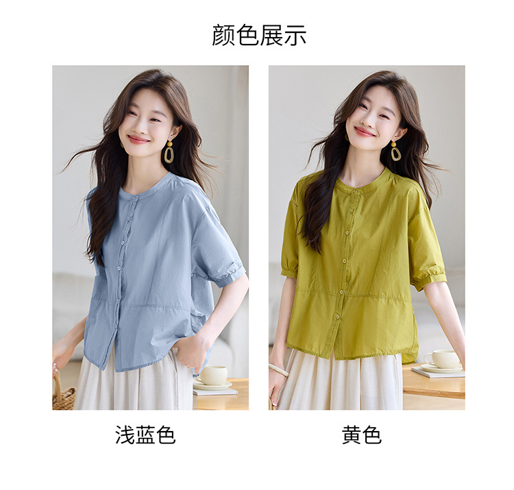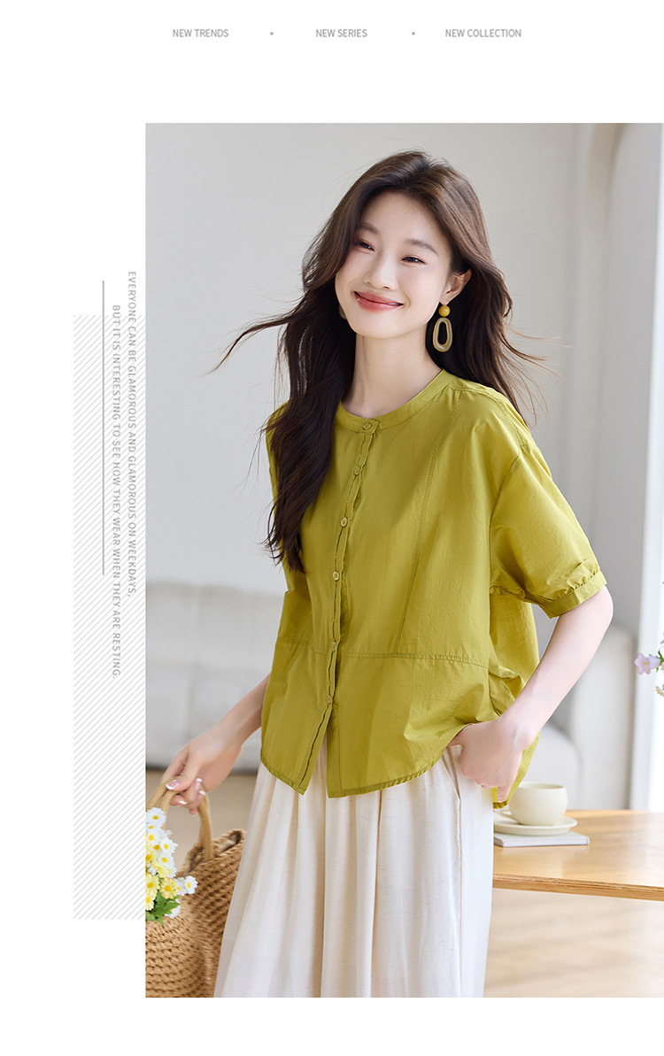 丁摩 休闲短袖衬衫女夏季新款时尚减龄宽松休闲圆领上衣5ZF-8018