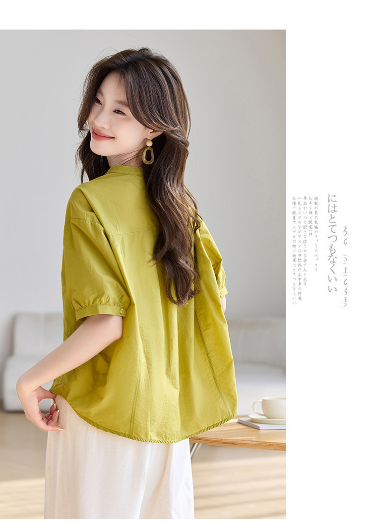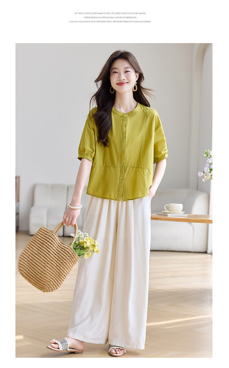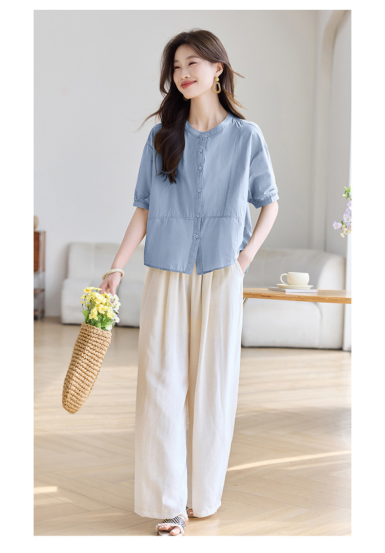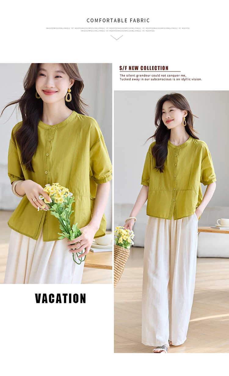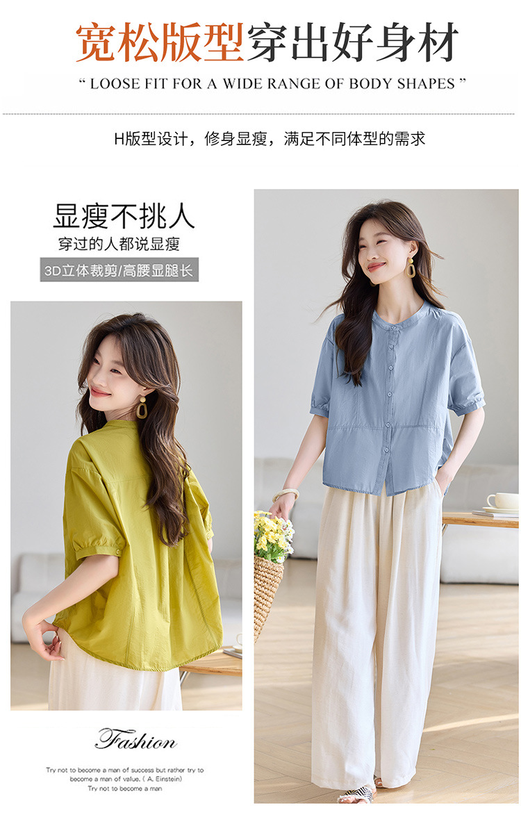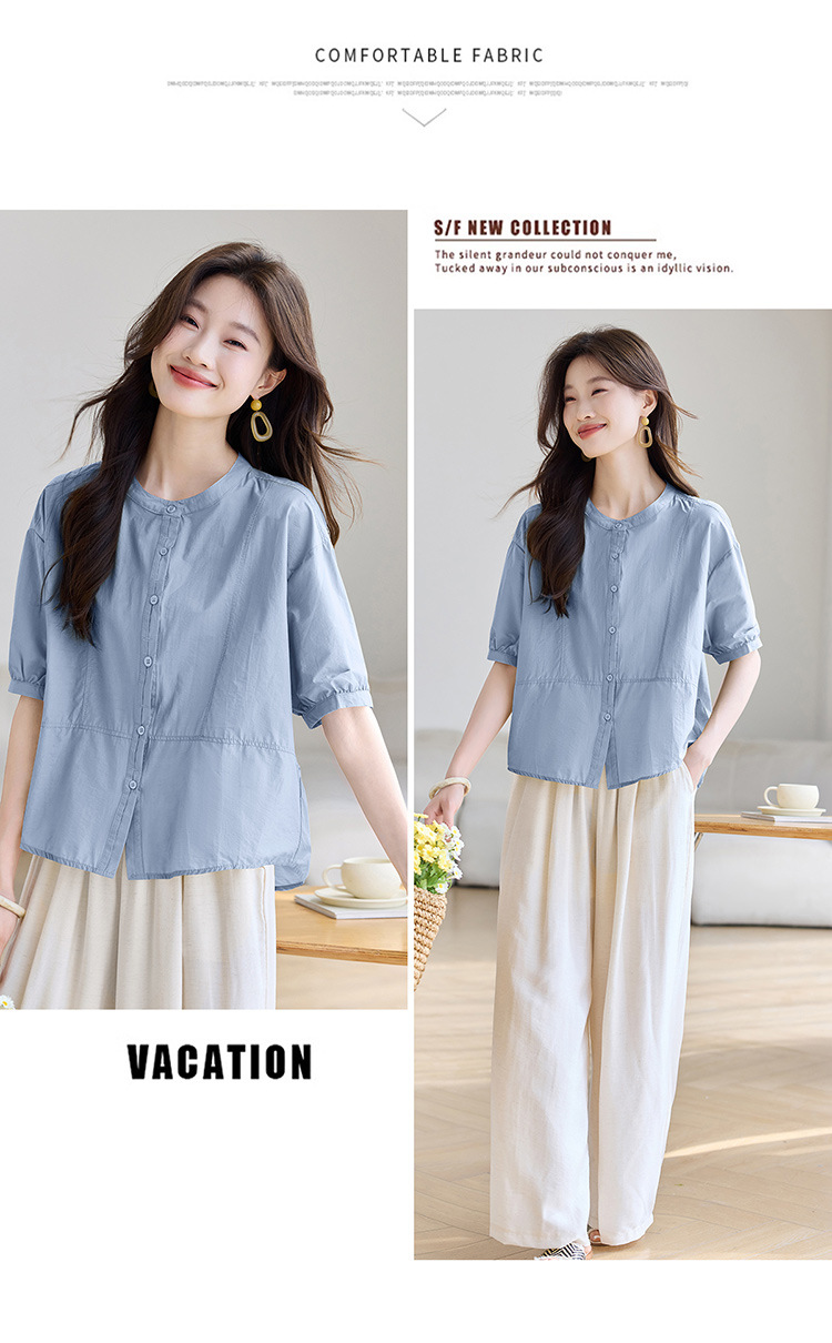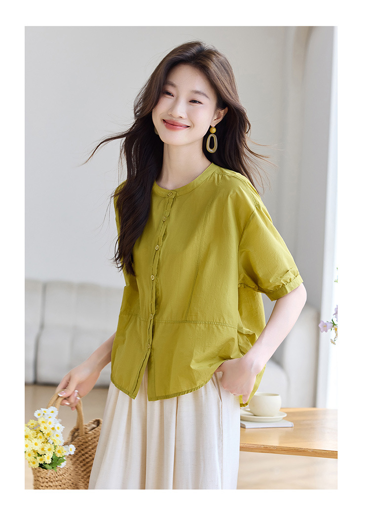 丁摩 休闲短袖衬衫女夏季新款时尚减龄宽松休闲圆领上衣5ZF-8018