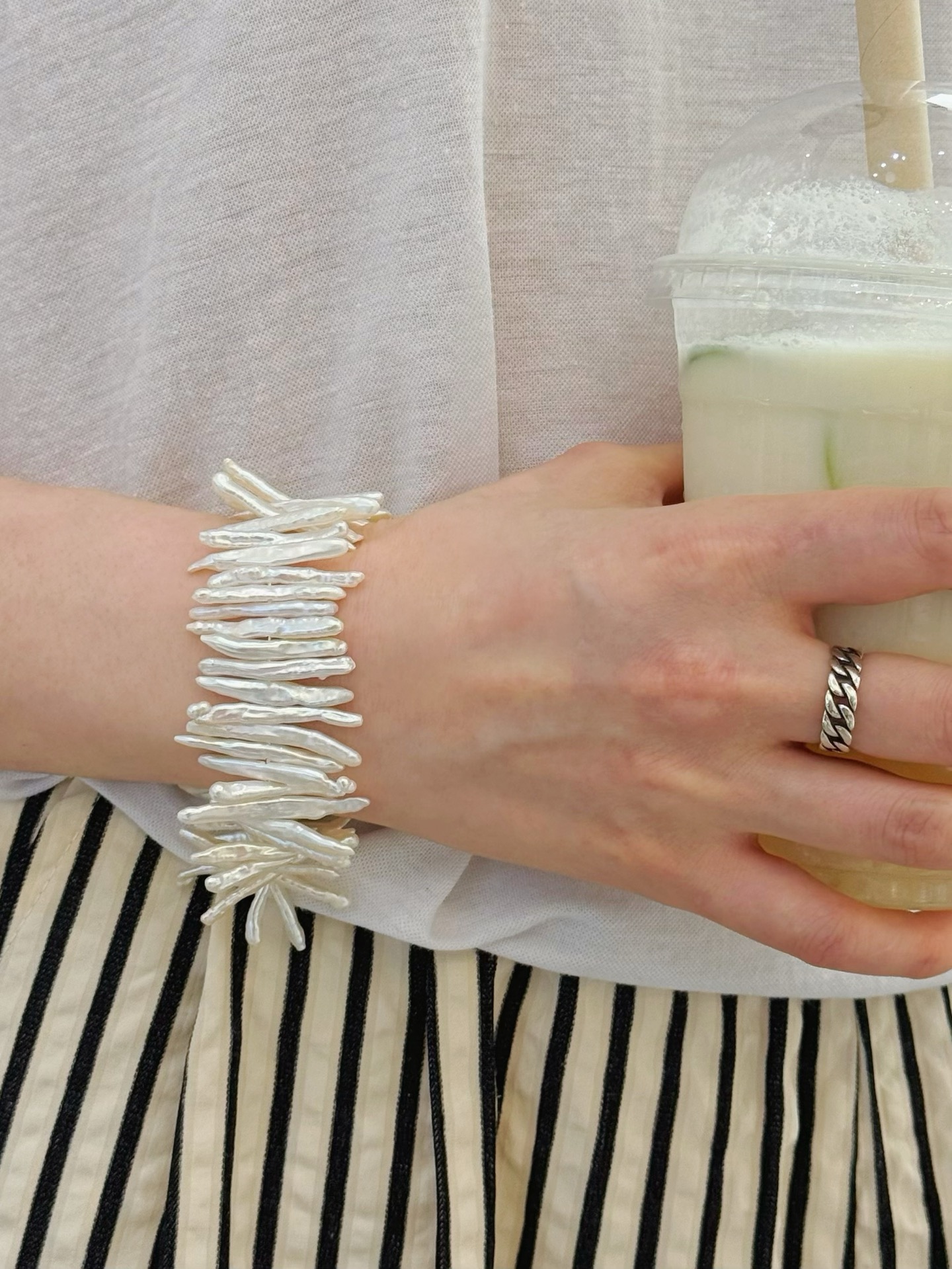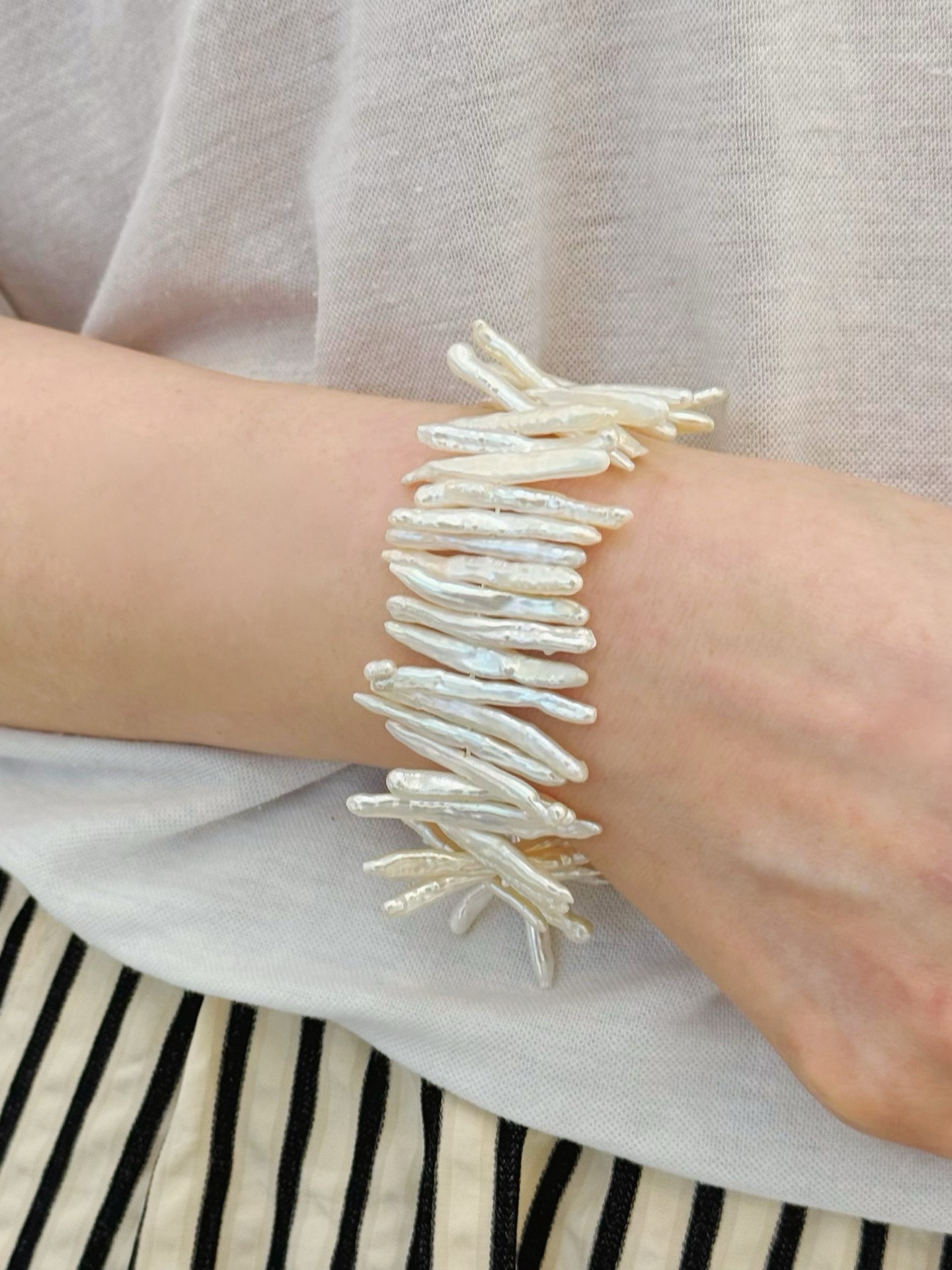 材质:天然淡水珍珠,极光大小:牙签珠高约15mm,宽约3mm,厚约2mm长度:16-19cm配件:S925银握手扣